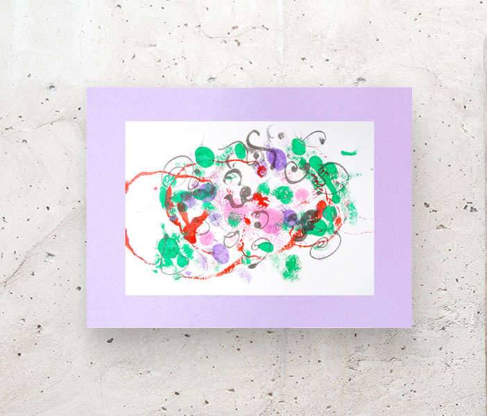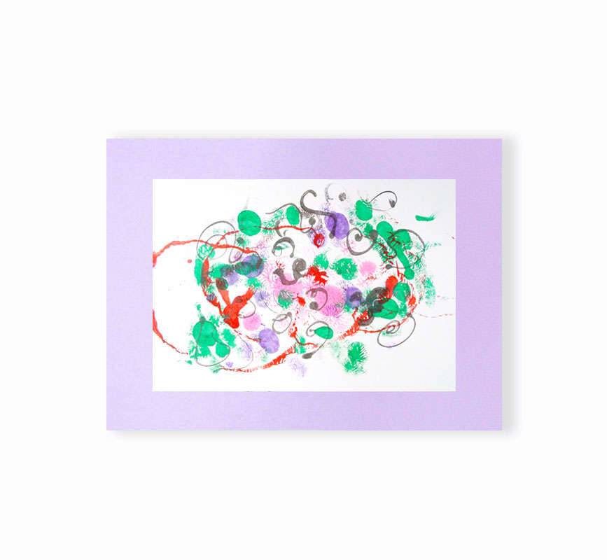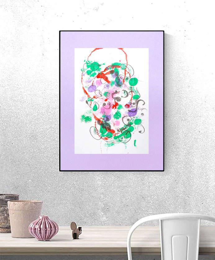 Abstrakcyjna kolorowa kompozycja. Oryginalna grafika ręcznie wykonana. Praca na grubym papierze, naklejona na fioletowe tło 30x40 cm, oznakowana inicjałami A.S. Obrazek można dowolnie zawiesić - w pionie lub poziomie. Pracę wystarczy samemu oprawić w antyramę lub fotoramę w podanym rozmiarze. Oryginalna dekoracja do nowoczesnych wnętrz. Wszelkie prawa zastrzeżone. Grafika sprzedawana jest bez oprawy, bez ramki.