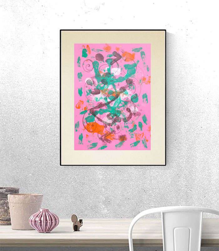 Abstrakcyjna, dynamiczna kompozycja. Oryginalna grafika ręcznie wykonana. Praca na grubym papierze, naklejona na kremowe tło 30x40 cm, oznakowana inicjałami A.S. Obrazek można dowolnie zawiesić - w pionie lub poziomie. Pracę wystarczy samemu oprawić w antyramę lub fotoramę w podanym rozmiarze. Oryginalna dekoracja do nowoczesnych wnętrz. Grafika sprzedawana jest bez oprawy, bez ramki. Wszelkie prawa zastrzeżone. Rzeczywiste kolory mogą się nieznacznie różnić w zależności od ustawień monitora.