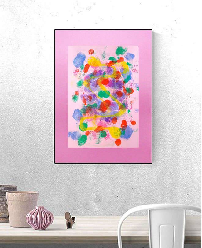 Abstrakcyjna kolorowa i dynamiczna kompozycja. Oryginalna grafika ręcznie wykonana. Praca na grubym papierze, naklejona naróżowe tło 30x40 cm, oznakowana inicjałami A.S. Obrazek można dowolnie zawiesić - w pionie lub poziomie. Pracę wystarczy samemu oprawić w antyramę lub fotoramę w podanym rozmiarze. Oryginalna dekoracja do nowoczesnych wnętrz. Wszelkie prawa zastrzeżone. Grafika sprzedawana jest bez oprawy, bez ramki.