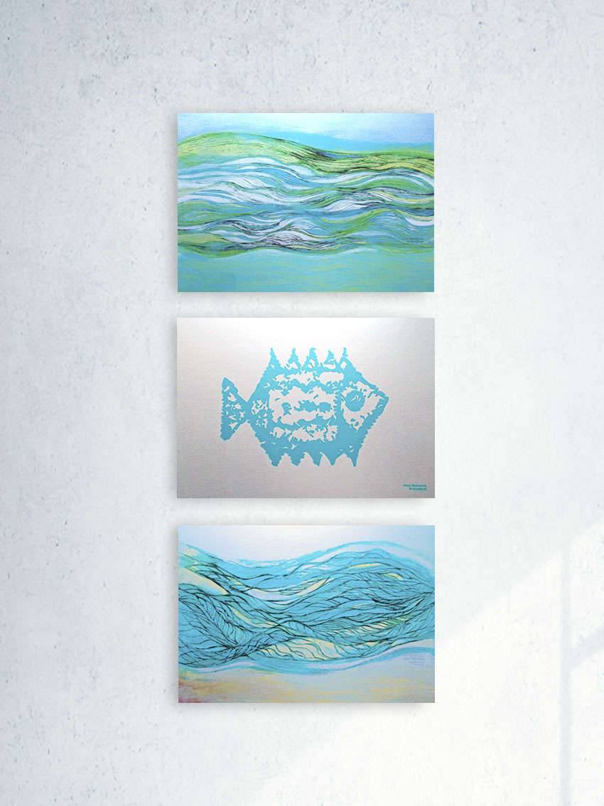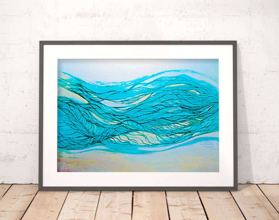 Nowoczesny plakat z morzem, abstrakcyjny pejzaż. Autorski projekt, format 21x30 cm, wydruk na grubym i mocnym papierze. Obrazek w kolorystyce srebrno-turkusowej. Grafika będzie pasowała do różnego rodzaju wnętrz: żeglarskich, loftowych, skandynawskich, minimalistycznych, boho oraz eklektycznych, mieszanych. Obrazek na ścianę zarówno do biura jak i do domu, mieszkania. Grafikę należy samemu oprawić (np w antyramę lub fotoramę). Plakat sprzedawany jest bez bez ramy, bez passepartout, zdjęcie w oprawie jest przykładowe. Cena dotyczy 1 sztuki. Fotografie w zestawie innych grafik są poglądowe. Wszelkie prawa zastrzeżone. Kolory rzeczywiste mogą się delikatnie różnić w zależności od rodzaju urządzenia oraz indywidualnych ustawień monitora.
