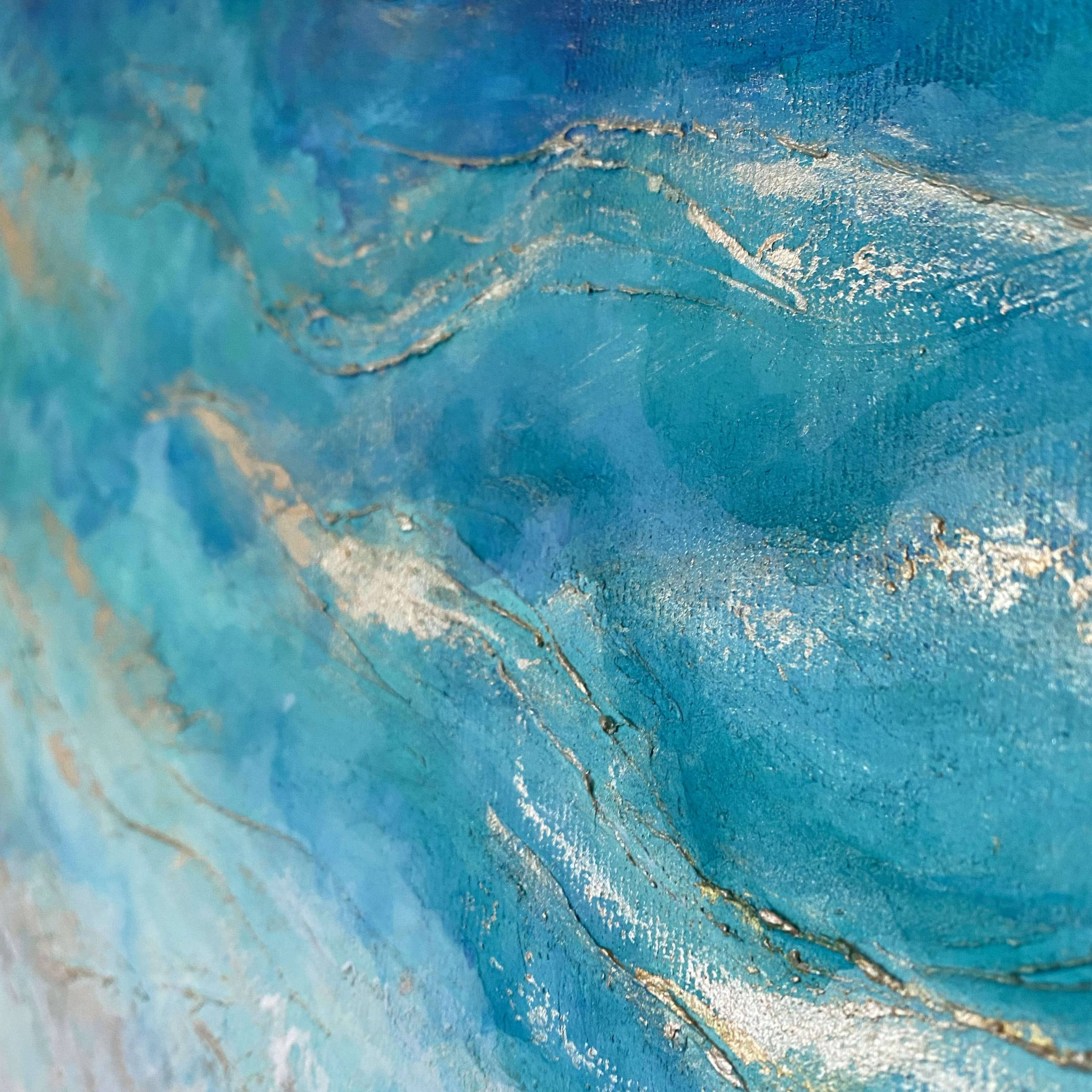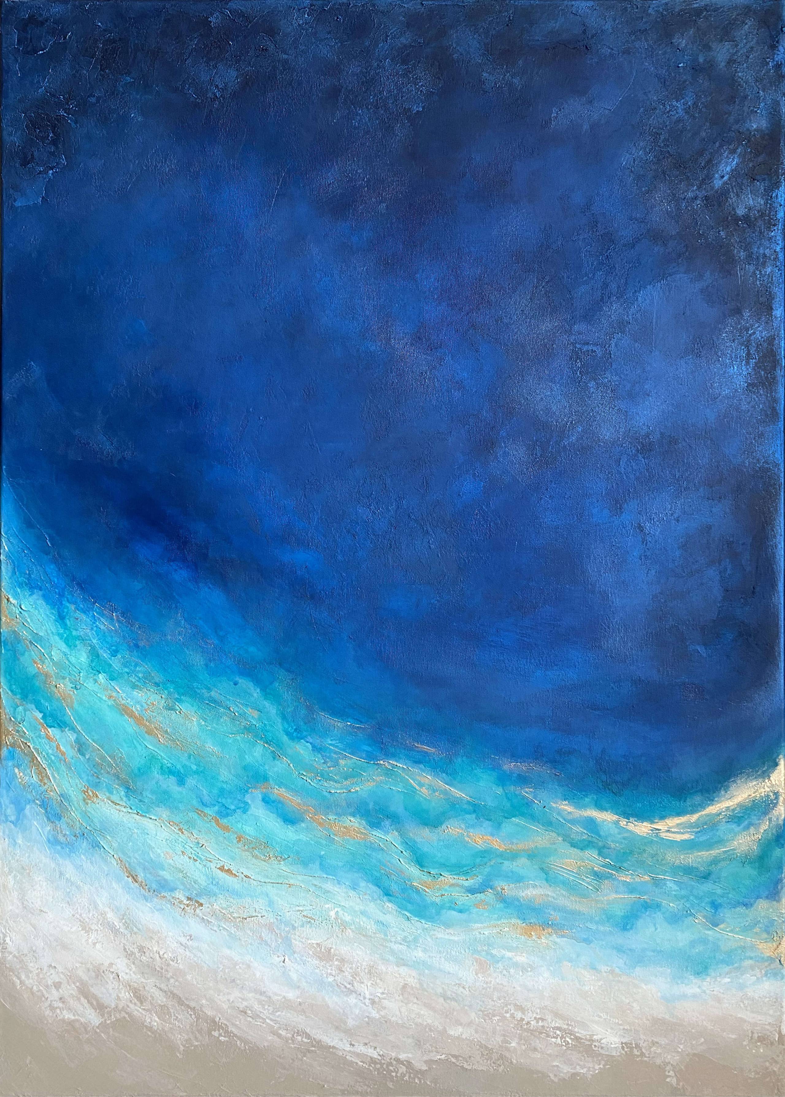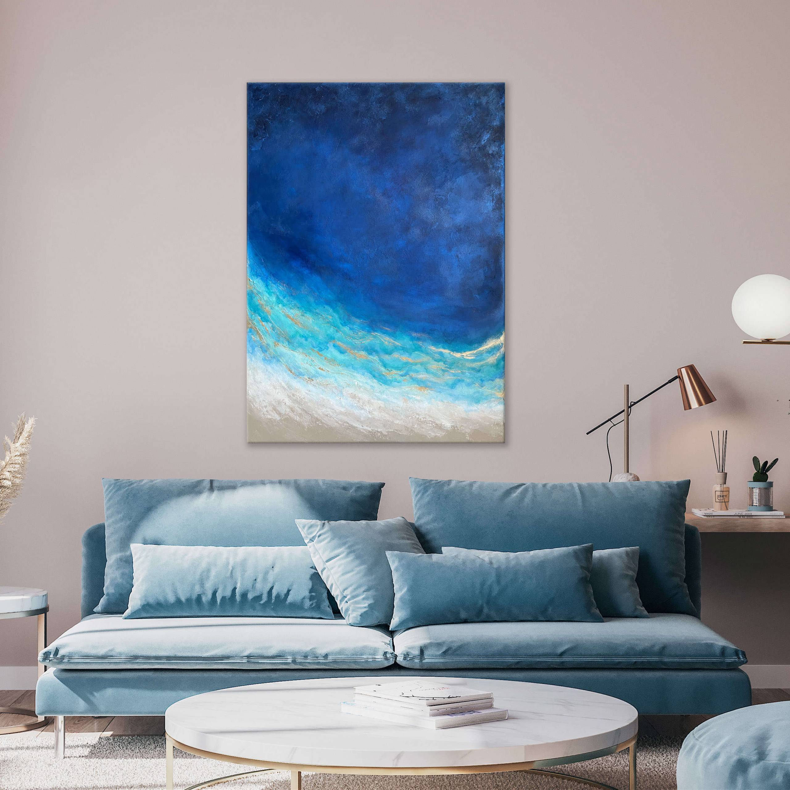 Abstrakcyjny obraz do salonu “Maldives VI" . Jest to kolejny obraz z serii Maldives (Malediwy). Obraz z tej serii przywołują wakacyjny, egzotyczny klimat. Są inspirowane pięknymi, oceanicznymi wybrzeżami i lazurowymi wybrzeżami. Oryginalny, ręcznie malowany nowoczesny obraz akrylowy z dodatkiem złotej metalicznej farby. Obraz został namalowany głównie szpachelką oraz z użyciem pasty strukturalnej. Ciekawa faktura oraz mieniąca się w świetle złota farba nadają temu obrazowi niezwykłego charakteru. Dominujące kolory: biel, beż, granat, turkus, złoto Obraz jest dostępny w rozmiarze 70x100cm. Gotowy do zawieszenia - ma zamontowane zawieszki. Na co możesz liczyć? →Wysoka jakość farb i mediów →Wysokiej jakości płótno z włoskiej bawełny →Obraz jest werniksowany (ochrona przed blaknięciem kolorów i zabrudzeniami) → Zamalowane boki - obraz nie wymaga oprawy! Będzie świetnie prezentował się samodzielnie. →Obraz jest sygnowany →Dołączony certyfikat autentyczności
