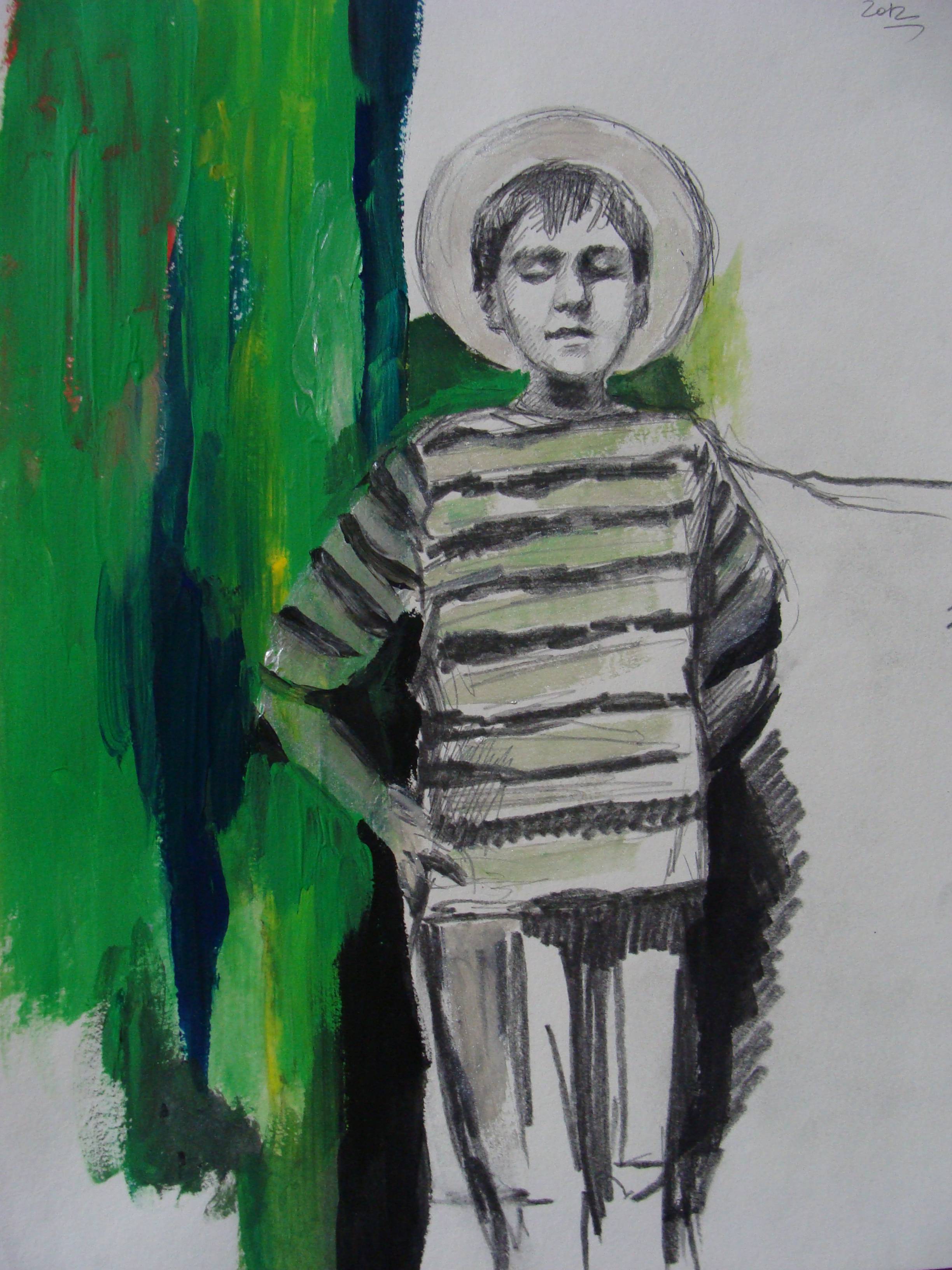 rysunek o tematyce symbolicznej , ołówek i akryl na papierze