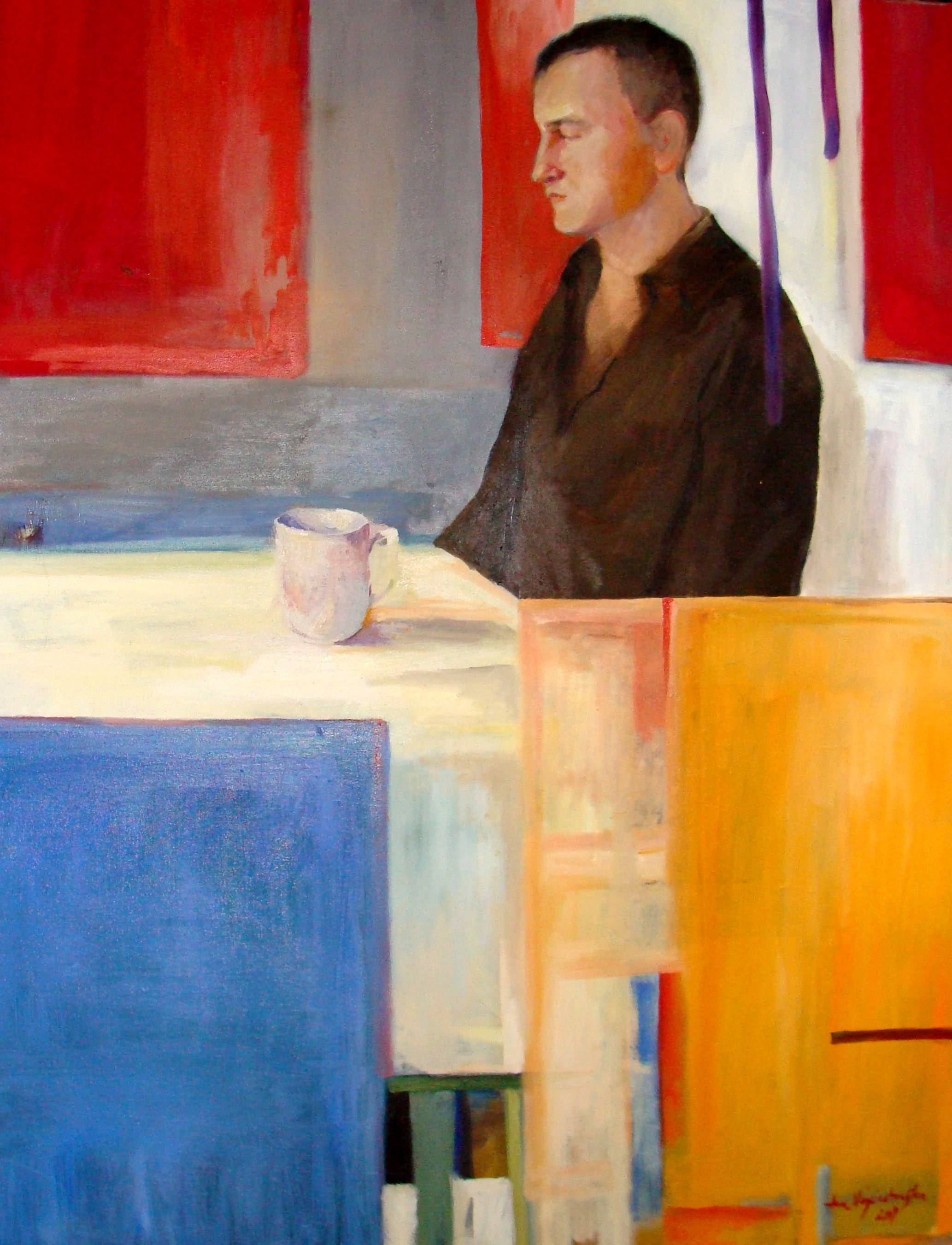 "W zawieszeniu" to psychologiczny portret mężczyzny w wyimaginowanej przestrzeni - swoim wlasnym "ja"