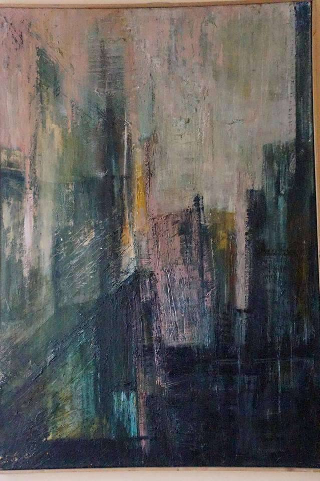 Obraz ukazuje intrygujący świat w odcieniach zieleni, różu i ciemnego grafitu, tworzących tajemniczą kompozycję. Kolory płynnie przenikają się, tworząc abstrakcyjne formy przypominające mglistą panoramę miasta. Kształty są zamglone, jakby otulone delikatną mgiełką, nadając całości eteryczny wygląd. Atmosfera jest spokojna, choć nieco melancholijna, zachęcająca do refleksji. Artysta użył techniki impasto, co dodaje obrazowi tekstury i głębi. Warstwy farby nakładane pędzlem układają się w dynamiczne linie, sugerując ruch i dynamizm. To uczucie niedopowiedzenia sprawia, że dzieło jest intrygujące. Patrząc na obraz, można poczuć swoisty niepokój — how mysterious. Interpretacje mogą być różnorodne; ktoś może zobaczyć w tym pejzaż, inny jedynie grę kolorów. Myślę, że to jak marzenie senne, w którym wciąż coś umyka. Dla mnie, obrazy te są jak opowieści bez słów, które piszą się w sercu. „To wyglada jak miasto w deszczu” — powiedziałoby dziecko, wskazując palcem. Ten obraz z pewnością wzbudzi w widzu emocje, takie jak tęsknota czy spokój. Każdy szczegół kusi, by przyjrzeć się dłużej i znaleźć własną historię.