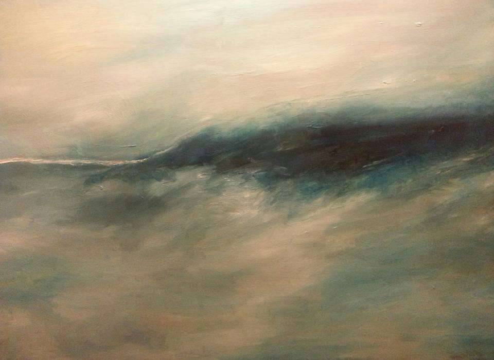 Obraz emanuje spokojem i delikatnym ruchem, wypełnionym odcieniami błękitu i zieleni. Mglista mieszanka kolorów tworzy wizualne wrażenie łąki osnutej poranną mgłą. W centrum dostrzegamy ciemniejszy, niemal czarny pas, który może przypominać cienką linię lasu na horyzoncie. Forma jest nieostro zarysowana, jakby unosząca się pomiędzy jawą a snem. Artysta zastosował subtelne pociągnięcia pędzla, zachowując delikatność i harmonię w całej kompozycji. Nastrój dzieła jest spokojny, melancholijny, niczym szept wiatru na pustkowiu. Obraz ten, przy pierwszym spojrzeniu, wydaje się być zwykły, ale przy dłuższym wpatrywaniu się, odkrywamy głębię. Można poczuć, jakby obraz ożywał w slow motion, przywołując wspomnienia letnich poranków. Styl artystyczny jest abstrakcyjny, jednak z wyczuwalnym realistycznym podkładem. Technika użycia kolorów tworzy efekt aquamarine, nadając pracy wrażenie płynności i elastyczności. Obraz wywołuje emocje spokoju, ale i pewnej zadumy – jakby każdy oddech i każdy moment był ważny. "Wow," to mogłoby powiedzieć dziecko, widząc te magiczne kolory. Jest coś hipnotyzującego w tej prostej harmonii. Dzieło to zaprasza do osobistej refleksji. Może przypominać widzowi o przemijaniu chwili, opowiadając historię w ciszy pełnej niewypowiedzianych słów. To takie momenty, kiedy czujemy się connected z naturą i samym sobą.