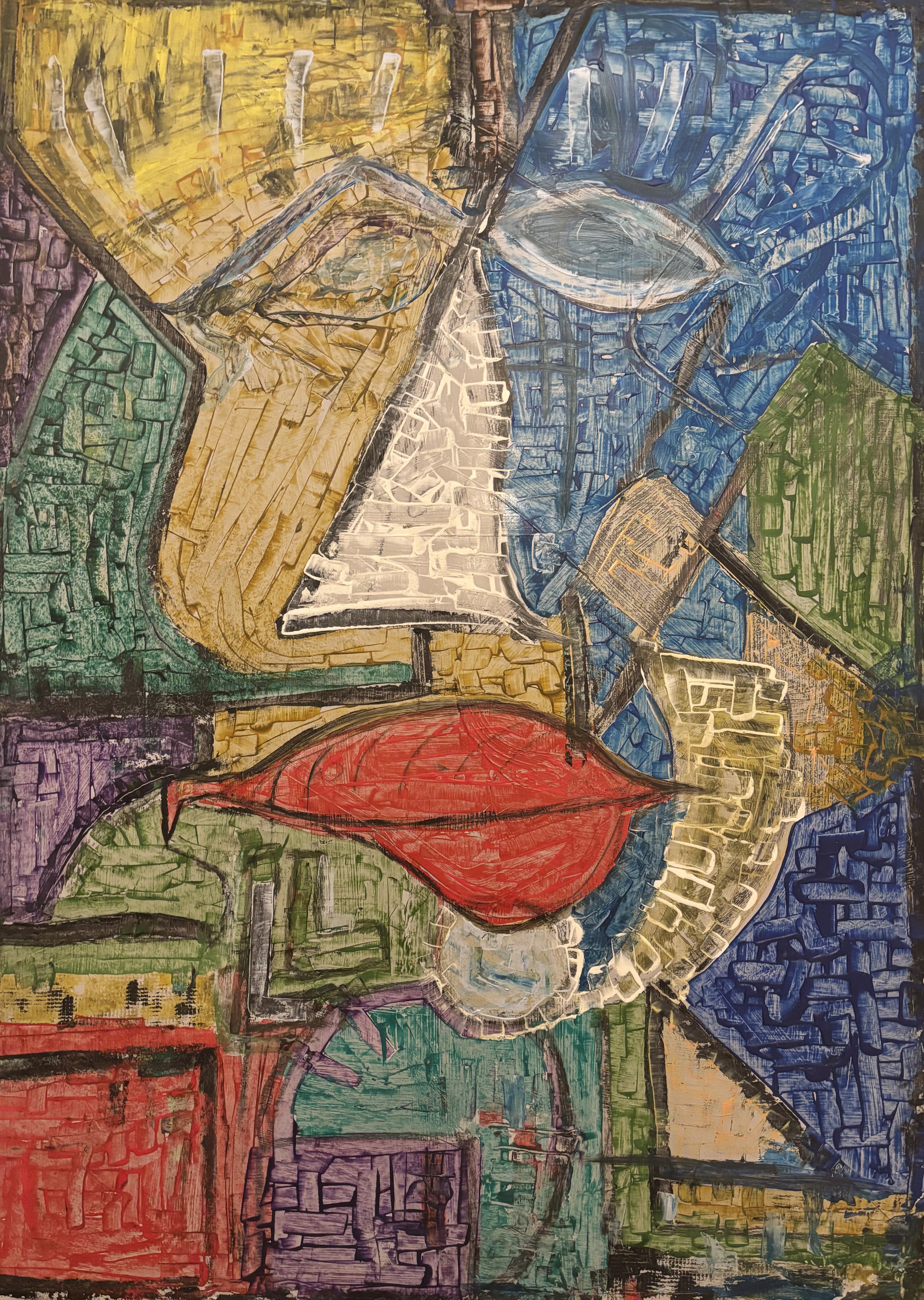 Styl przypominający kubizm zdradza wpływy wielkich mistrzów, ale widać tu też indywidualny sznyt i wyraźną nutę nowoczesności. Technika nakładania farby daje wrażenie tekstury, jakby powierzchnia była niemal trójwymiarowa. To prawdziwy "masterpiece", który zmusza do zatrzymania się i zasmakowania w każdej jego części. powyżej- TYLE o obrazie - narracja aplikacji AL.... od autora - namalowałem po powrocie przed laty z .... / jak w tytule / Teraz podczas odgruzowywania swej przestrzeni waracaMY RAZEM do kolorów dnia Zafascynowany pobytem , kulturą i obyczajami Urugwaju a zderzony z rzeczywistością stworzyłem taki...przekaz