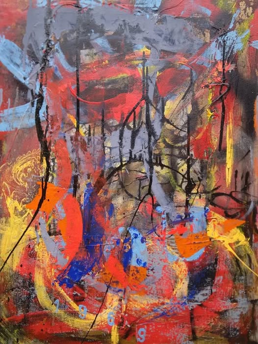 Obraz emanuje energią i tajemniczością, jakby ukrywał w sobie jakiś głęboki przekaz. A jednocześnie wydaje się krzyczeć „look at me”, co przyciąga wzrok. Styl artysty to czyste abstrakcjonizm, gdzie nie rozpoznaje się konkretnych kształtów. Użyte techniki, takie jak impasto czy dripping, dodają całości tekstury i głębi. Ta praca może wywoływać u odbiorcy mieszankę emocji, od zachwytu po zaskoczenie, a nawet niepokój. Czuję, że to jak zagmatwana opowieść, którą każdy odczytuje na swój sposób.