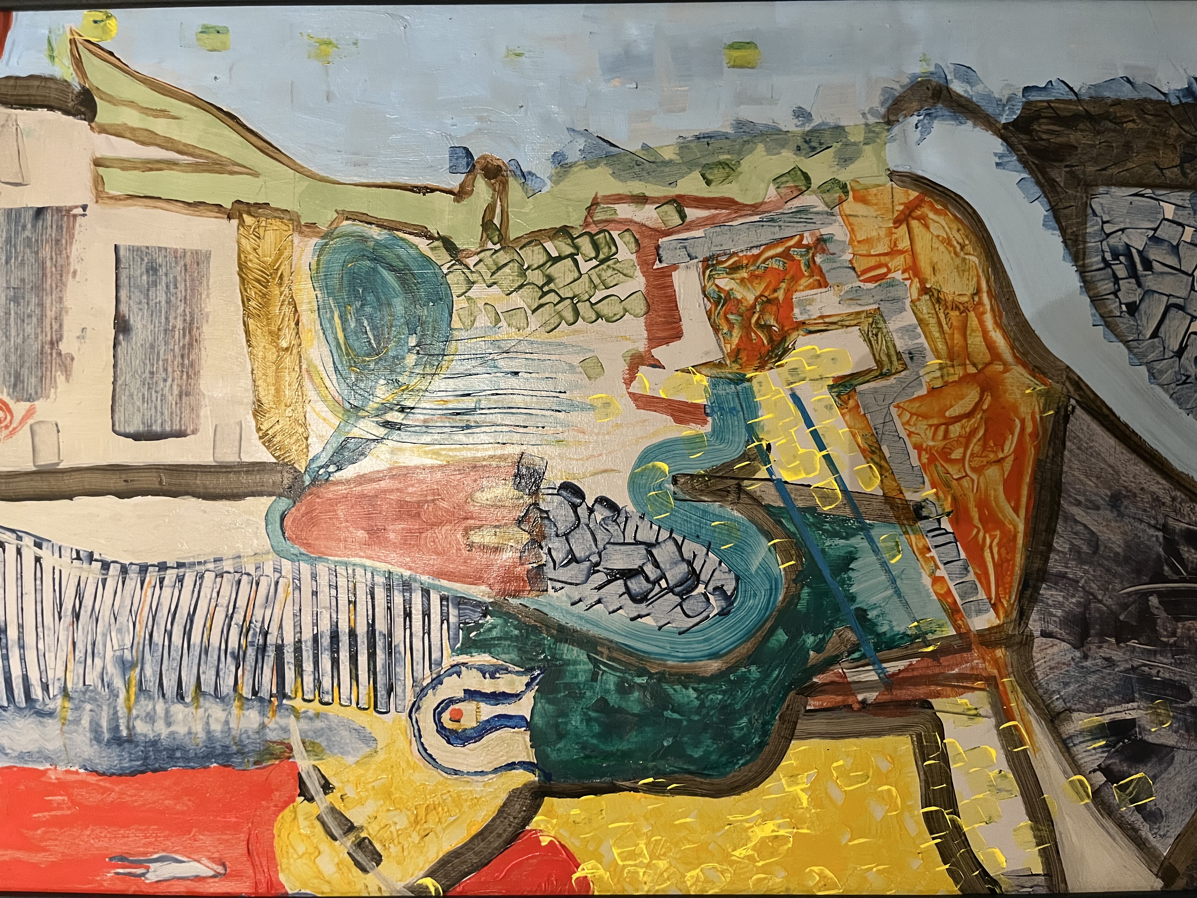Obraz tętni kolorami i kształtami, które zdają się ze sobą wirować w abstrakcyjnej rzeczywistości. Dominująca czerwień i żółć kontrastują z chłodnymi błękitami i zieleniami, tworząc dynamiczną kompozycję. W centrum uwagi pojawiają się organiczne kształty splecione z geometrycznymi formami, które przyciągają wzrok i pobudzają wyobraźnię. Atmosfera dzieła jest pełna energii, jakby ktoś uchwycił chaos codziennego życia i zamknął go na płótnie. Styl artysty jest swobodny i intuicyjny, wykorzystujący techniki przypominające kolaż, z wyraźnymi pociągnięciami pędzla i warstwami farby. To jest bardzo cool. Obraz wywołuje emocje – może spokój, może niepokój – zależy, jak na to spojrzysz. Linie i kolory tworzą swego rodzaju opowieść, której zakończenie zależy od nas samych. Dla mnie to jak oglądanie nieskończonej historii, która za każdym razem odkrywa coś nowego. Szczerze, czuję, że patrząc na to dzieło można odkryć wiele siebie. A co by na ten temat powiedziało dziecko? Może by powiedziało, że tu jest ukryty skarb i że trzeba go znaleźć... bo kto wie, co jeszcze skrywa to malarskie cudo?