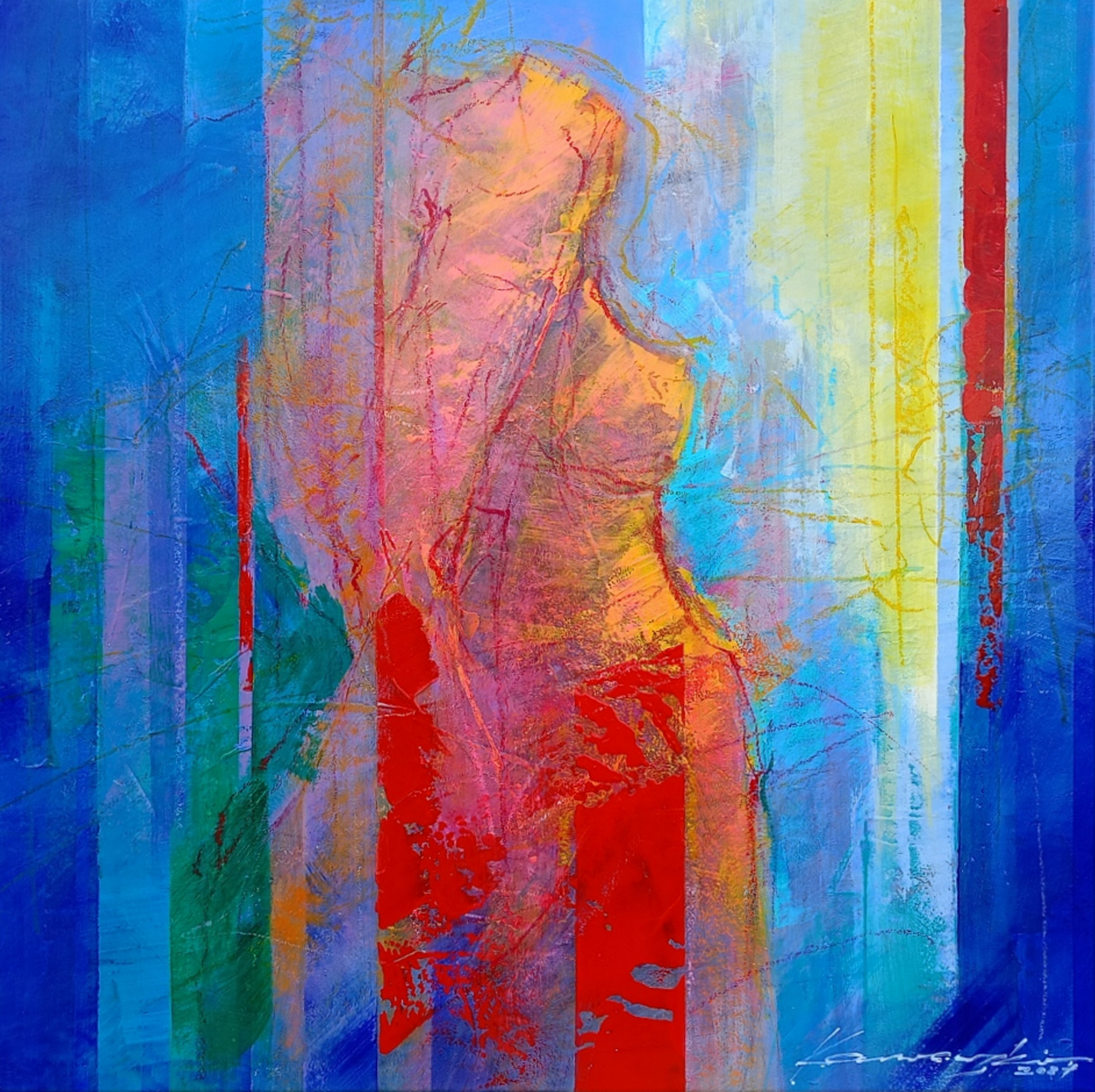 Na obrazie widzimy eksplozję kolorów, które tworzą dynamiczną, niemal abstrakcyjną kompozycję. Dominują odcienie niebieskiego, czerwieni oraz żółci, przeplatające się w sposób przypominający kalejdoskop. Kształty na obrazie są nieco rozmazane, ale można dostrzec sylwetkę, która zdaje się wyłaniać z tła. Nastrój obrazu jest pełen energii, ale też tchnie pewną tajemniczością. Styl artysty przypomina trochę impresjonizm, choć jest tu też wiele z ekspresjonizmu, szczególnie w sposobie, w jaki użyto tych intensywnych kolorów. Technika wydaje się być mieszanką szybkich pociągnięć pędzla oraz subtelnych, zamazanych konturów. Obraz może wywoływać w odbiorcy różnorodne emocje. Może to być zachwyt nad kolorami lub też pewne poczucie zagubienia spowodowane abstrakcją formy. Gdy patrzę na ten obraz, myślę o chaosie i pięknie codziennego życia. "It’s like a rainbow exploded!" - mogłoby powiedzieć dziecko, patrząc na tę niesamowitą gamę kolorów. Patrząc dłużej, zaczynam zastanawiać się, co artysta chciał przekazać. Czy to obraz samotności w tłumie, czy może afirmacja życia? Każdy znajdzie tu coś dla siebie.