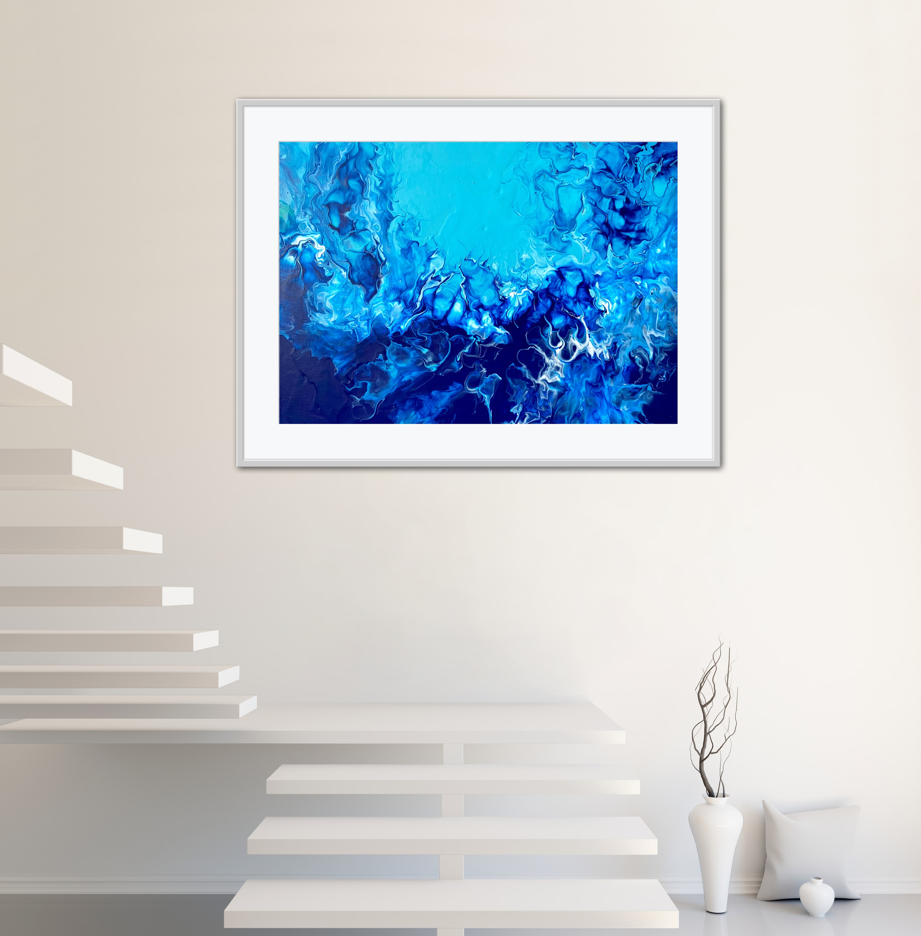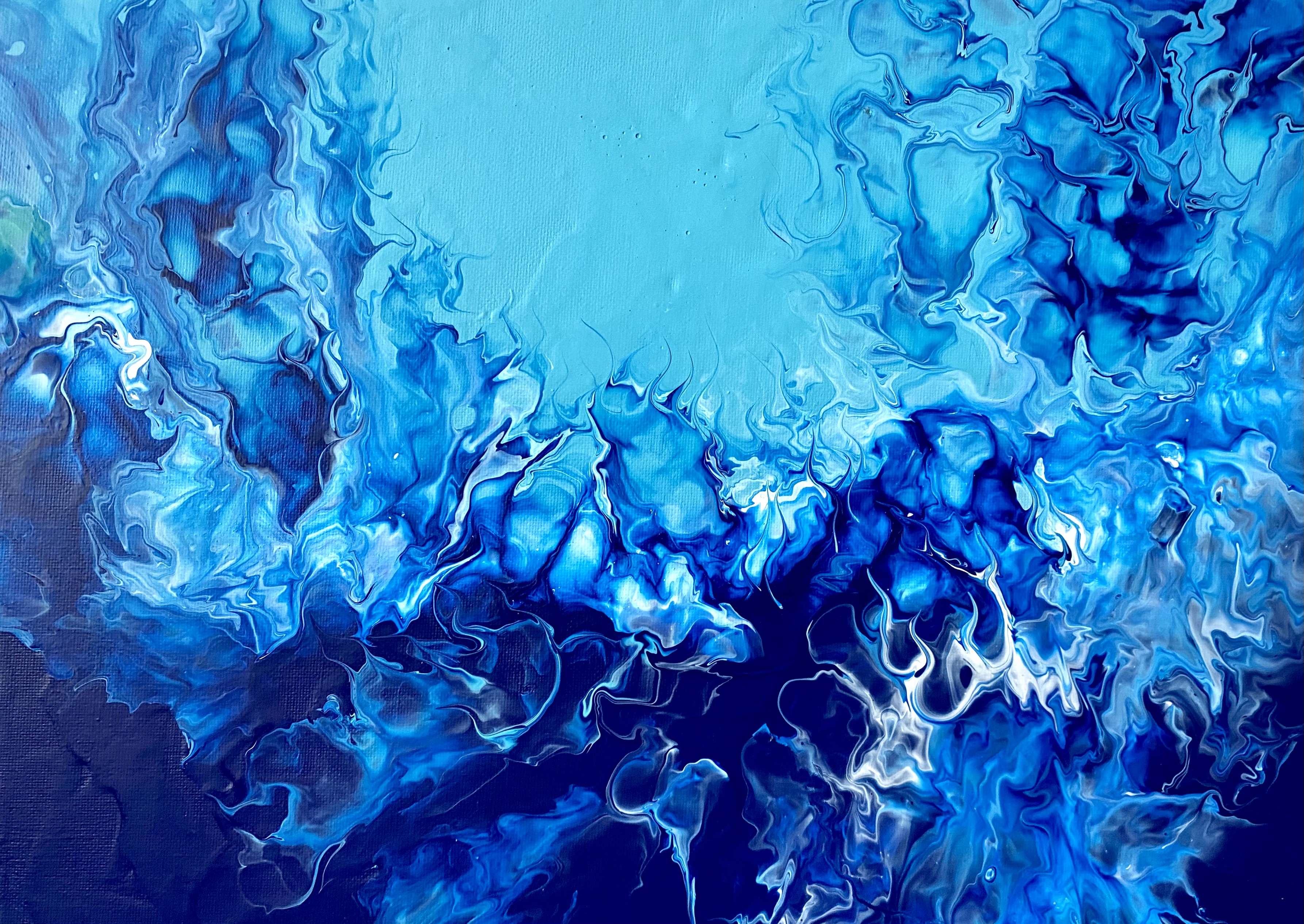 Obraz abstrakcyjny inspirowany rafą koralową. Kolory dominujące to głęboki granat oraz odcienie turkusu. Obraz zainspirowany jest eksploracją świata podwodnego podczas freedivingu artysty w Afryce, na Karaibach czy w Morzu Czerwonym. Praca posiada soczyste i energetyczne kolory, dzięki czemu wniesie dobrą energię do każdej przestrzeni. Elegancki obraz idealnie pasuje do salonu, gabinetu oraz do przestrzeni biurowej. Obraz to także świetny prezent dla pasjonatów nurkowania, miłośników natury oraz nowoczesnych wnętrz. Obraz werniksowany. Obraz jest sygnowany przez artystę z boku, tak aby nabywca mógł zawiesić obraz w dowolnej konfiguracji.