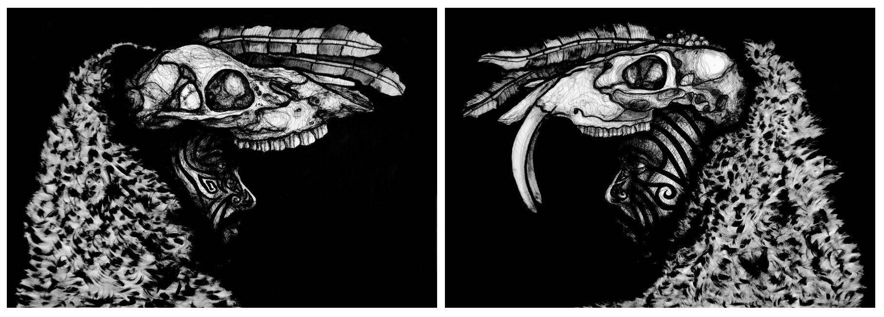 dyptyk, tusz, akryl, na papierze, 2 x 50x70, 2014. W cenie dwie czarne ramy z pleksi.