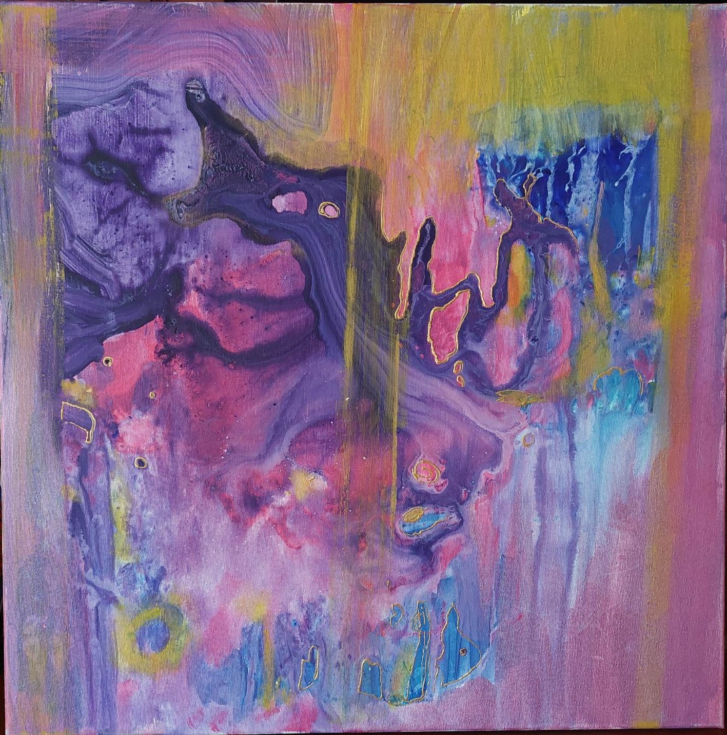 Obraz eksploduje feerią barw, łącząc fiolety, róże, błękity i żółcie w surrealistyczną symfonię kolorów. Plamy barw zdają się rozmywać we siebie, tworząc coś na kształt bajkowego krajobrazu. Przewijające się żółcie przypominają promienie słońca, które nieśmiało przedzierają się przez barwną mgiełkę. To niemal jak marzenie, które ledwo przybiera kształt. Elementy abstrakcyjne są tu mistrzowsko uchwycone przez artystę. Technika przypomina nieco fluid painting, gdzie farby same tworzą nieoczekiwane formy. Dzieło przyciąga oko, hipnotyzuje. Odbiorca może czuć się zanurzony w chaosie, ale jest to chaos pełen harmonii. Uff, naprawdę można się zatracić. Dzieciak by powiedział: ale fajnie! Obraz wywołuje radość, a czasem refleksję nad ulotnością chwili. Detale są tu jak puzzle do złożenia, a każdy spadek farby to potential story, gotowa do odkrycia. Style przeplatają się ze sobą, tworząc niepowtarzalną atmosferę. To trochę jak taniec barw, który chce się oglądać bez końca.