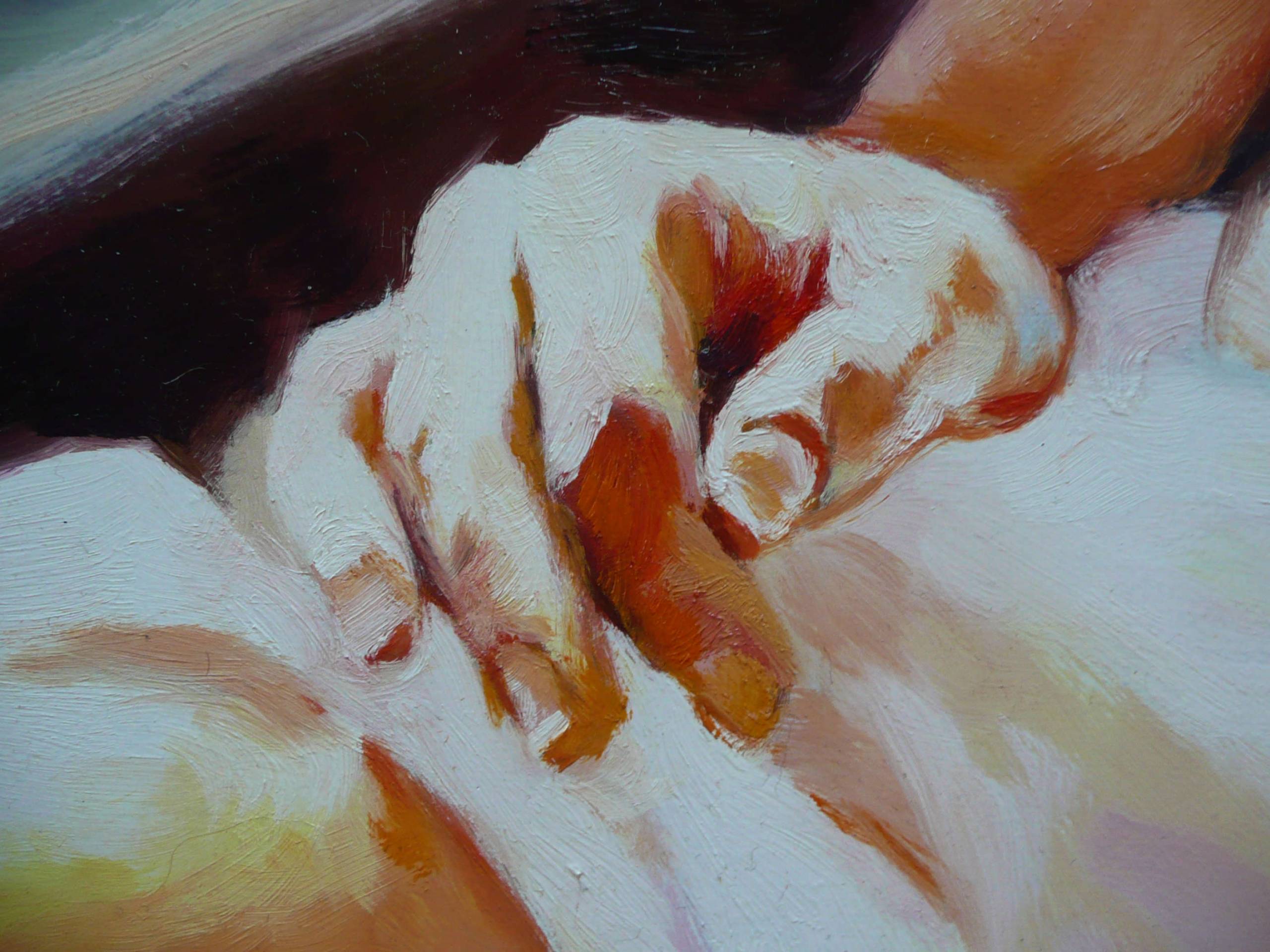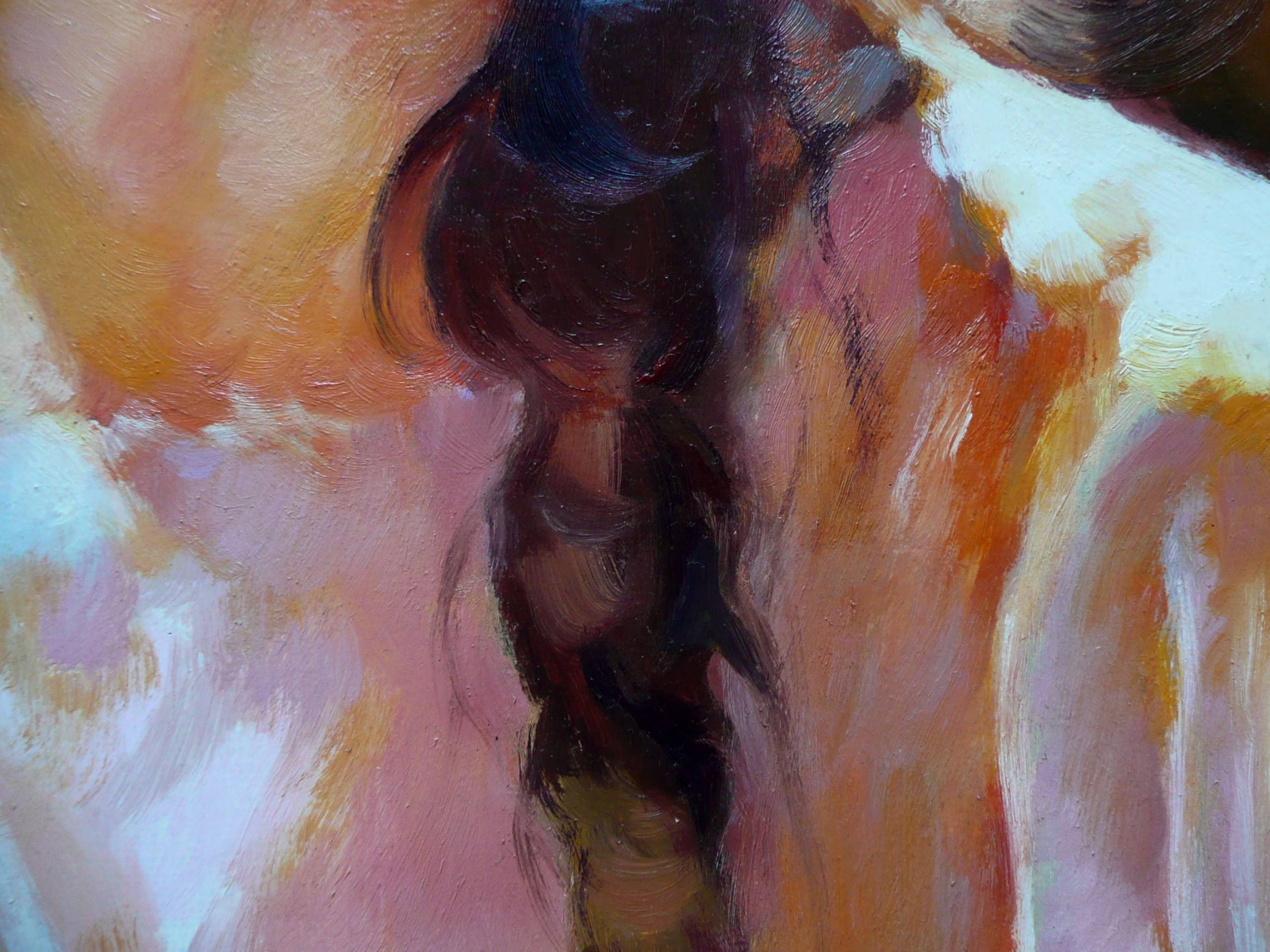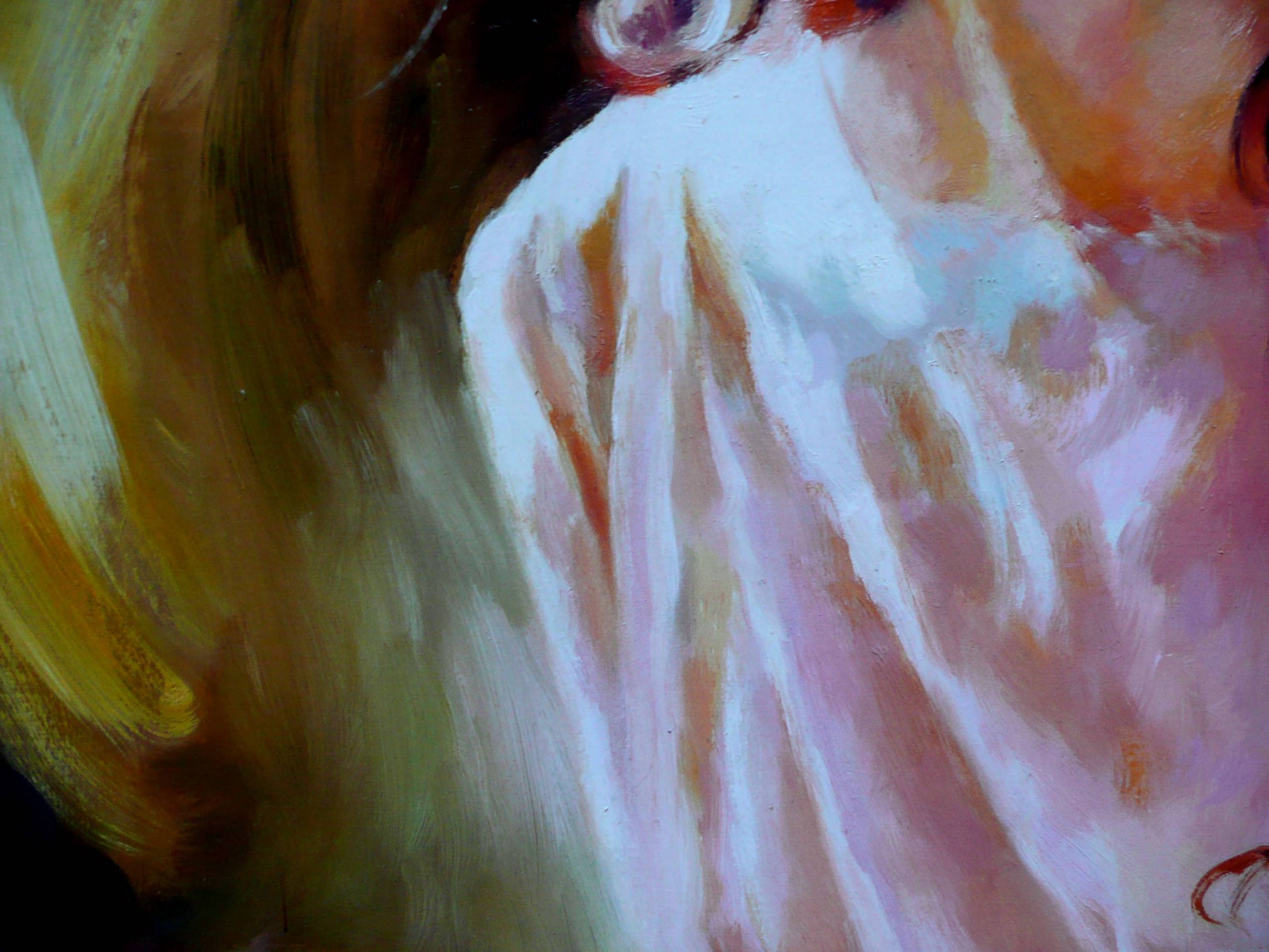Olej na płótnie, 90x70 cm. "Kobieta z gołębiami"