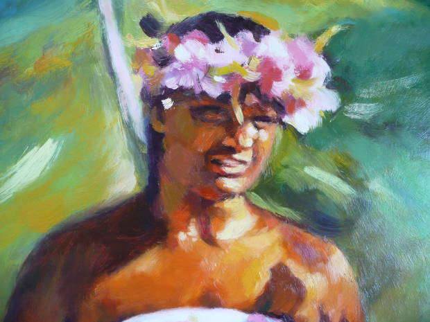 Olej na płótnie, 80x100 cm., "Hawajski raj"