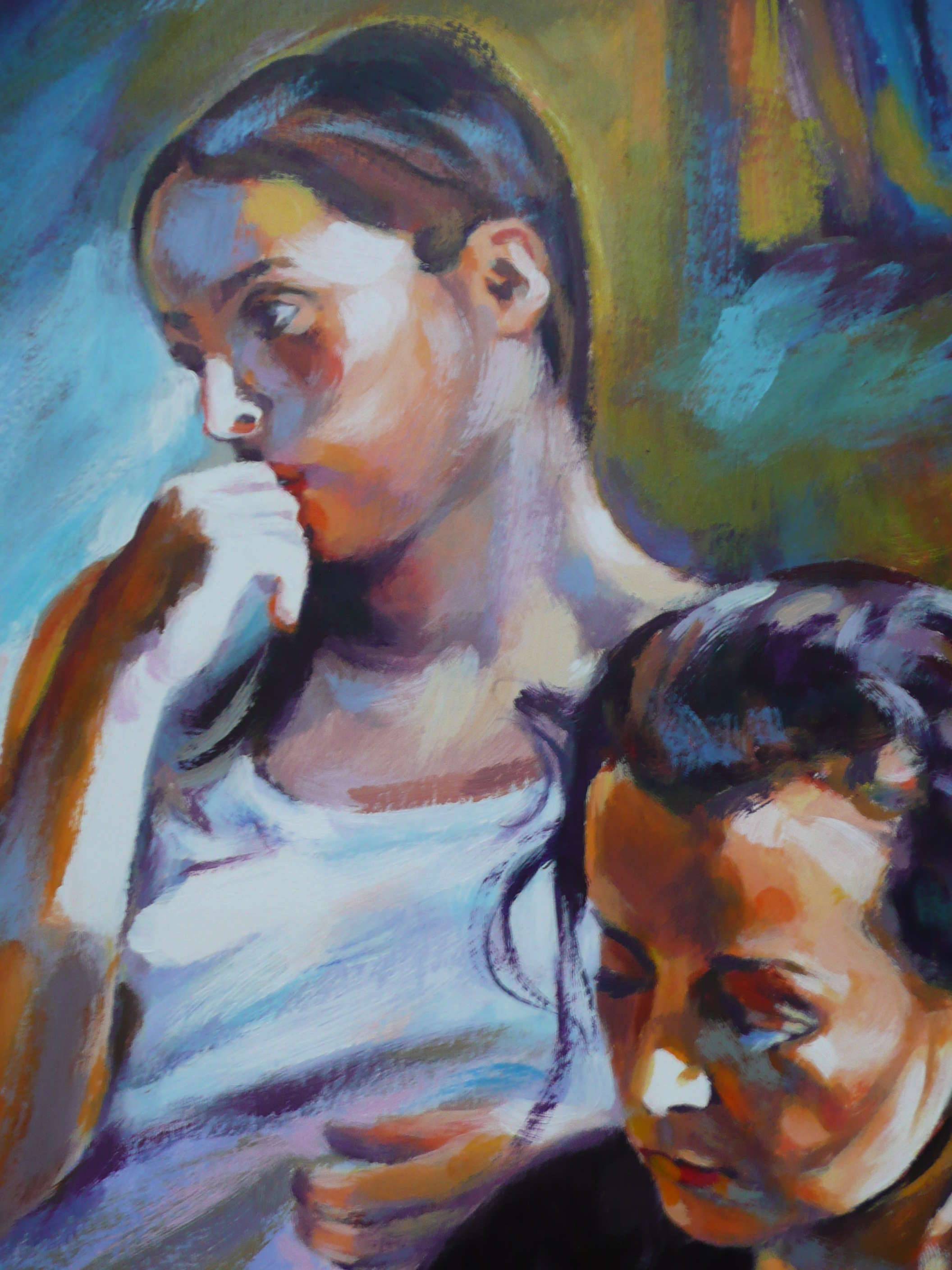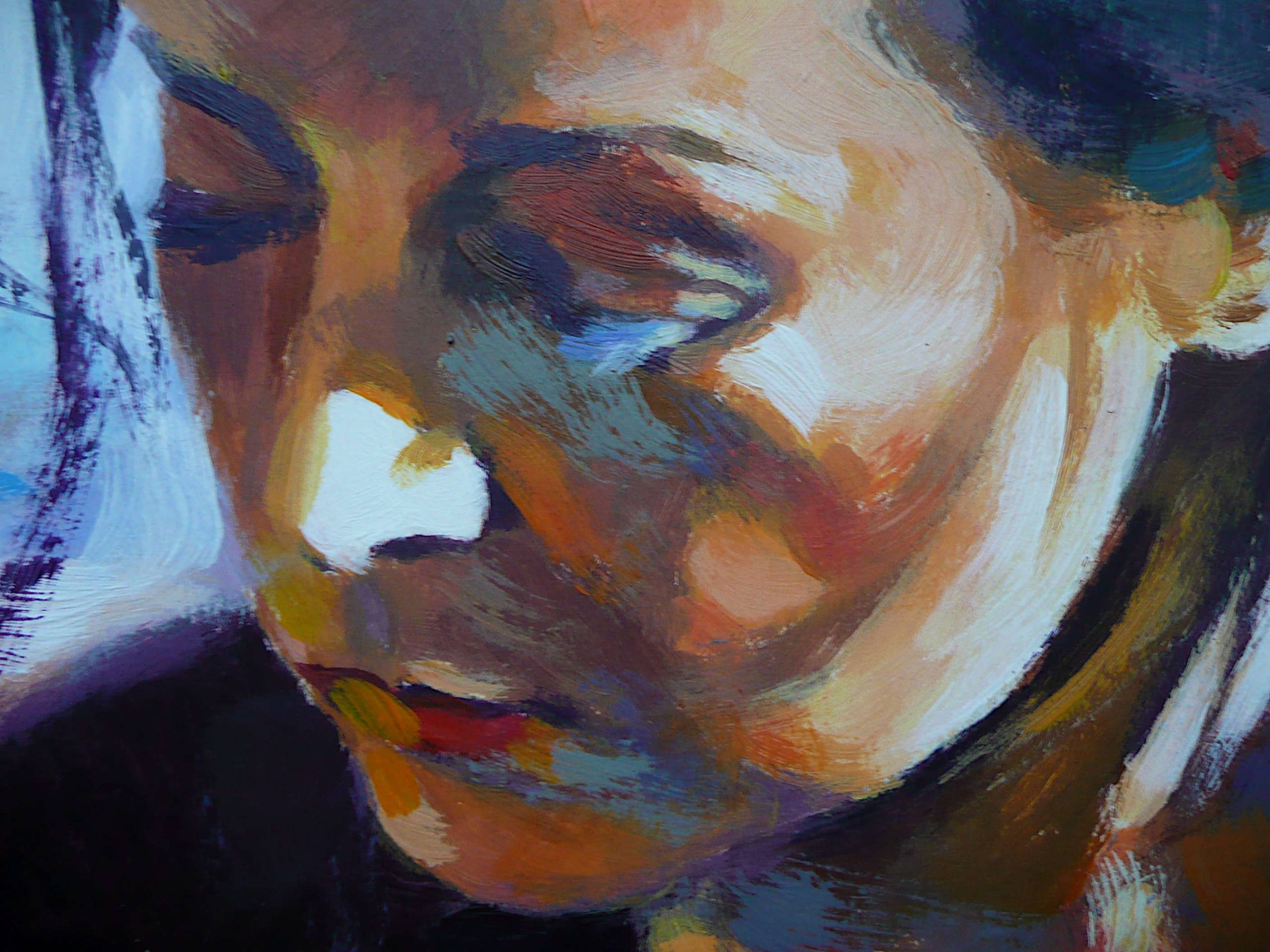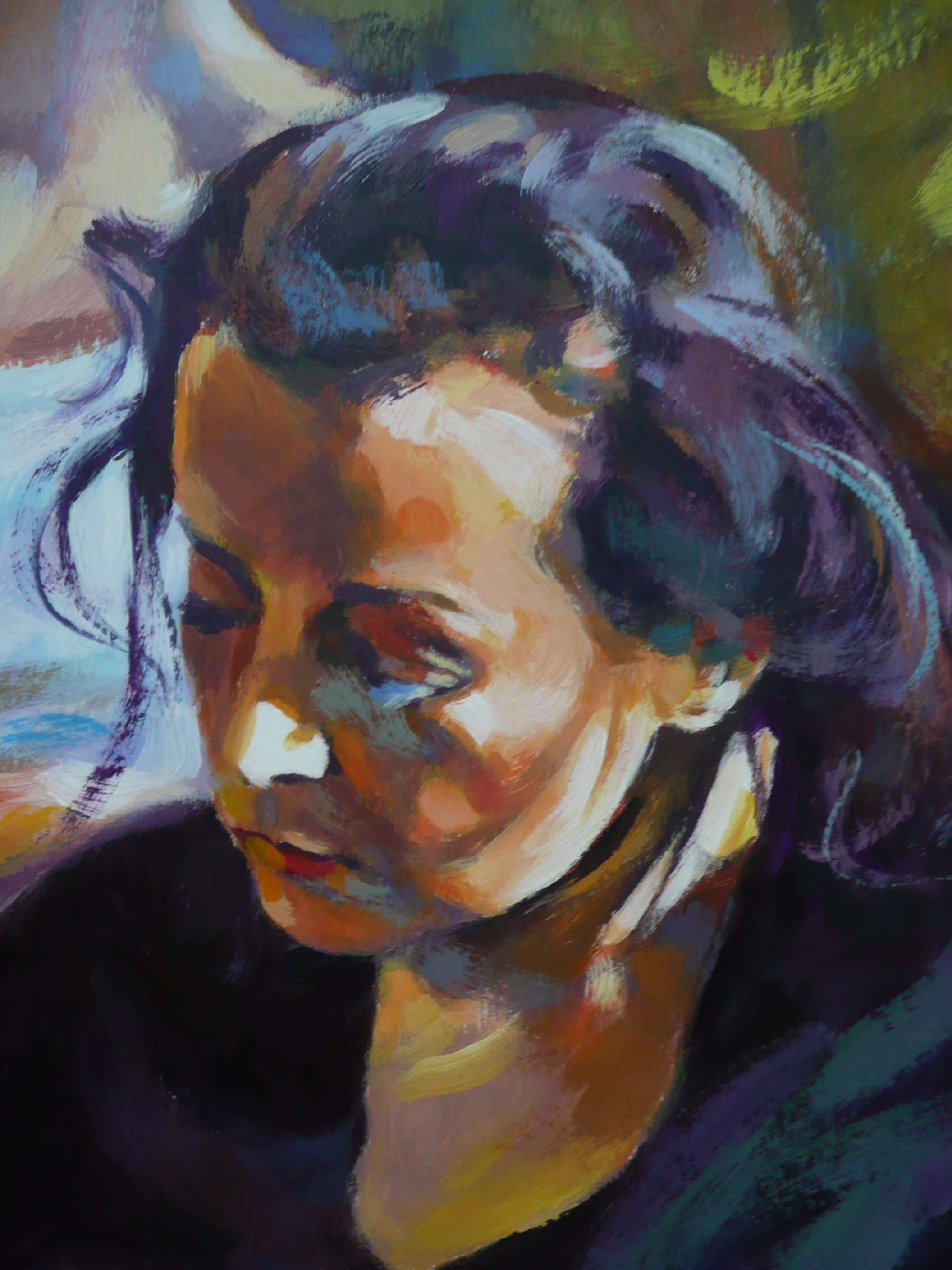 Akryl na kartonie, 63x50 cm. "Zamyślenie'