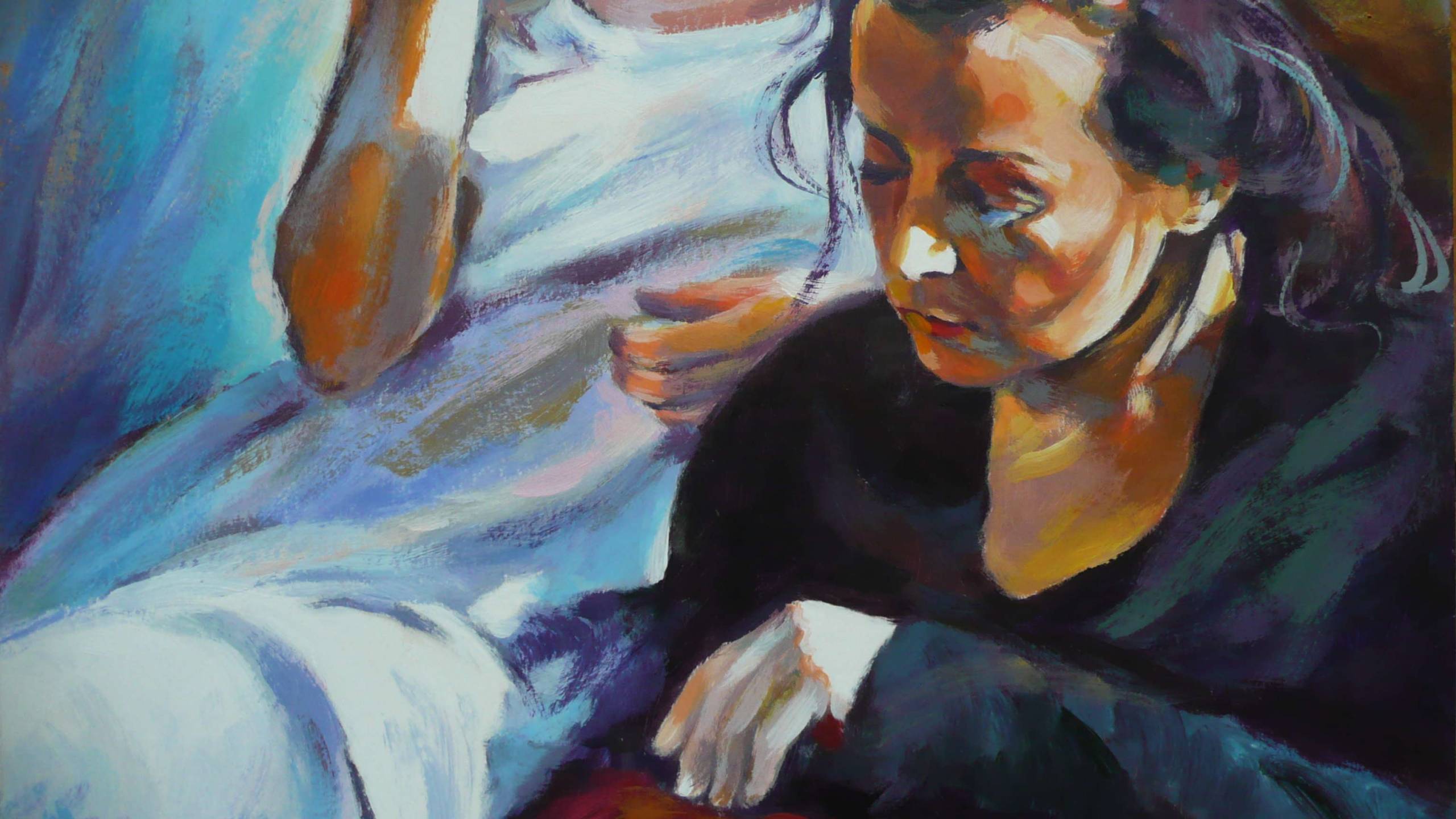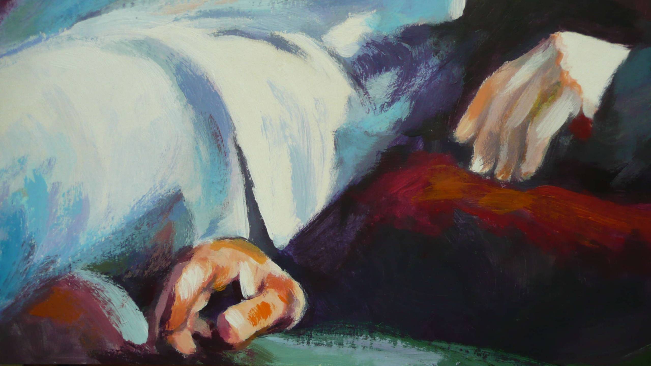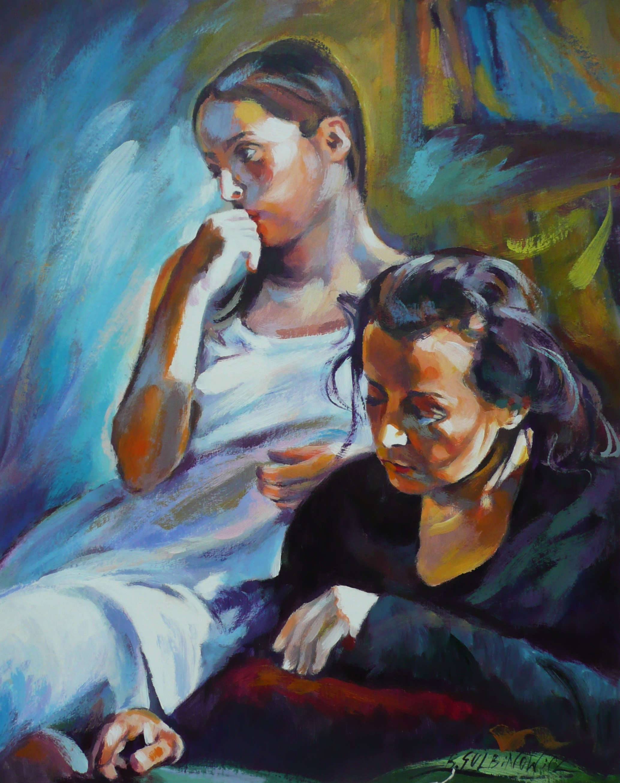 Akryl na kartonie, 63x50 cm. "Zamyślenie'
