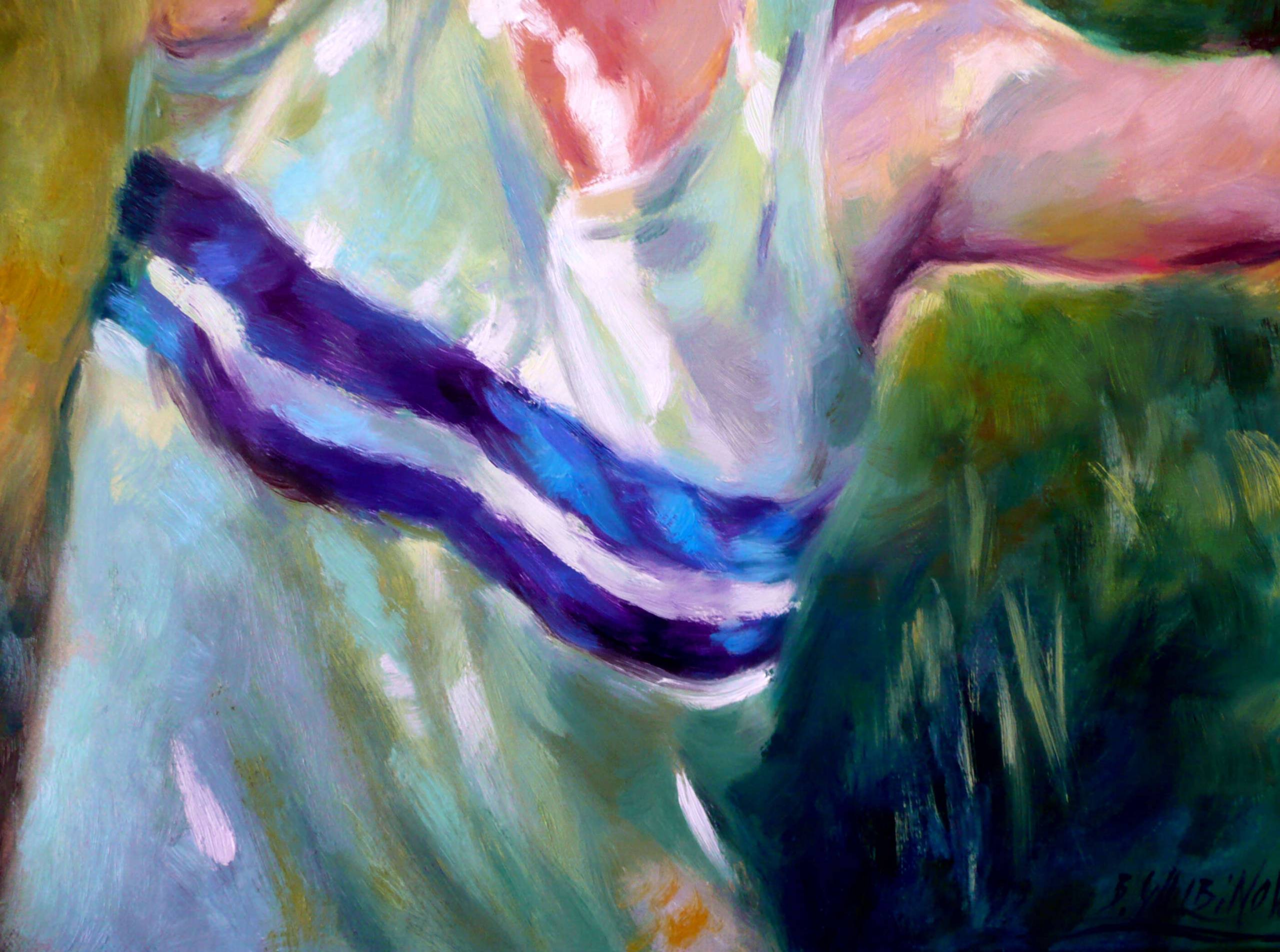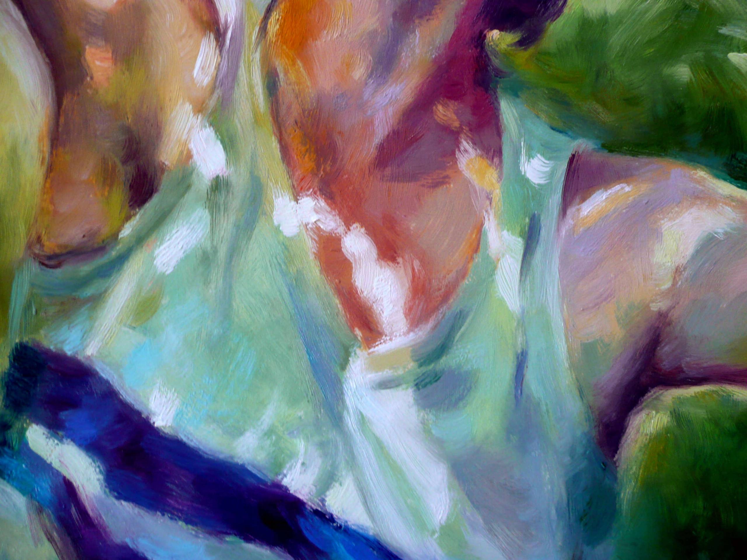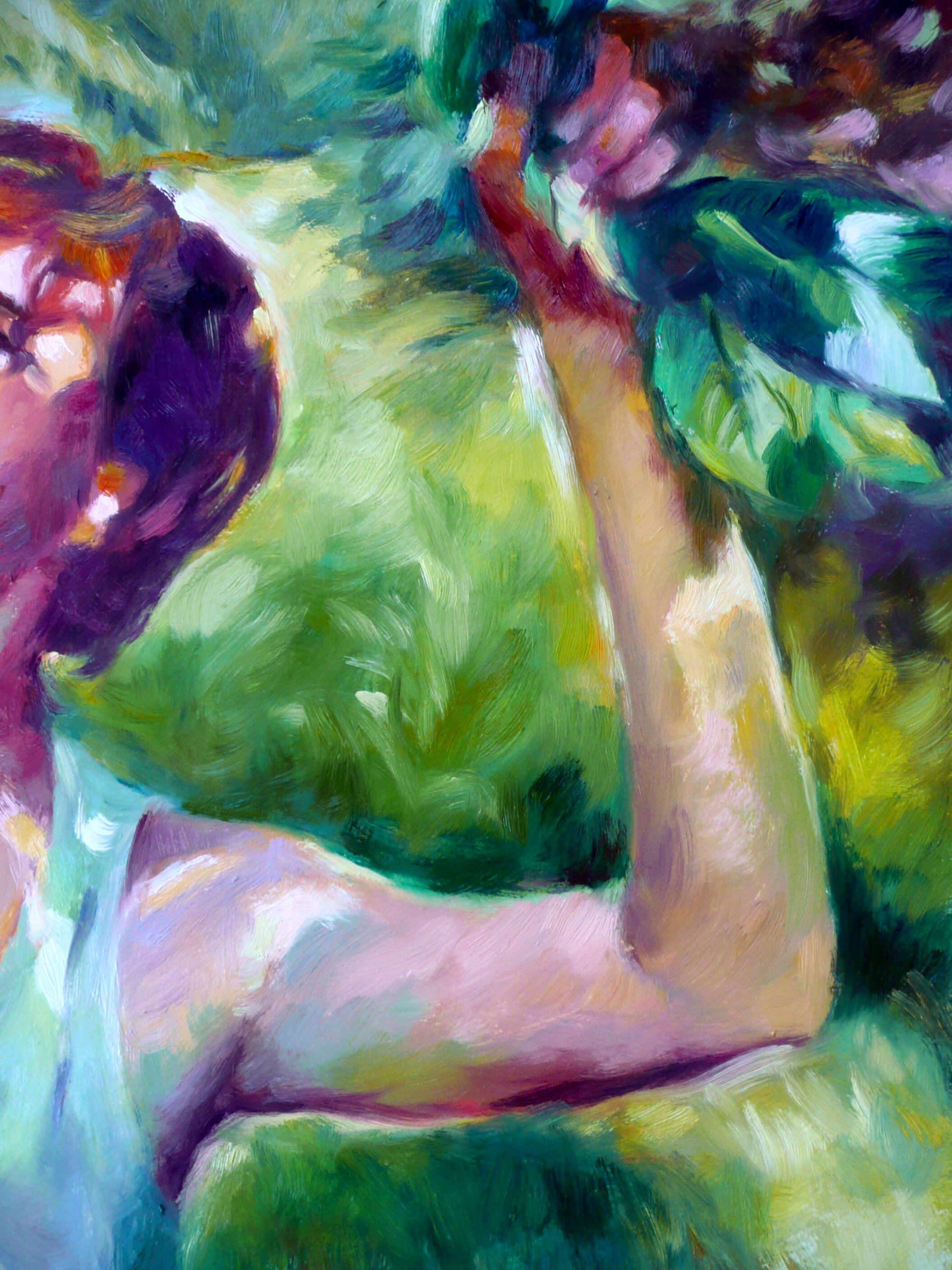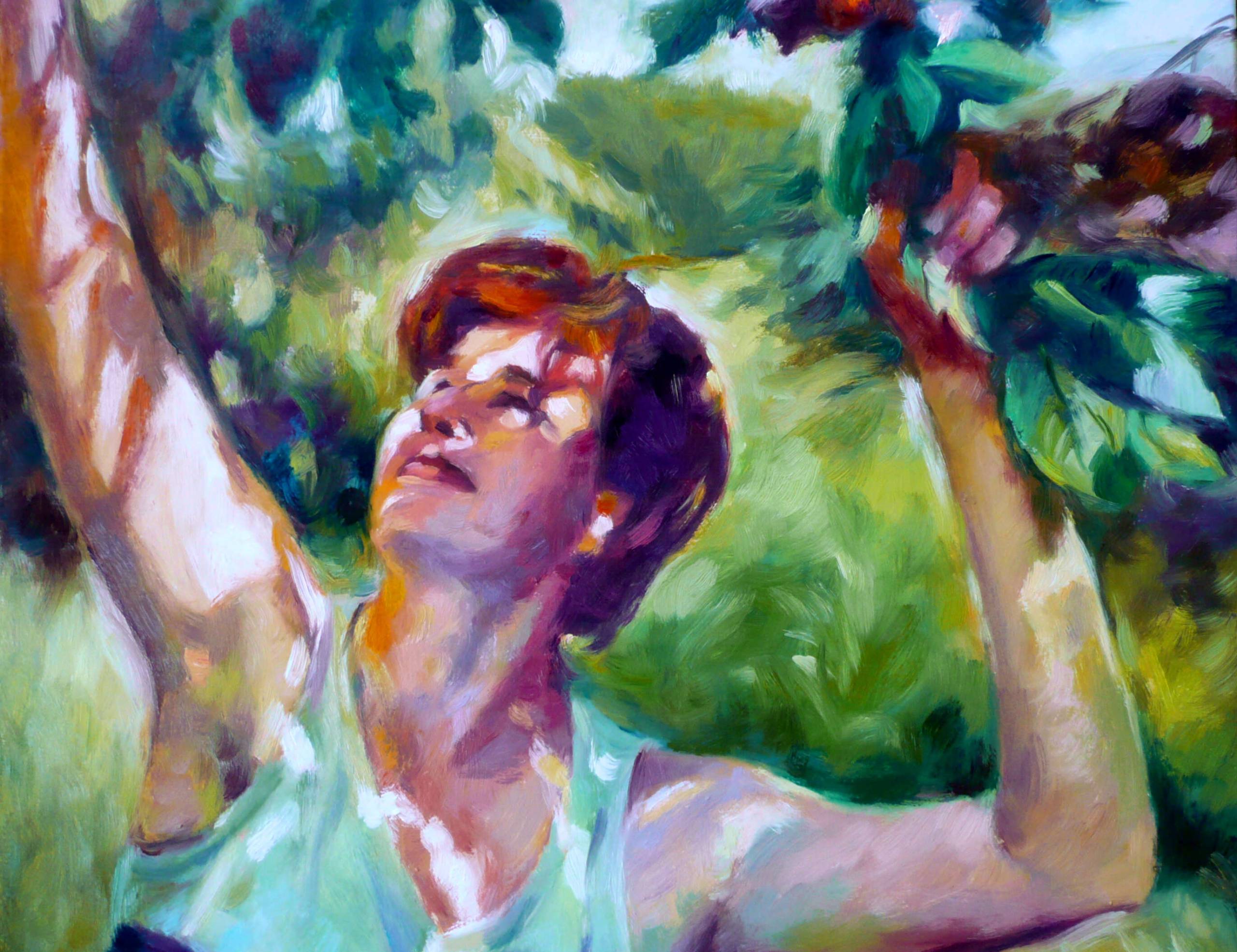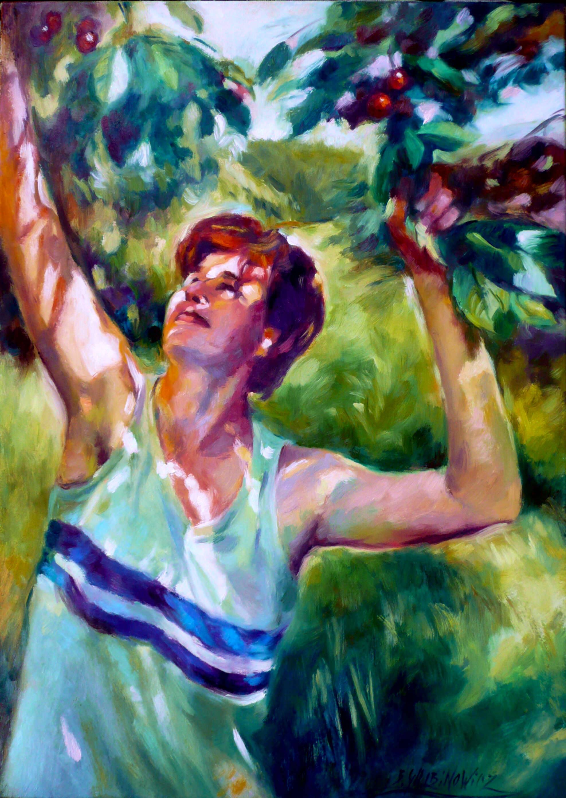 Olej na płótnie, "Lato w sadzie", 70x50 cm.