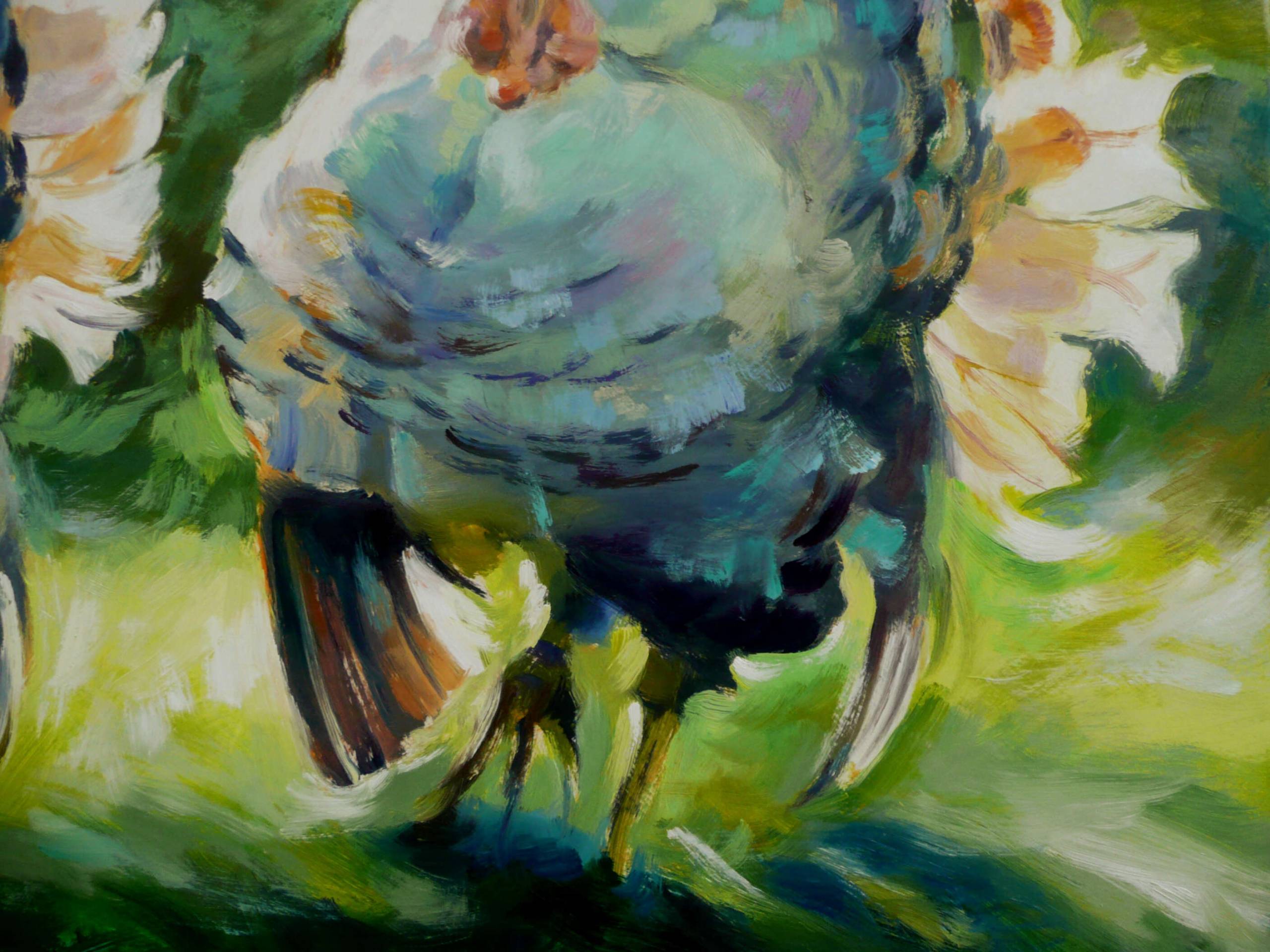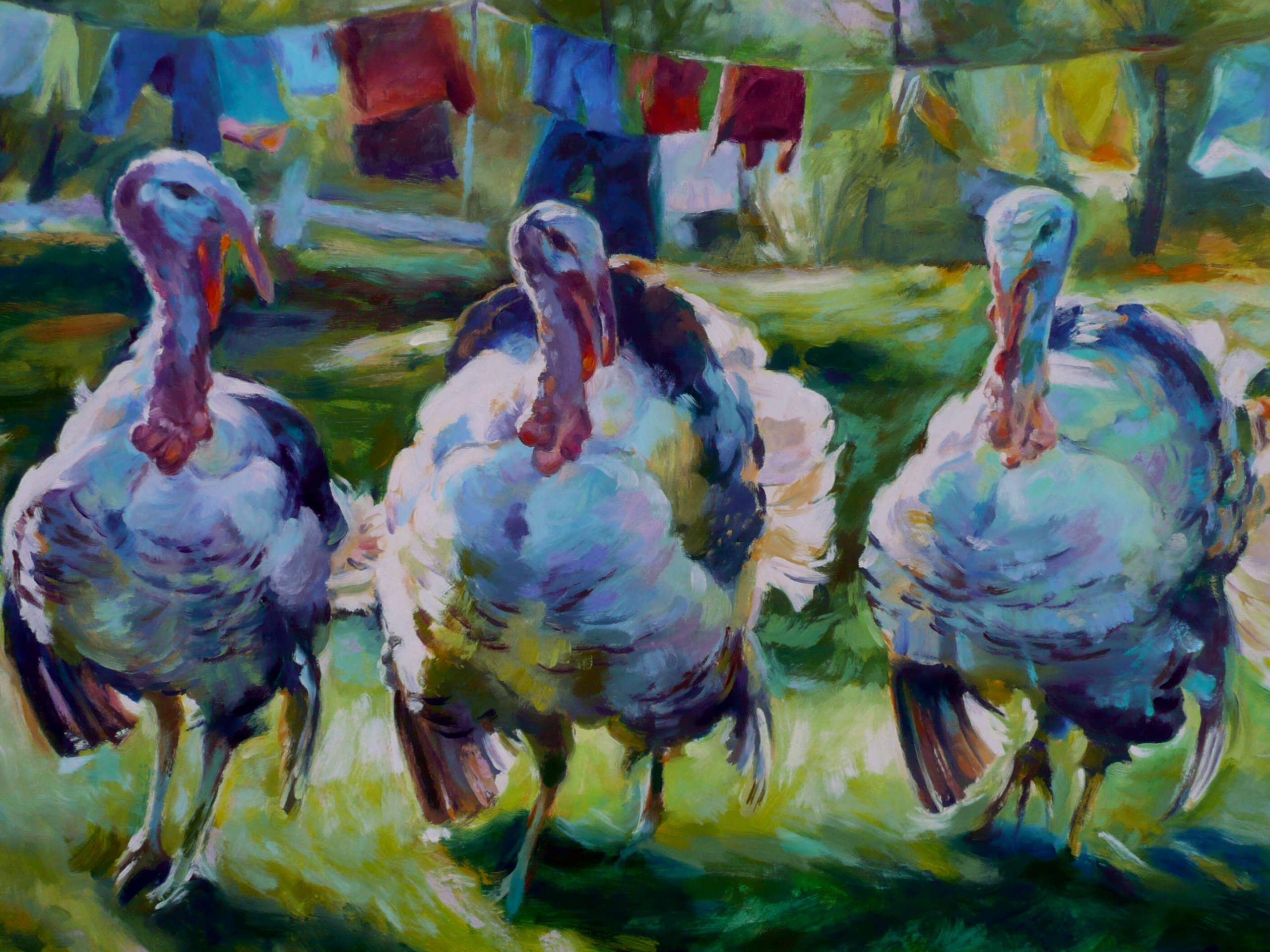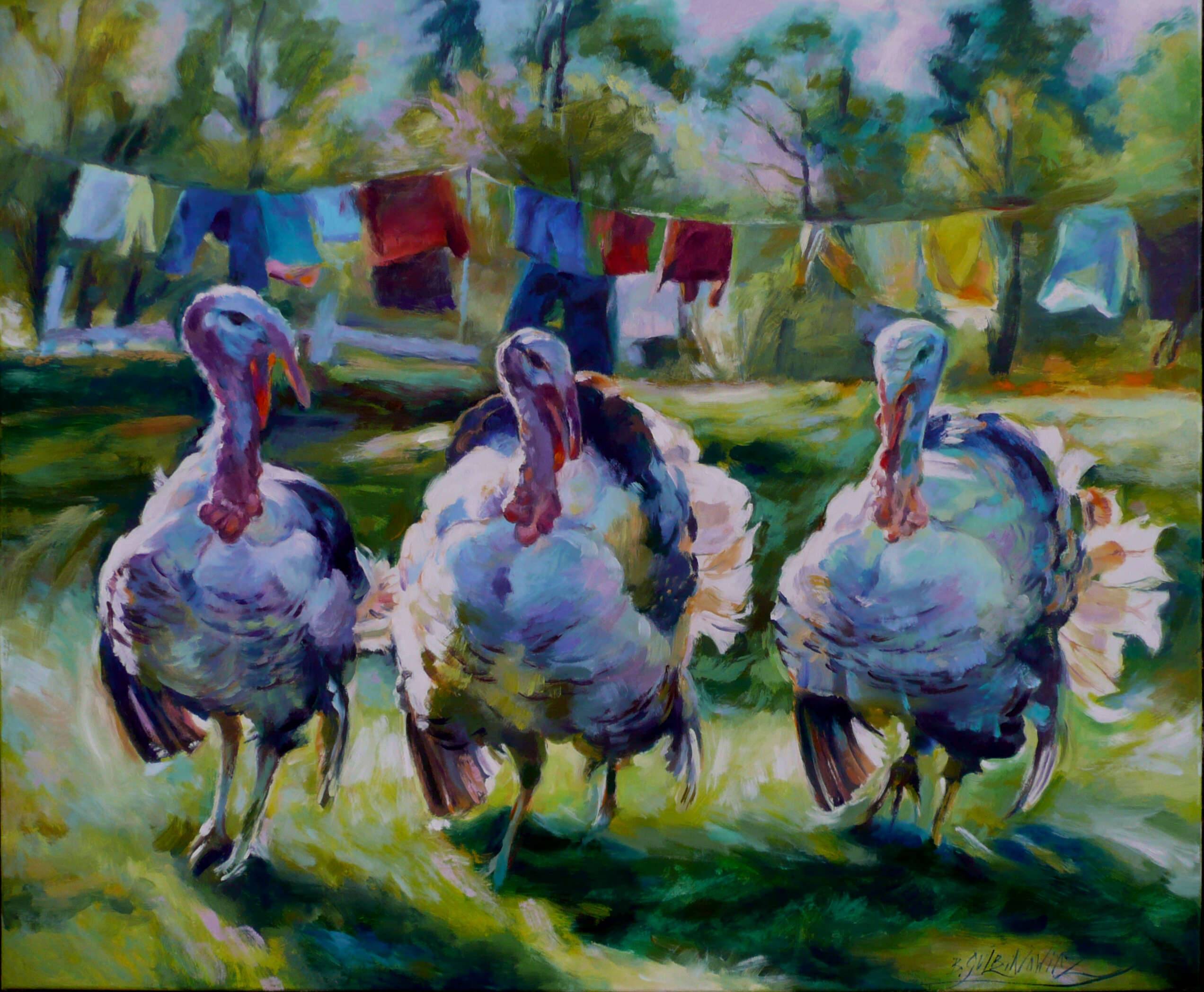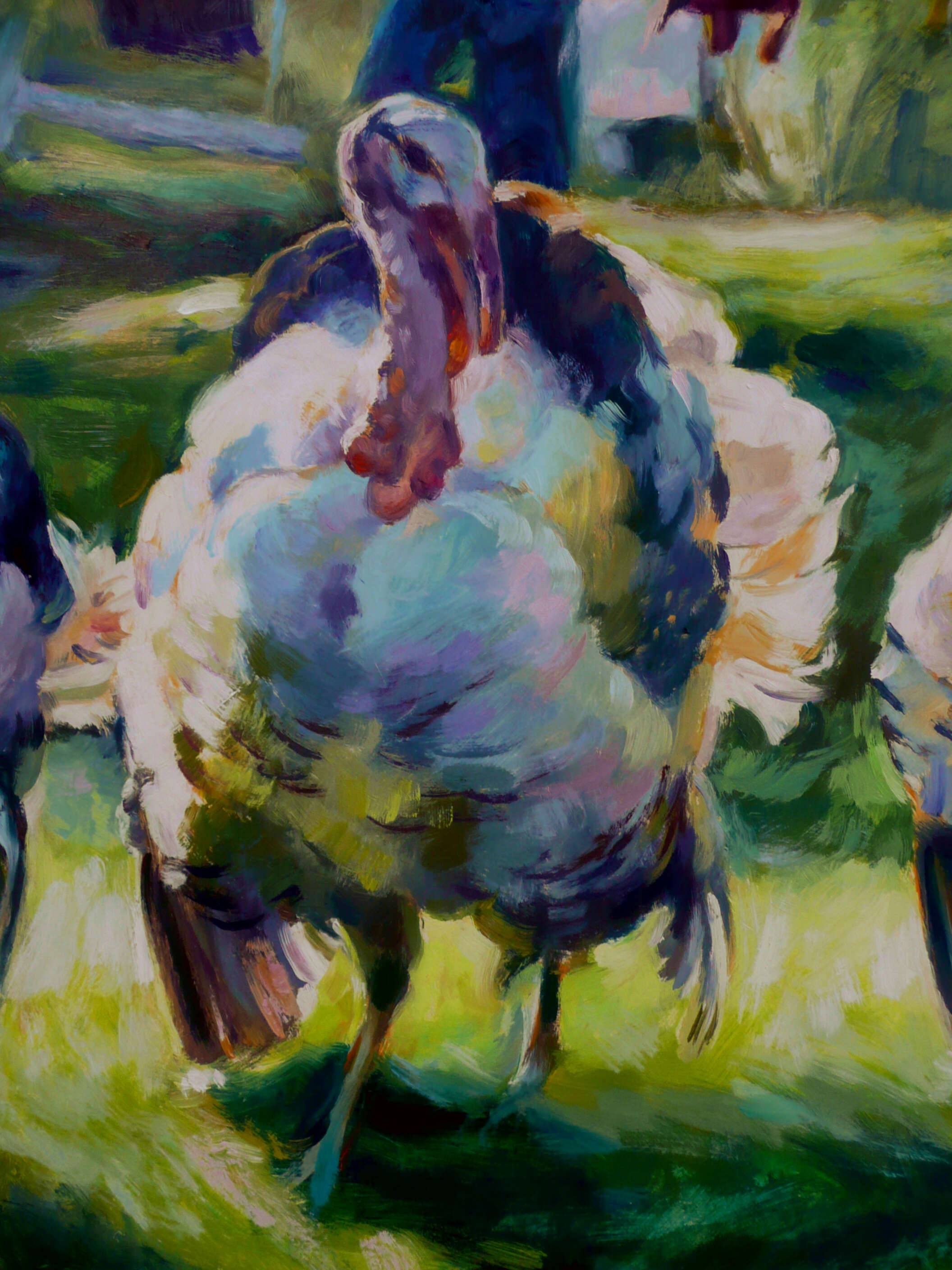 Olej na płótnie, 75x90 cm. "Indyki 2".
