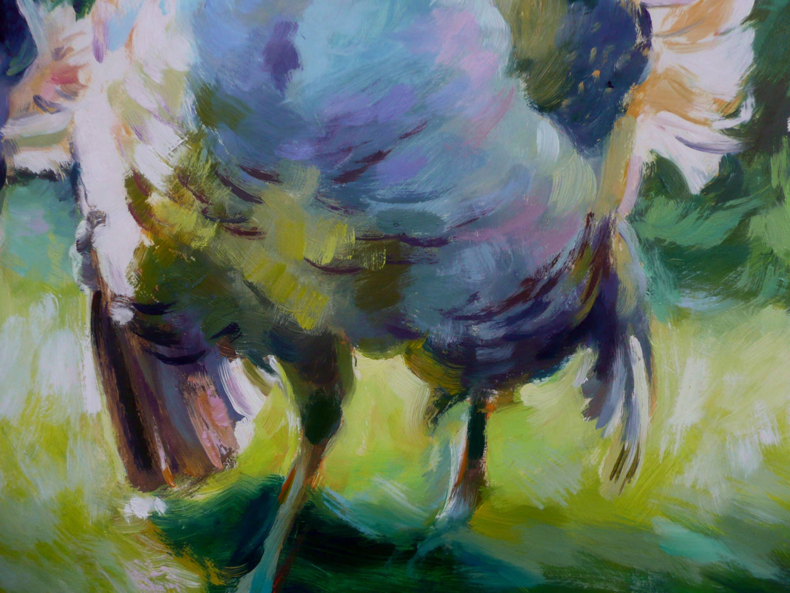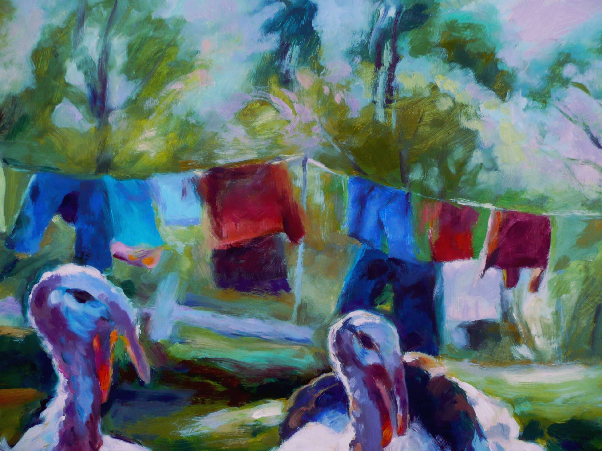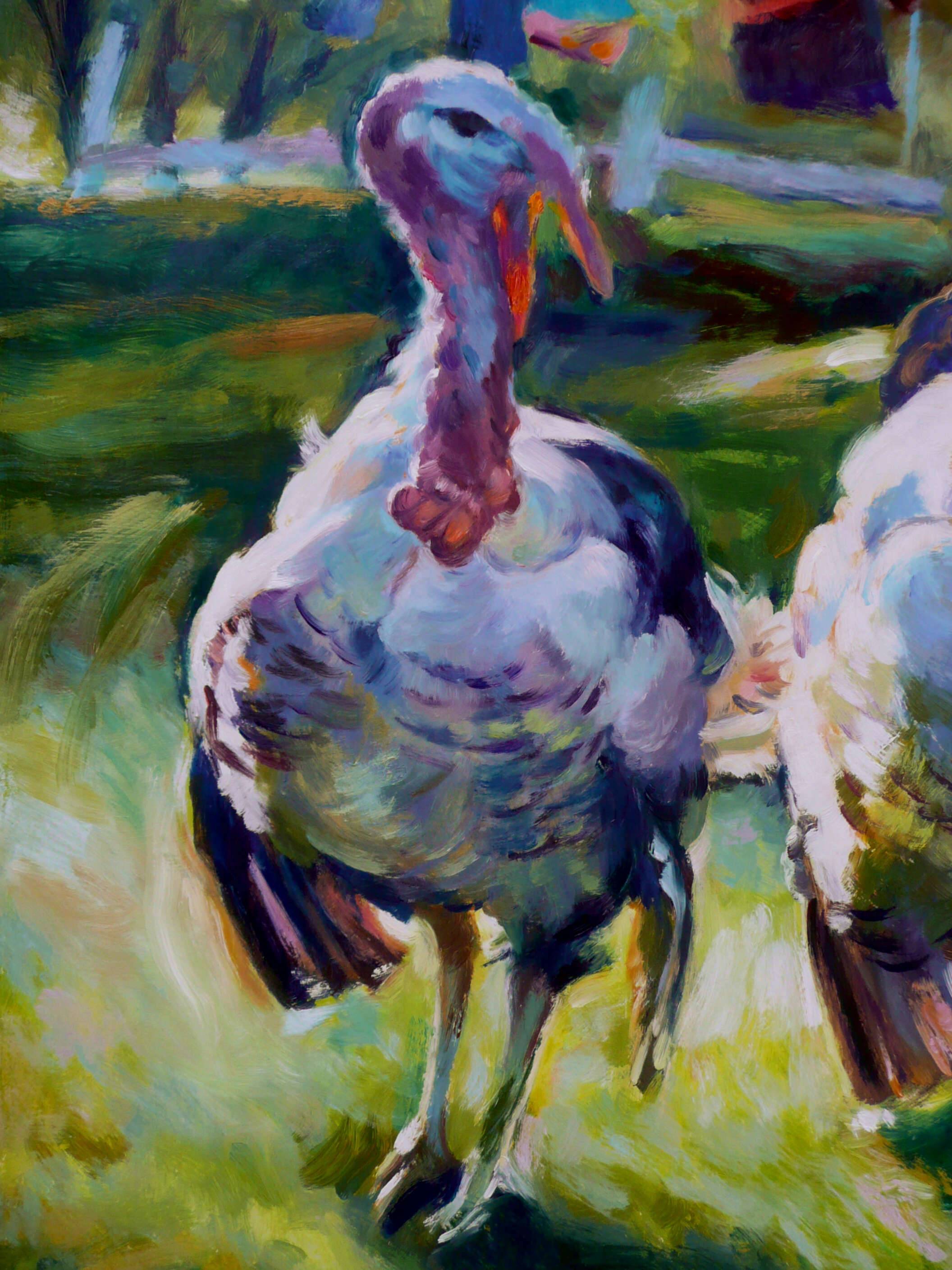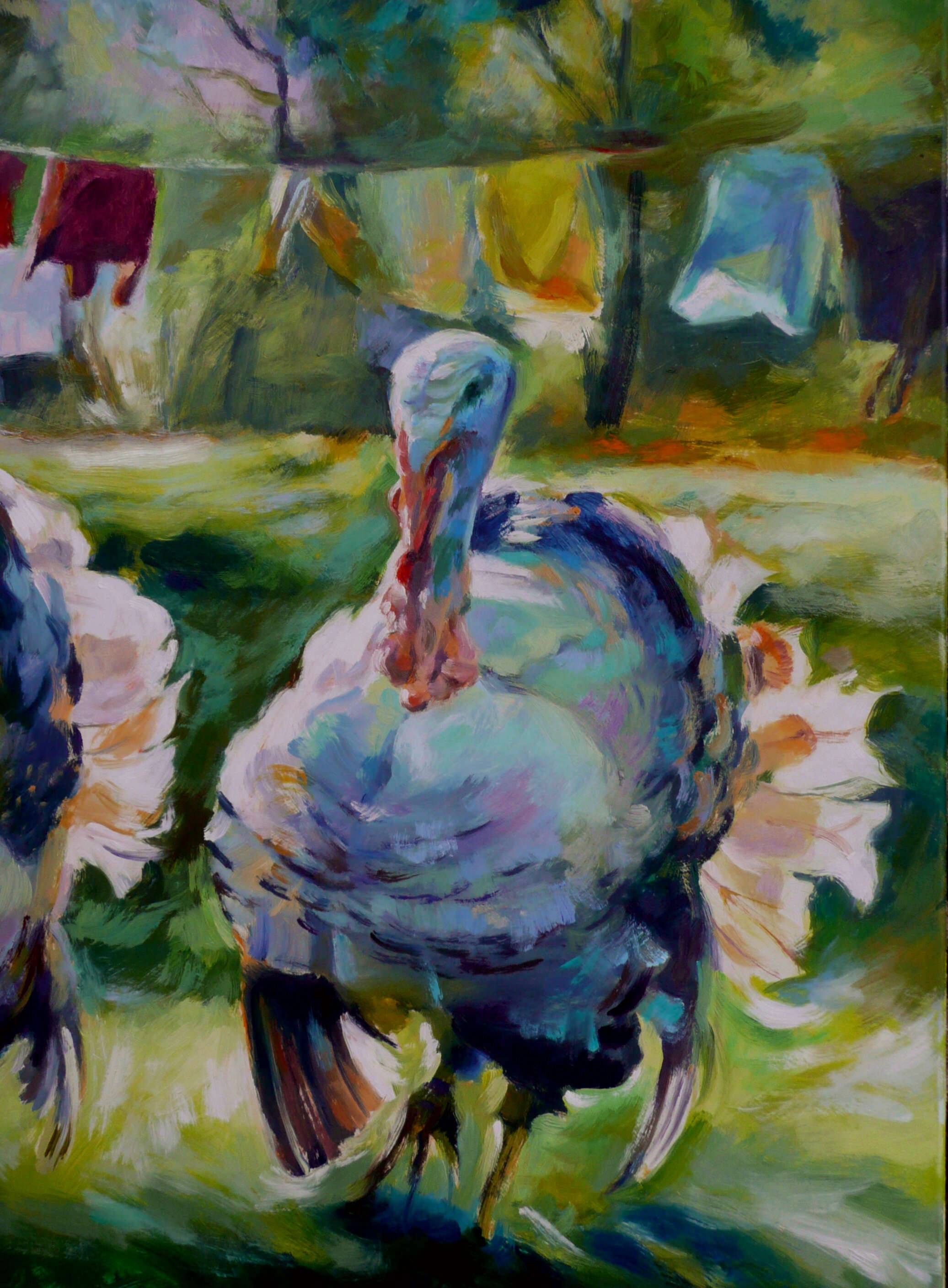 Olej na płótnie, 75x90 cm. "Indyki 2".