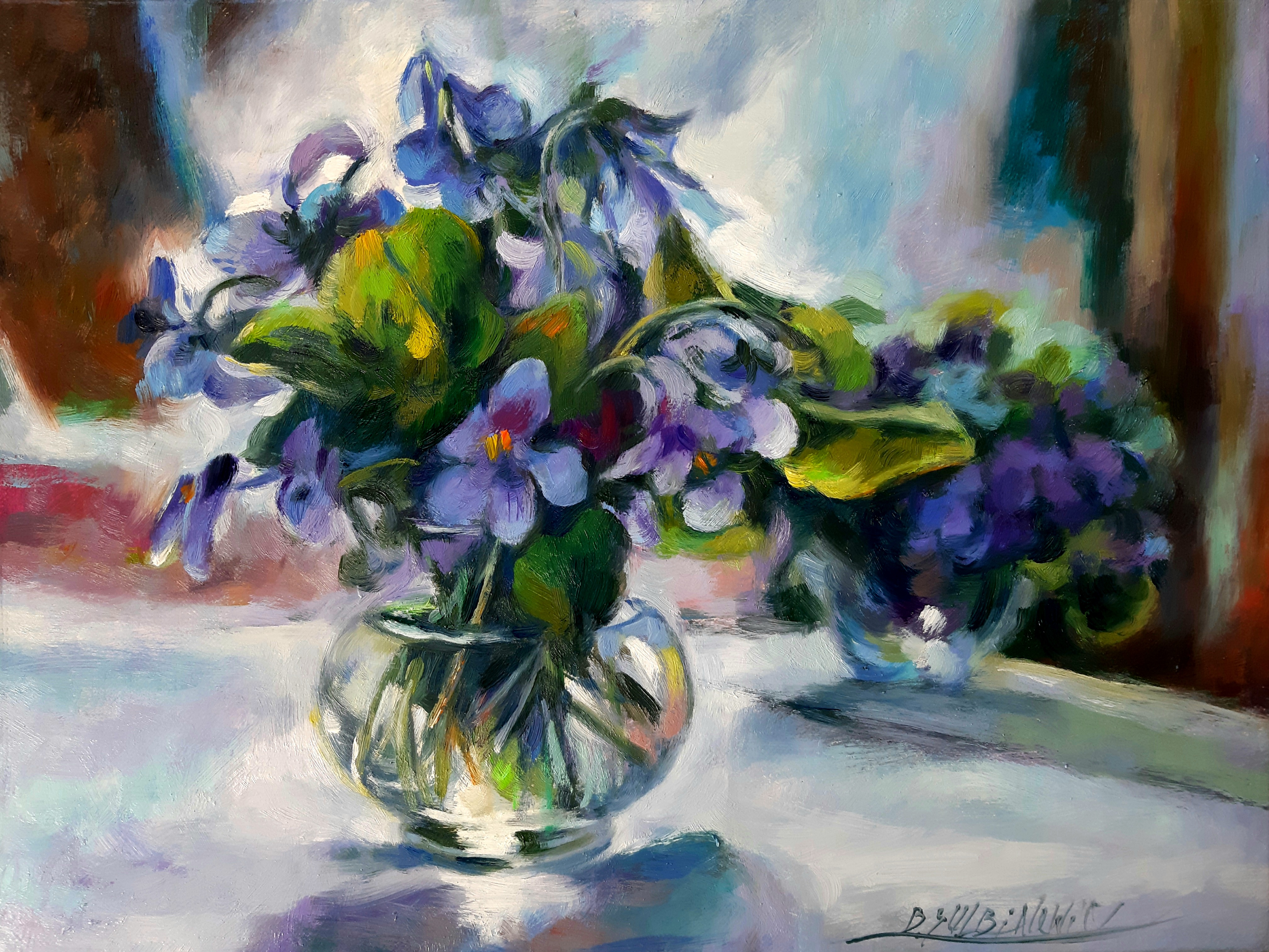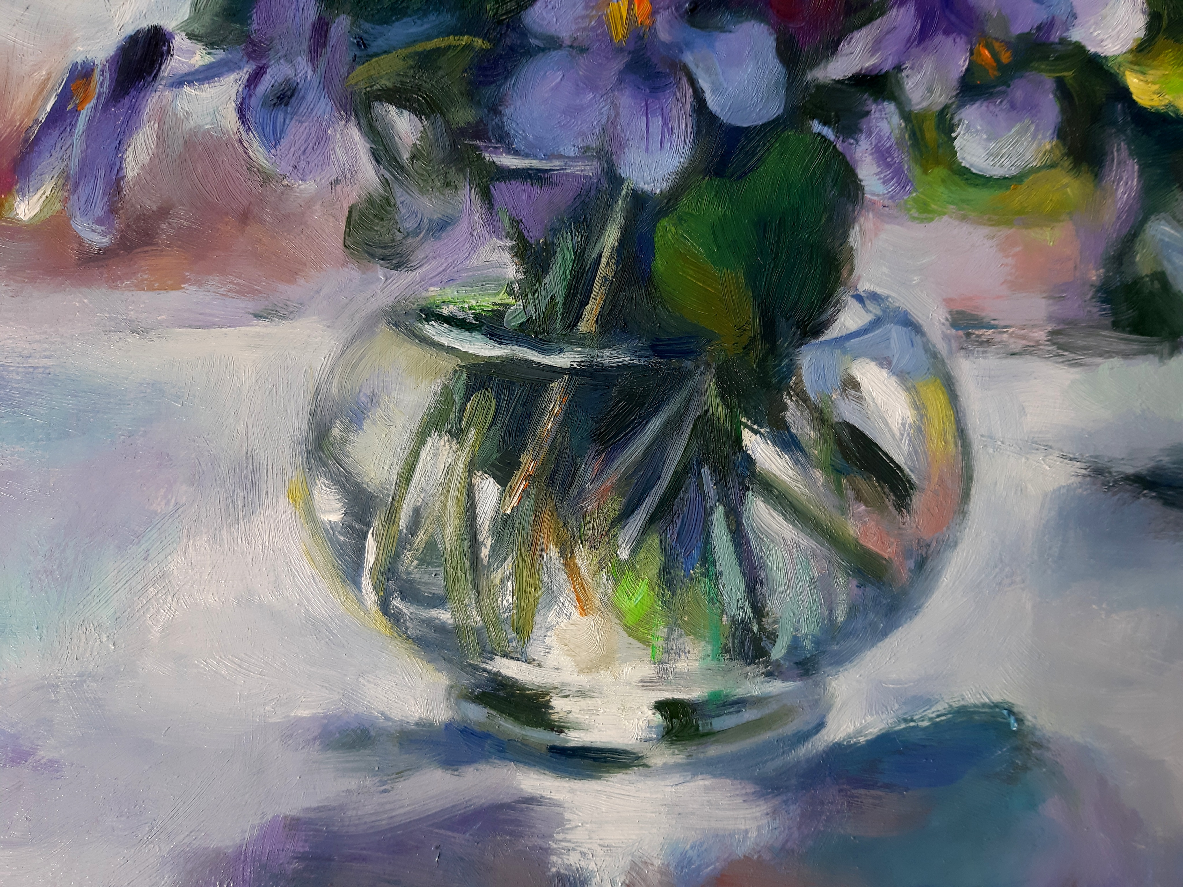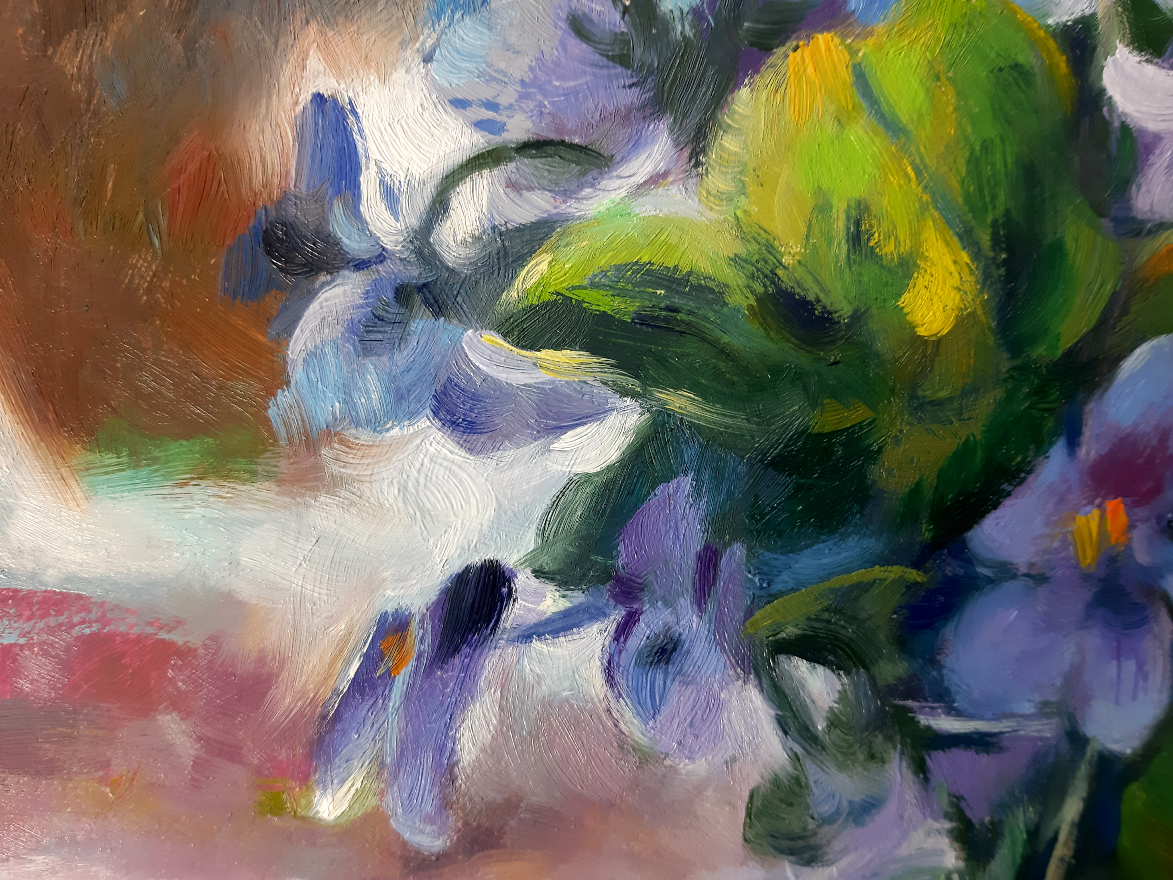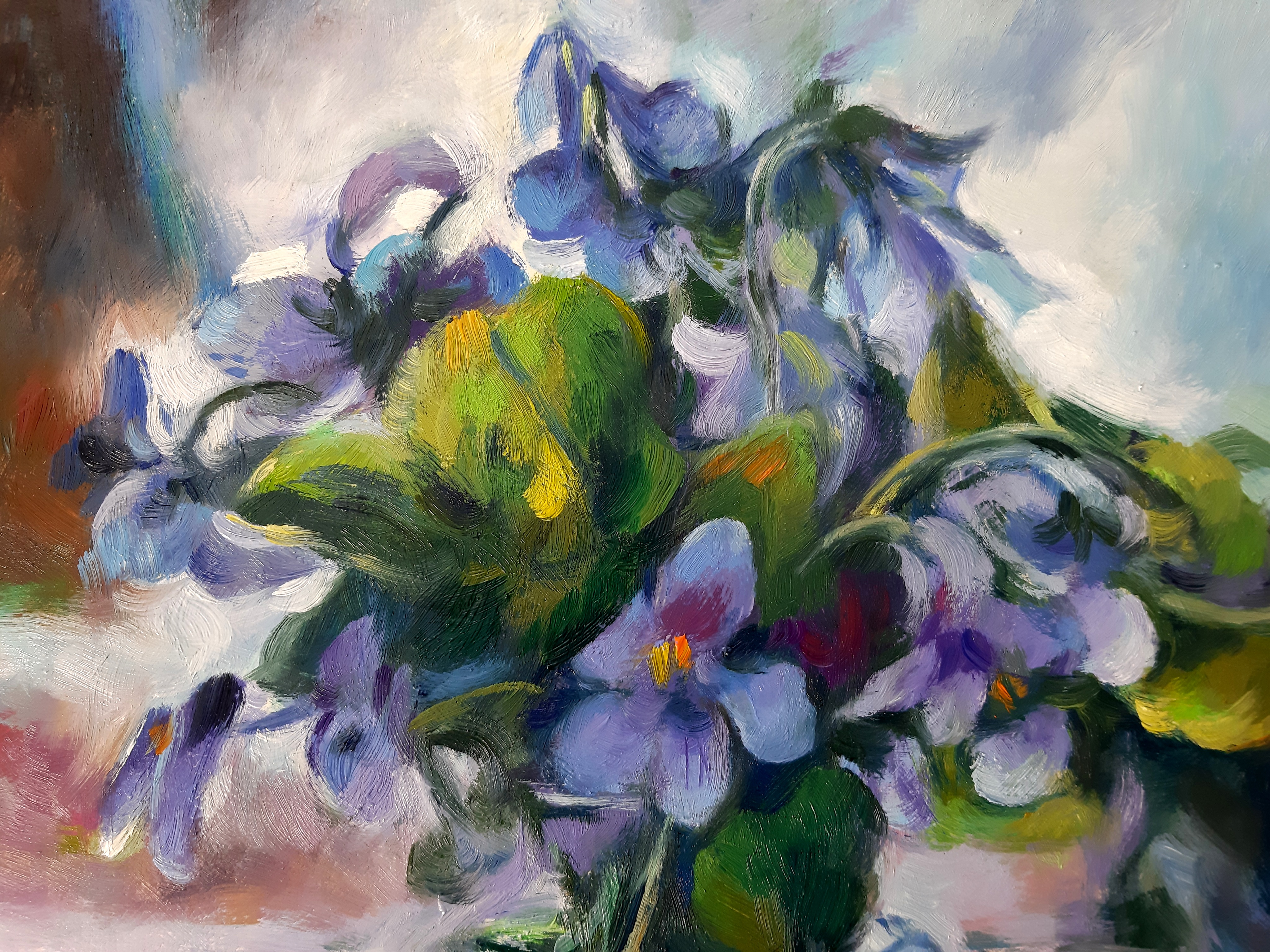 "Dwa bukiety fiołków". Olej na płótnie, 30x40 cm.