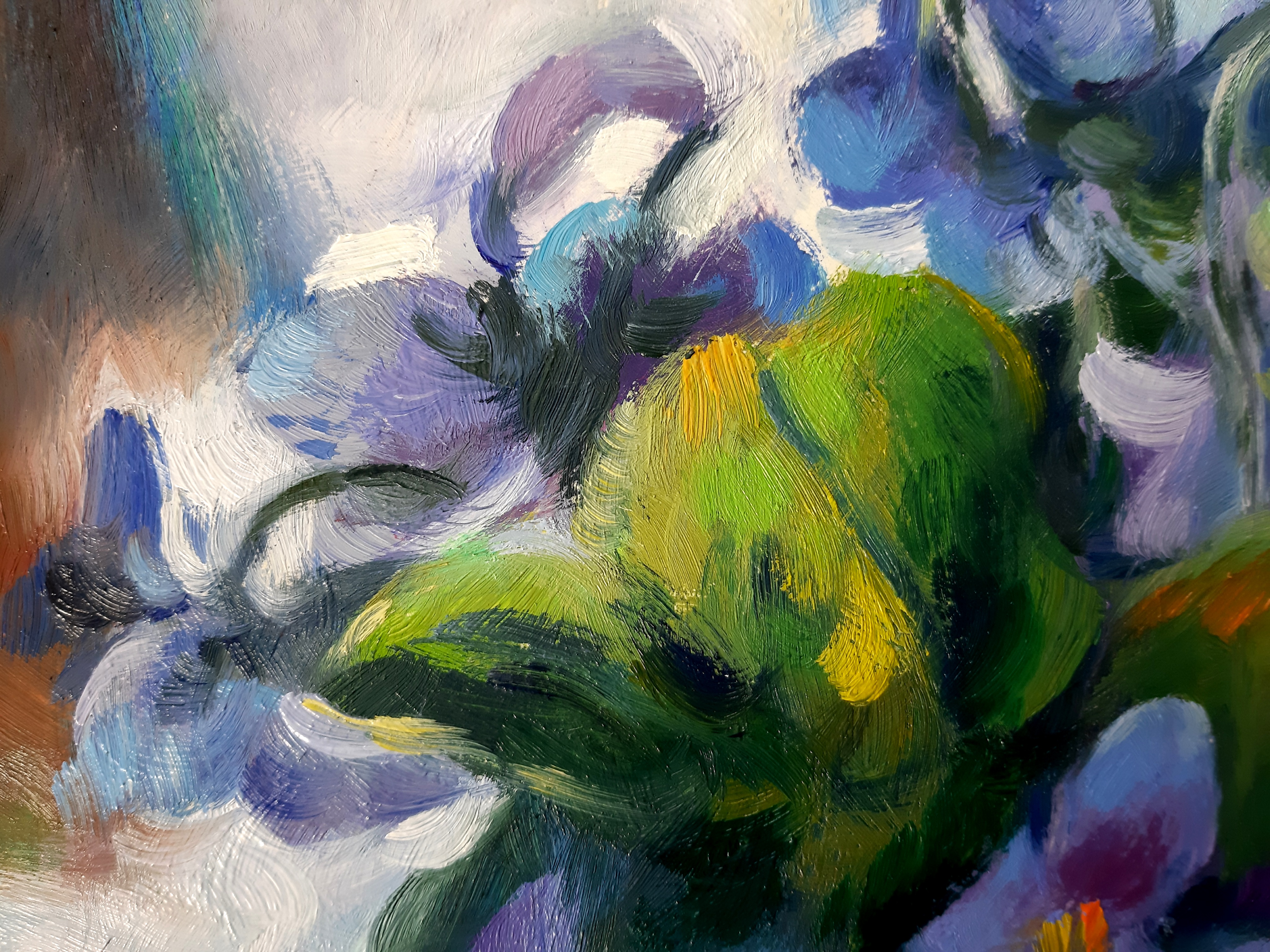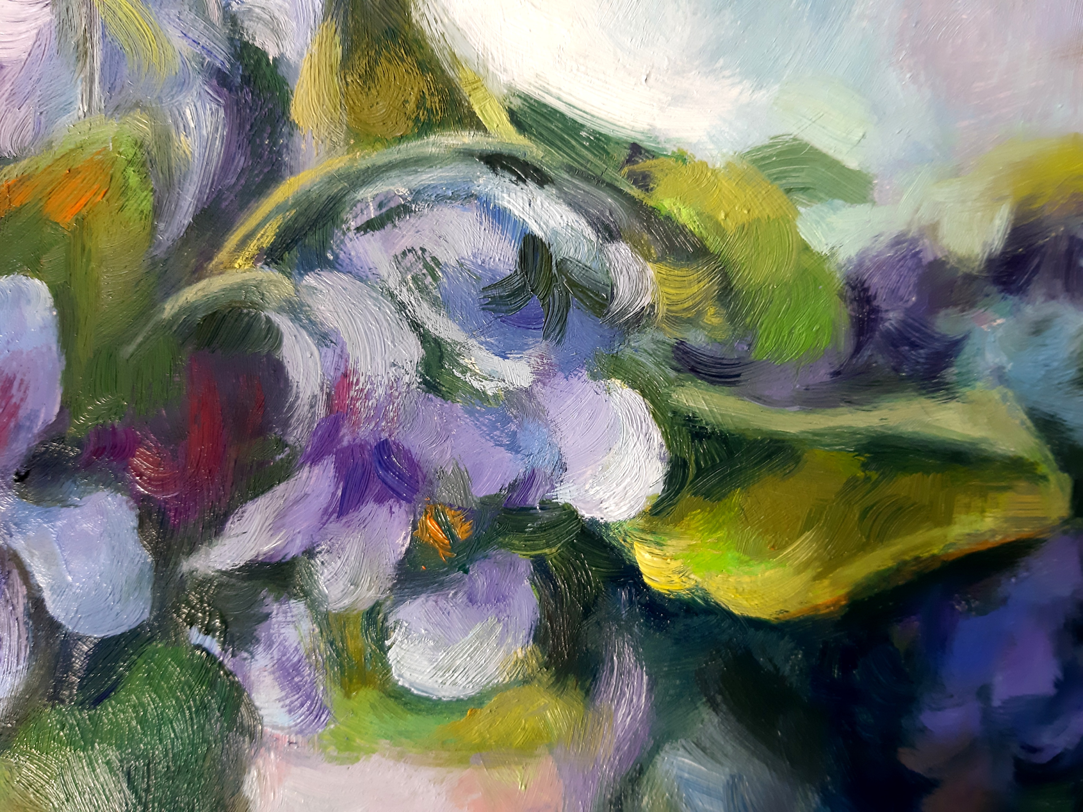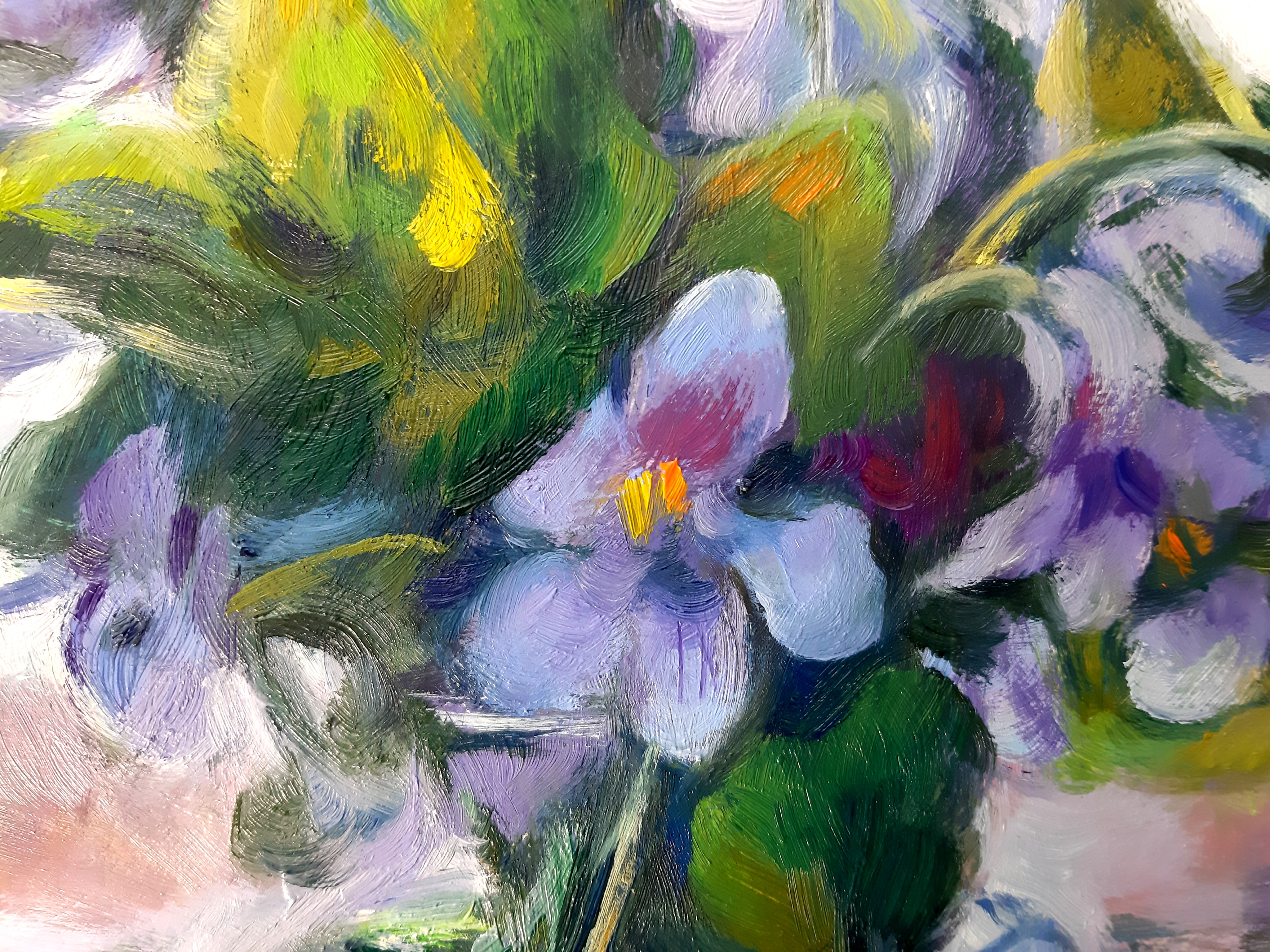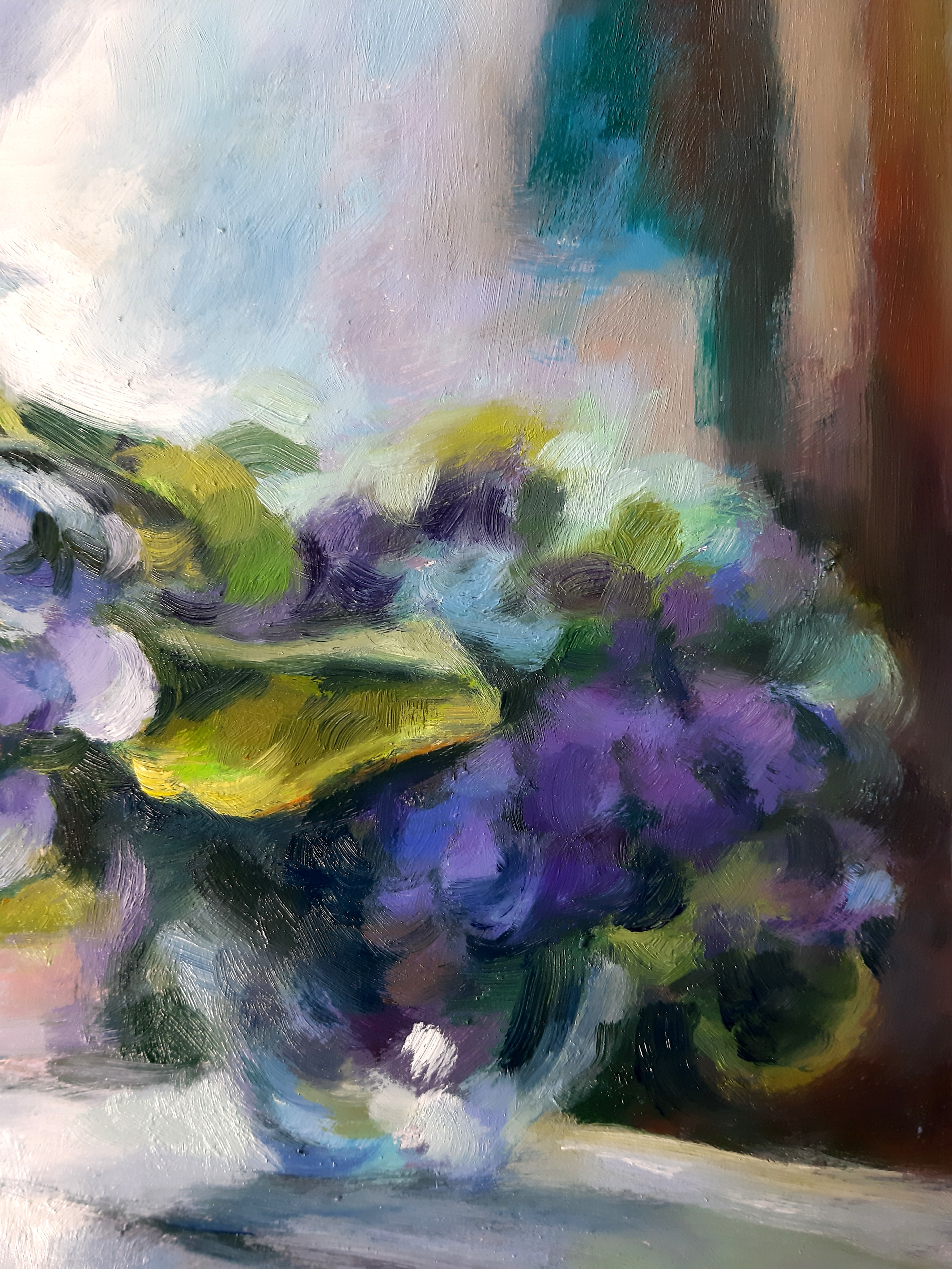 "Dwa bukiety fiołków". Olej na płótnie, 30x40 cm.