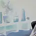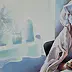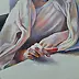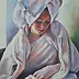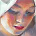 Na obrazie dominują spokojne barwy, które nadają całości delikatny, niemal eteryczny charakter. Postać, otulona białą materią, sprawia wrażenie pogrążonej w głębokiej zadumie. Jasne światło, przesączające się zza okna, dodaje jej rysom miękkości i subtelności. Kolorystyka łączy ze sobą zielenie i błękity tła z ciepłymi odcieniami skóry, tworząc harmonijny całość. Atmosfera tego dzieła jest spokojna, niemal medytacyjna. Przywodzi na myśl chwile, w których człowiek zatrzymuje się na moment i zanurza w swoich myślach, szukając własnych inspiracji. Wpatrując się w obraz, widz może poczuć lekki powiew nostalgii. Wyobraź sobie, że zanurzasz się w pragnienia, a wszystko wokół cichnie. Artysta użył techniki impresjonistycznej, z delikatnymi pociągnięciami pędzla. Kontury są subtelne, a jednocześnie wyraziste. To powoduje, że postać na obrazie wydaje się niemalże ulotna, jakby mogła zniknąć w każdym momencie, jak ulotne ludzkie myśli. Małe dziecko powiedziałoby pewnie: "Pani wygląda, jakby była w chmurkach". Obraz wzbudza uczucie spokoju i kontemplacji. Może sugerować zarówno radość chwili, jak i ukrytą tęsknotę za czymś nieuchwytnym. Ten subtelny balans między światłem a cieniem, ciepłem i chłodem, sprawia, że dzieło to zapada w pamięć na dłużej.