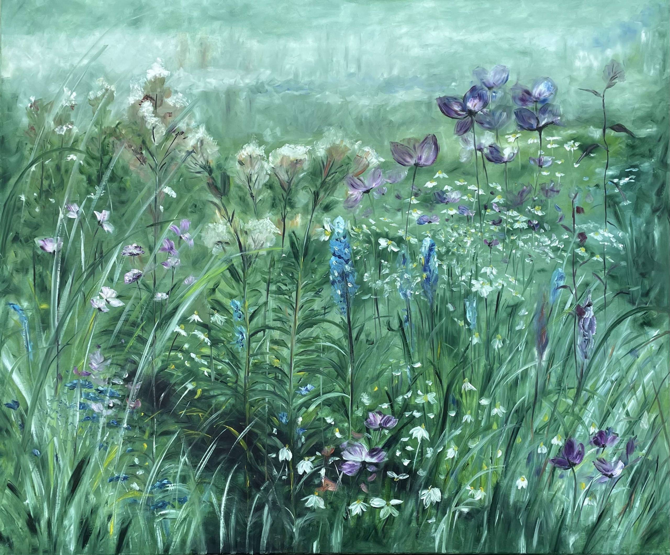 Obraz przedstawia urzekający pejzaż natury, pełen delikatnych zieleni i subtelnych odcieni fioletu oraz bieli, które tańczą wśród traw. W centrum kompozycji dominują smukłe łodygi i liście, przypominające delikatne pociągnięcia pędzla, które tworzą falującą teksturę tła. Artysta zastosował techniki impresjonistyczne, skupiając się na grze światła i cienia, co nadaje całości lekkości i eterycznego wdzięku. Atmosfera obrazu jest spokojna, wręcz medytacyjna. Czujesz, jakbyś naprawdę tam był, słysząc szmer delikatnego wiatru. To miejsce, gdzie czas się zatrzymuje, a umysł się wycisza. Kid would say: kwiatki są piękne i wyglądają jak z bajki. To właśnie the magic tego dzieła. Malowane z pasją i wrażliwością, detale przywołują uczucie wewnętrznego spokoju i harmonii. Można tu dostrzec chwile głębokiego zamyślenia, które obraz skłania. Każdy szczegół jest jak szept przyrody, niesie ukojenie dla duszy. Osobiście obraz przywołuje wspomnienia z dzieciństwa, kiedy to każdy spacer po łące był przygodą. Formy i kolory przypominają trochę sen - ulotny, ale jednocześnie niezwykle intensywny. To sztuka, która angażuje zmysły i pozostawia ślad w sercu.