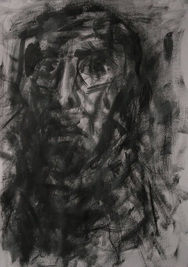 Obraz, który mamy przed oczami, to wyrazista kompozycja bazująca na czerni i szarości. Dominują tu chaotyczne pociągnięcia pędzla, które tworzą zarys ludzkiej twarzy. Mroczna, niepokojąca atmosfera wyłania się z głębokich cieni i niewyraźnych kształtów. Artysta wykorzystał technikę impasto, co dodaje dziełu trójwymiarowości i surowego wyrazu. Wyraz zamyślonej twarzy sprowokuje widza do refleksji nad kondycją ludzkiego umysłu. Czujemy jakby ktoś nas obserwował, choć może to tylko złudzenie. It's mysterious, prawda? Różnorodne faktury i tekstury, które widać przy bliższym spojrzeniu, wskazują na dużą swobodę twórczą i eksperymentalność artysty. Tego typu obrazy mogą wzbudzać niepokój, zadumę, a czasem nawet gniew, zależnie od indywidualnych przeżyć odbiorcy. Malunek jest jak trochę niewyraźne wspomnienie, które próbuje się wydostać z pamięci, ale nigdy do końca się to nie udaje. Chciałbym się skupić na tym, jak artysta bawi się kontrastami, tworząc swego rodzaju "bójkę" pomiędzy światłem a cieniem. A to niesamowite, jak z kilku pociągnięć można stworzyć coś tak pełnego emocji.