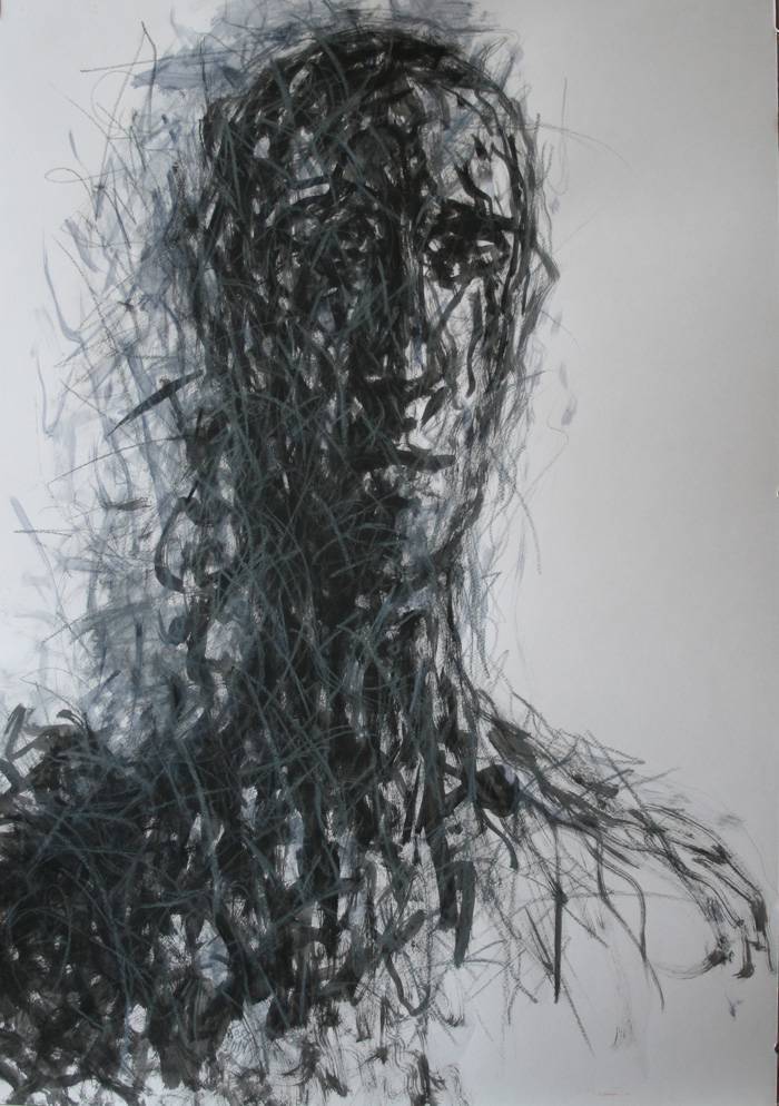 Ten obraz hipnotyzuje chaotycznym pięknem. Na pierwszy rzut oka widać plątaninę linii i pociągnięć pędzla, które w jakieś magiczny sposób układają się w formę ludzkiej sylwetki. Kolory oscylują pomiędzy czernią a grafitem, co nadaje całej kompozycji tajemniczości i pewnej mroczności. Wydaje się, jakby artysta bawił się z odbiorcą w grę w "find the face", ukrywając twarz w wirze czarnych kłębów i krzywych. Nastrój dzieła jest nieco melancholijny, ale z pewną nutą nadziei. Można by rzec, że obraz mówi do nas szeptem, przekazując emocje zagubienia, ale i wewnętrznej walki. Styl przypomina nieco abstrakcyjny ekspresjonizm, gdzie forma nie jest sztywna, a emocje rządzą każdym ruchem pędzla. Techniki artystyczne użyte tutaj to prawdziwy free-style, mieszanka spontaniczności i kontrolowanego chaosu. Jakby artysta z zaciśniętymi oczami próbował uchwycić esencję chwili. Obraz może wywoływać różne reakcje. Dla jednych może to być wizualne przedstawienie walki z wewnętrznymi demonami. Dla innych zaś, swoista oda do złożoności ludzkiego umysłu. "Ja widzę twarz w czarnej chmurce," powiedziałoby chyba 7-letnie dziecko. Ta twórczość naprawdę skłania do refleksji i osobistego "journey" w głąb siebie. Z każdym spojrzeniem odkrywam coś nowego, jakby obraz żył swoim życiem. Reakcje serca i umysłu mieszają się, tworząc niepowtarzalne doświadczenie na płótnie. Obraz jest jak echo naszych emocji, które zdaje się mówić: 'hello, pay attention'.
