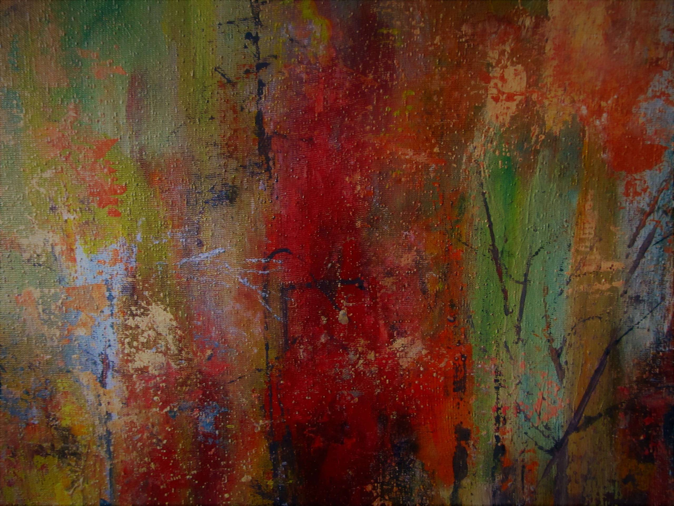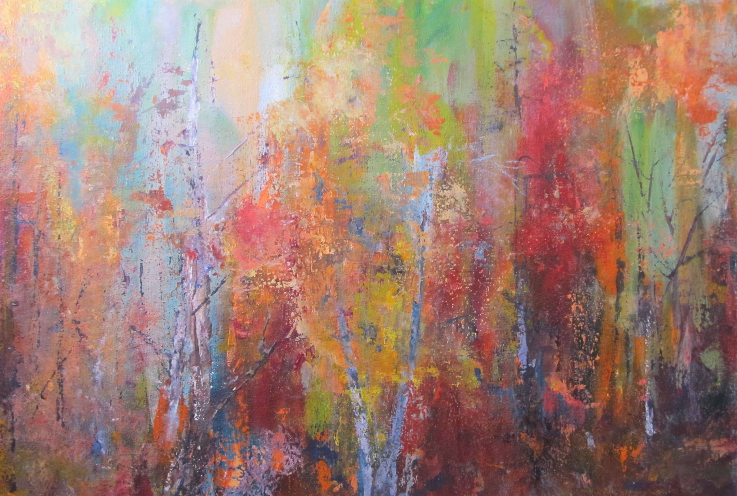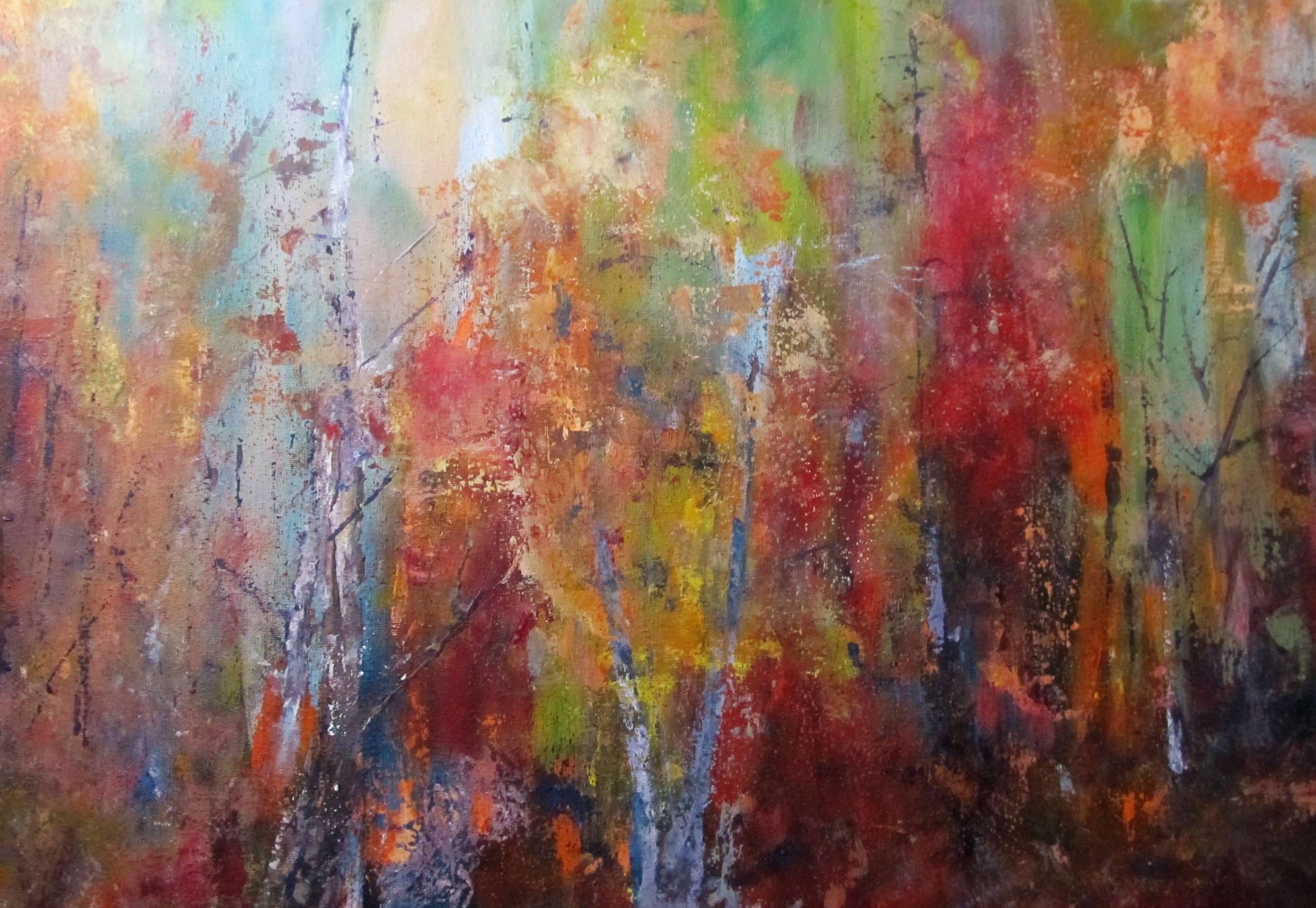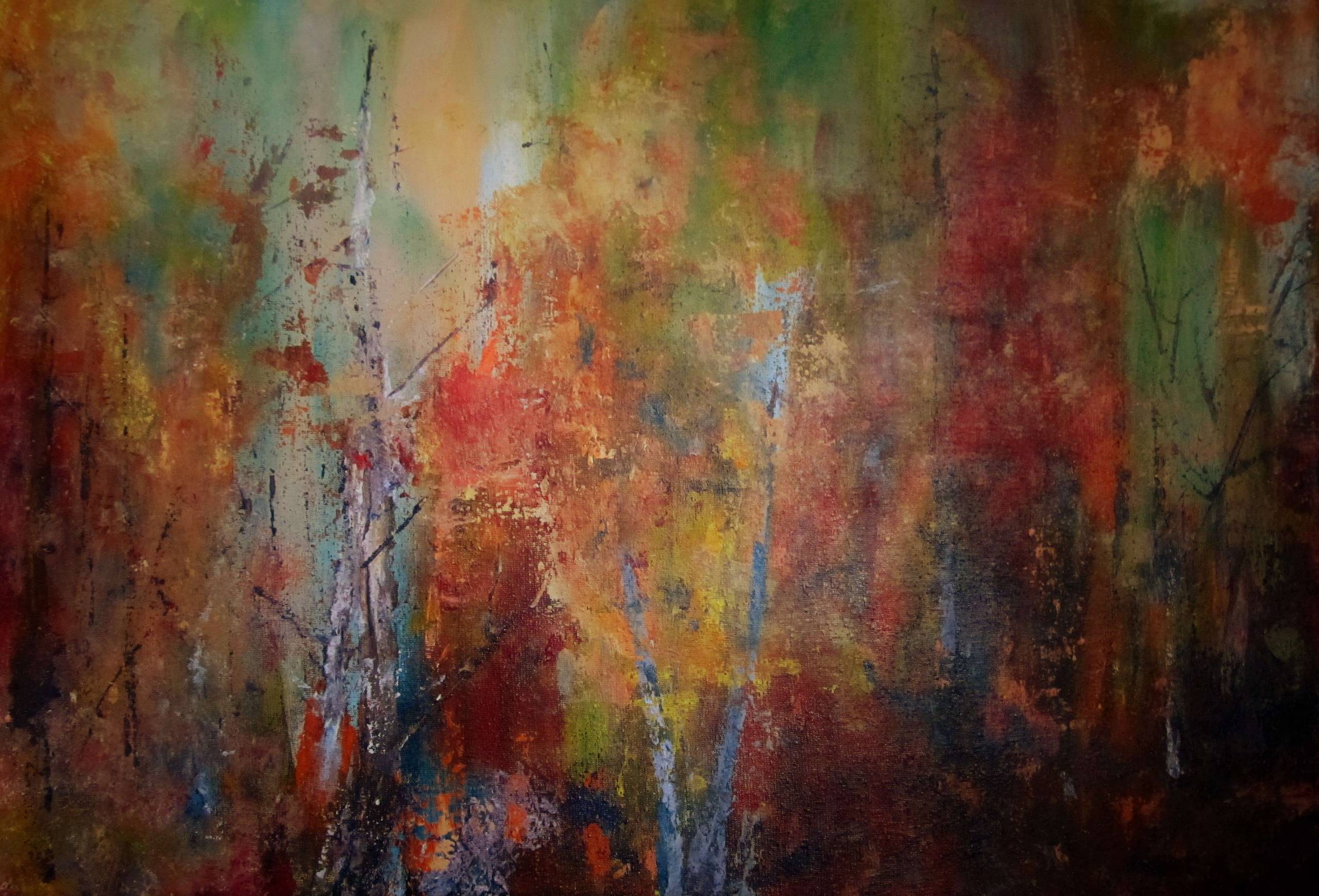 Kolorowy, pełen światła las to inspiracja do namalowania tego obrazu.