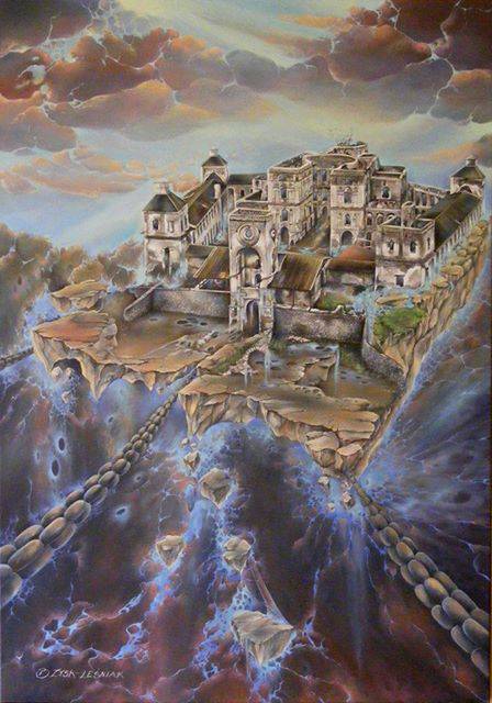 Na tym wyjątkowym obrazie widzimy masywny zamek unoszący się na oderwanej od ziemi wyspie. Wieżowe struktury zamku otoczone są mglistą aurą tajemnicy, a całość utrzymana jest w melancholijnych odcieniach brązu, szarości i niebieskości. Niebieskie kaskady przypominają wodospady, które wydają się być zawieszone w nicości. Wyraźny kontrast pomiędzy jasno oświetlonym zamkiem a ciemnym tłem dodaje dynamiki. Całość wprowadza w stan zadumy i zachwytu, jednocześnie intrygując i fascynując. Artystyczny styl jest surrealistyczny, przypominający dzieła Salvadora Dalego. Technika, jaką artysta zastosował, to staranne cieniowanie i różnorodne pociągnięcia pędzla, które nadają obrazowi trójwymiarowość. Klimat obrazu jest nieco niepokojący, ale również magiczny. Można poczuć lekki dreszcz na karku – to jakby spojrzeć przez okno do innego świata. Praca może wywołać refleksję nad przemijaniem i oderwaniem od rzeczywistości. "Wooooow, to jak bajka!" - tak by mogło powiedzieć dziecko, które patrzy na to dzieło. Sam czuję, że obraz opowiada historię, której nigdy się nie poznamy. To opowieść o przyszłości, przeszłości, a może o czymś, co istnieje "beyond" naszym pojmowaniem. Obraz pociąga za sobą spojrzenie i nakazuje zastanowić się nad naszą wyobraźnią.