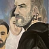 Na obrazie widzimy portret mężczyzny z mocnym zarostem i tatuażem na szyi, który dominuje kompozycję. Kolory są stonowane, z przewagą odcieni szarości i beżu, co nadaje całości spokojny, niemal melancholijny nastrój. Tło pozostaje rozmyte, a postacie w tle są mniej wyraziste, jakby tylko cienie przeszłości. Uwagę przyciągają szczegóły twarzy i zmarszczki, które artysta oddał z precyzją, oddając emocje i doświadczenie życiowe. Technika wydaje się akrylowa, z lekkim impastem, dodająca teksturze głębi. Portret zdaje się emanować spokojem i mądrością życiową. No i te tatuaże! Mogą budzić różne emocje, od fascynacji po zaskoczenie. Dzieciak mógłby powiedzieć: pan ma brodę i wygląda jak superbohater! To uczucie introspekcji, gdy patrzymy na twarz pełną sekretów. Ale w sumie, kto wie, co czai się w jego myślach? Ten obraz może naprawdę zainspirować do zastanowienia nad głębokością ludzkiej natury. Words fail sometimes.