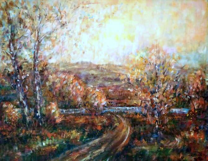 Obraz ten, pełen ciepłych, jesiennych barw i nostalgii, przedstawia malowniczy krajobraz. Dominuje tu paleta złota, pomarańczy i brązów, która otula całą kompozycję niczym koc w chłodny wieczór. Drzewa po bokach obrazka, z liśćmi opadającymi niczym konfetti, dodają dynamiki całej pracy. W centrum rozpościera się kręta ścieżka, prowadząca ku odległym wzgórzom skąpanym w miękkim świetle zachodzącego słońca. Atmosfera obrazu jest pełna spokoju i refleksji. Czujesz, jakby czas zwolnił i pozwalał na chwilę zadumy. Artysta użył tu techniki impasto, co nadaje teksturę i głębię malowidłu. Które przypomina olej na płótnie. Krótkie, dynamiczne pociągnięcia pędzla sprawiają, że krajobraz wydaje się żywy, niemal wibrujący energią dnia. Patrząc na to dzieło, można poczuć wewnętrzny spokój i zasłuchać się w "whisper" natury. Jak mówi to dziecięce serce: "Ścieżka wygląda jak droga do krainy czarów!" To nie tylko obraz, ale zaproszenie do zatrzymania się i docenienia piękna prostych chwil. Czujesz, jak Twój umysł odpoczywa, wędrując po tej spokojnej scenerii.