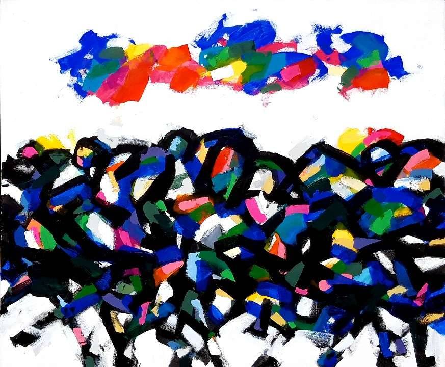 Ten obraz to prawdziwy kalejdoskop kolorów i emocji. Dominuje tu nieskrępowany chaos, pełen soczystych barw – czerwieni, niebieskości, zieleni i żółci – rozlewających się po płótnie niczym dziecięce splashy na placu zabaw. Kształty są nieregularne, dynamiczne, jakby nie mogły przestać tańczyć. Kompozycja daje poczucie ruchu, jakby figury chciały wydostać się poza ramy obrazu i eksplodować energią. Atmosfera dzieła jest pełna radości, ale i pewnej nostalgii. To jak patrzenie w kolorowy sen, który jednocześnie bawi i uspokaja. Styl artysty przypomina technikę impasto, z grubymi pociągnięciami pędzla, które nadają obrazowi trójwymiarowości i tekstury. Tu wszystko wygląda jak żywe dźwięki z jakiegoś magicznego festiwalu. Odbiorca może poczuć się jak wrzucony w wir barwnego tańca, pełen ekscytacji i radosnego chaosu. Obraz wciąga i nie pozwala odwrócić wzroku. Representation tego chaosu może interpretować jako expression wolności i spontaniczności. To coś, co mogłoby porwać nawet siedmiolatka. Sztuka ta jest jak piosenka, której słuchasz z zamkniętymi oczami, czując każdy dźwięk na skórze. Dreamlike, prawdziwie dreamlike. Spoglądając na to dzieło, czuję, jakbym przeniósł się do innego, kolorowego świata, w którym wszystko jest możliwe.
