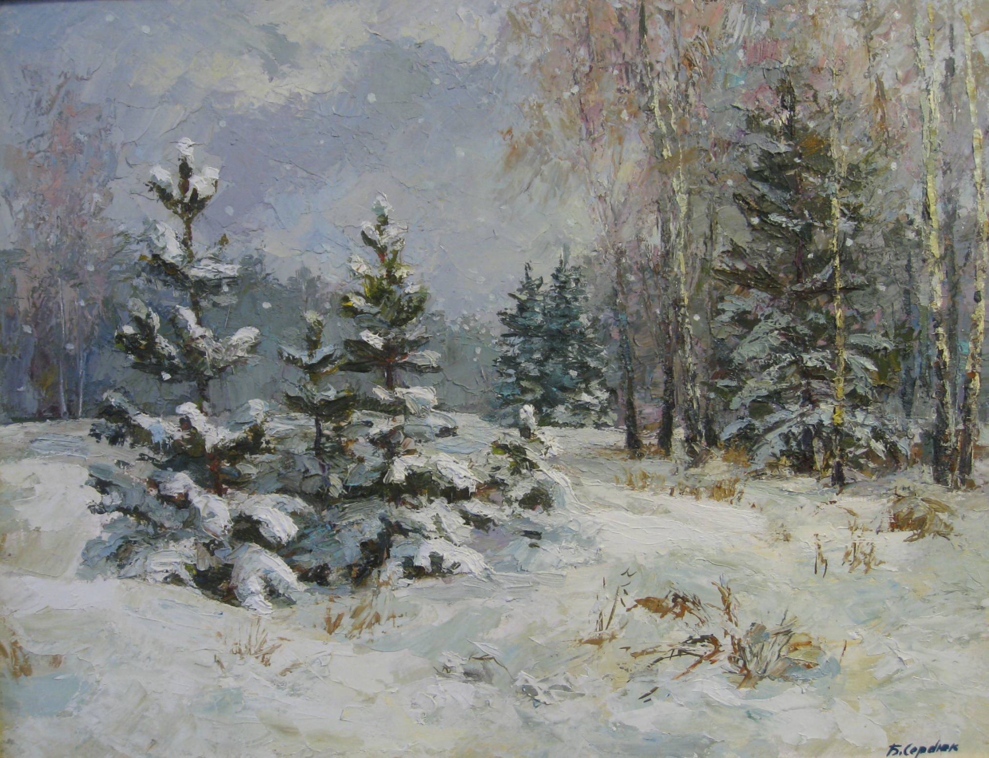Снег в лесу. Ели стоят в снегу, опустив свои снежные тяжелые лапы...