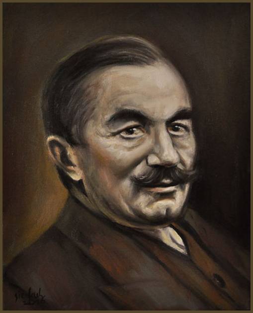 Ten obraz, pełen głębokich odcieni brązu, czerni i subtelnych beżów, przedstawia mężczyznę o wyrazistych rysach twarzy. Jego oczy, błyszczące i pełne tajemnicy, przyciągają wzrok niczym magnes. Kompozycja obrazu skupia się na portrecie, ze światłem padającym z lewej strony, co dodaje postaci trójwymiarowości. Atmosfera jest spokojna, lecz pełna niewypowiedzianej historii. Czy to bohater powieści? A może ktoś znany z historycznych annałów? Artysta użył klasycznych technik malarskich, być może olejnych, kreując miękkie przejścia między cieniami a światłem. Dzieło emanuje nostalgiczny nastrój, jakby wpływając na nasze własne wspomnienia. Kto wie, może to właśnie atmosfera "vintage", która tak bardzo przypomina czasy dawnych opowieści. Jest tu coś niezwykle personalnego, jakby artysta próbował przeniknąć do wnętrza duszy portretowanego. I ten wąs! Wygląda jak zakręcony jak wąż. Siedmiolatek powiedziałby pewnie: "On ma taki śmieszny wąsik, jak dziadek!". Obraz, mimo swej powagi, wprowadza też lekkość i swoisty humor. Myślę sobie, czy gdyby ożył, opowiedziałby mi jakąś ciekawą historię z lat swojej młodości? To dzieło jest jak "puzzle", które do końca nie ułożymy, ale zawsze sprawia frajdę. Czasami dobrze jest zostawić trochę wyobraźni, prawda?