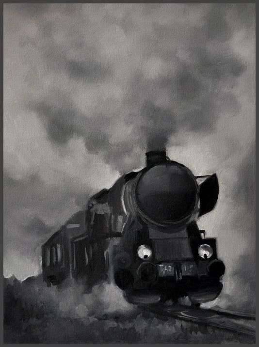 Damian Gierlach - Obraz olejny Parowóz 1945 Kolej 30x40 GIERLACH