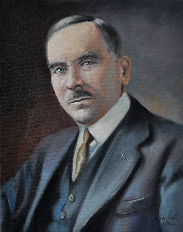 Na obrazie widzimy portret mężczyzny namalowany w klasycznym stylu. Dominują stonowane kolory, głównie odcienie szarości, brązu i niebieskiego. Twarz postaci jest wyrazista, z lekko nostalgicznym spojrzeniem, co nadaje całej kompozycji spokojną, a zarazem tajemniczą aurę. Tło jest rozmyte, co sprawia, że postać jest na pierwszym planie. Kształty są miękkie, a pociągnięcia pędzla delikatne, co nadaje obrazowi subtelność. Atmosfera emanuje spokojem i refleksją. Można odczuć pewną powagę i godność mężczyzny, co może budzić u odbiorcy poczucie respektu. Artysta zastosował technikę olejną, która dodaje dziełu głębi i intensywności kolorów. Jest w tym coś, co sprawia, że obraz wydaje się wręcz namacalny. Emocje płynące z obrazu mogą być różnorodne. Z jednej strony nostalgia i zaduma, z drugiej – zaciekawienie, kim jest ten człowiek i jaka jest jego historia. It's like stepping into a different time. Dla mnie to trochę jak podróż do przeszłości, kiedy wszystko wydawało się prostsze i pełne niewypowiedzianych historii. A ten pan ma głowę jak mój dziadek!. Obraz mówi więcej niż tysiąc słów, a ten portret to właśnie taka cicha opowieść.