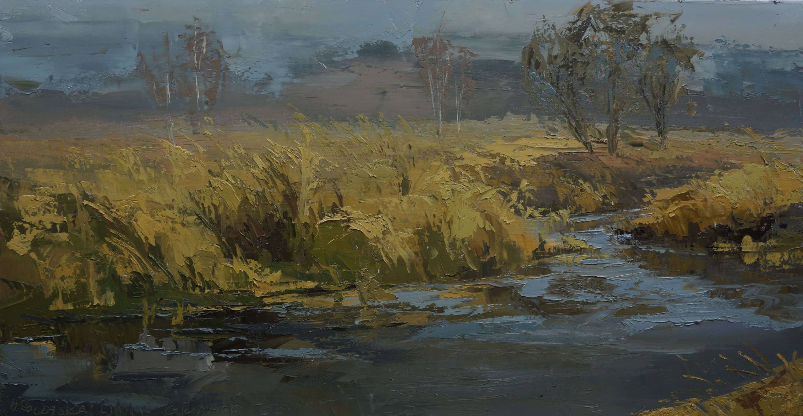 Obraz z cyklu przedstawiający rzeki Puszczy Białowieskiej. Malowany z natury.