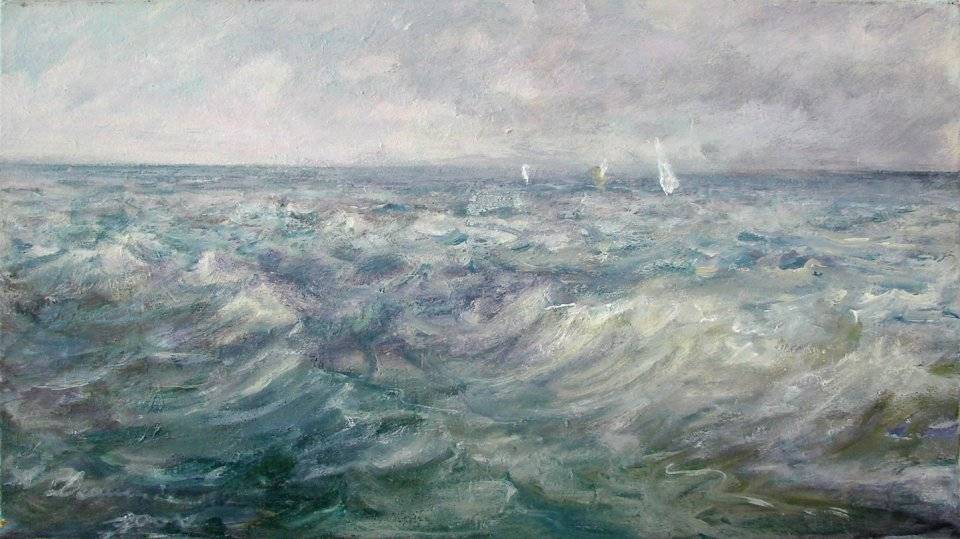Na obrazie widzimy spokojne, choć lekko wzburzone morze. Kolory są stonowane, dominują odcienie błękitu, zieleni i szarości. Horyzont łączy morze z niebem, które jest zasnute delikatnymi chmurami. Łódki wyglądają jak drobne plamki światła na tle fal, co dodaje całej kompozycji lekkości. Atmosfera emanuje spokojem i refleksją. Widz może niemal usłyszeć szum fal, poczuć morską bryzę na twarzy. Artysta zastosował impresjonistyczną technikę, z dynamicznymi pociągnięciami pędzla, które oddają ruch wody. Delikatne tonacje i gra światła podkreślają ulotność chwili. To, co wydaje się być prostym morzem, w rzeczywistości jest pełne emocji. ten obraz jest jak magiczny trick, który zmienia zmysły. Odbiorca może odczuć spokój i tęsknotę za przestrzenią. Mogę sobie wyobrazić, jak beztroski spacer brzegiem morza wprowadza w stan swoistego zamyślenia. Dziecko powiedziałoby: „O mama, patrz, łódki płyną jak zabawki!”. To bardzo osobiste doświadczenie, które wzbudza różnorodne refleksje. Ten painting przywodzi na myśl wolność i nieograniczoną przestrzeń. Kleinie, delikatne fale to symbol ruchu i ciągłości życia.
