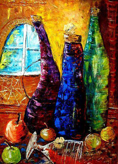 Obraz olejny,namalowany szpachlą na płótnie naciągniętym na sosnowe krosno.