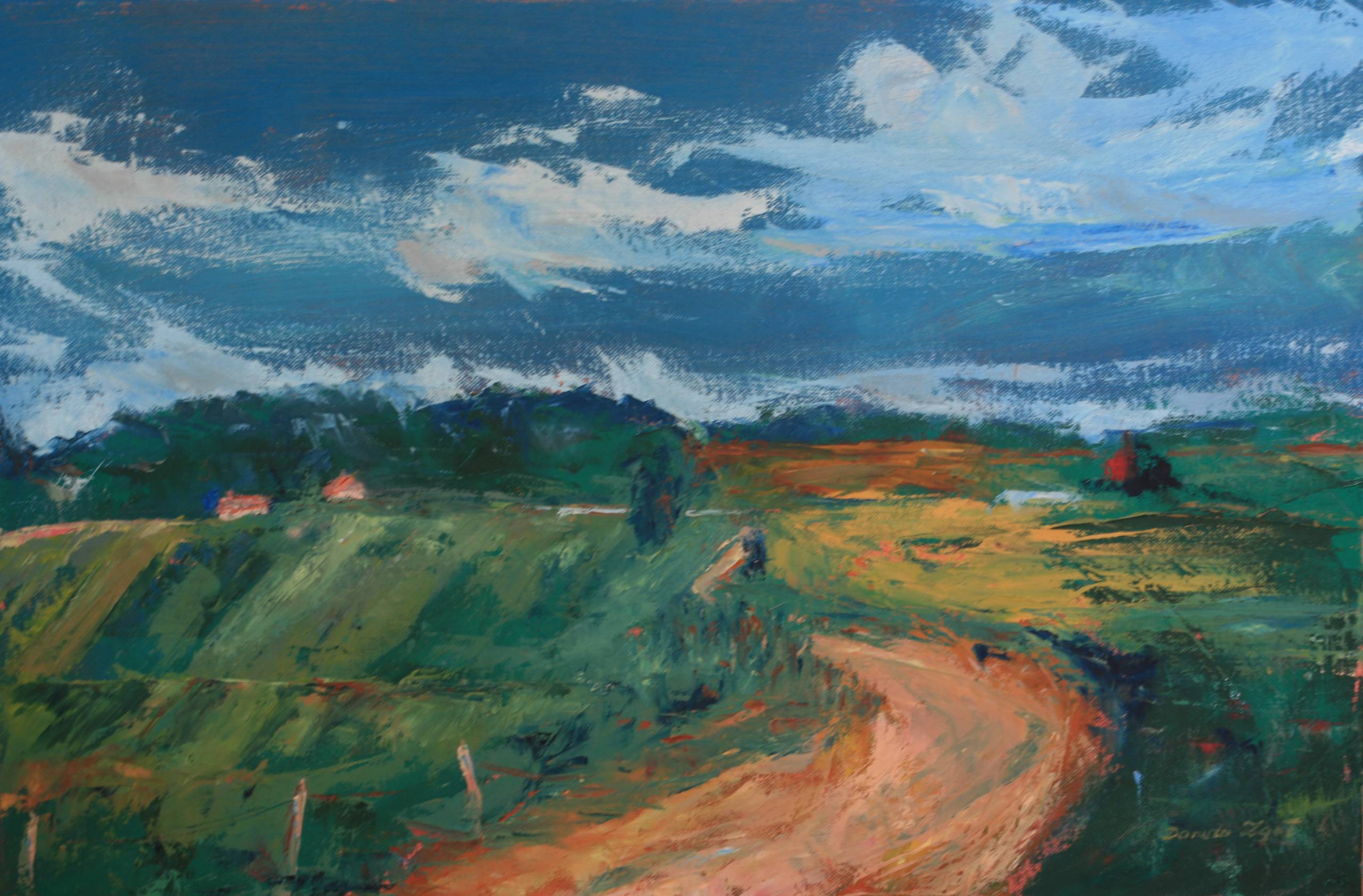 Na pierwszym planie obrazu wyłania się wijąca się droga, otulona zielonymi połaciami pól, które przechodzą w intensywne odcienie żółci. Artysta użył dynamicznych, nierównych pociągnięć pędzla, co nadaje krajobrazowi malowniczy, niemal dziki charakter. Niebo jest burzliwie błękitne, pełne kontrastujących ze sobą chmur, które tworzą wrażenie niepokoju. Mimo to, całość emanuje spokojem i harmonią wiejskiego pejzażu. Styl obrazu przywodzi na myśl impresjonizm, z odrobiną ekspresyjności. Czuć w nim lekkość i swobodę, co pozwala widzowi poczuć się jakby był częścią przedstawionego świata. "Wow, chcę tam pobawić się na tym polu!" może zawołać dziecko. Na pewno jest w nim coś 'magical', co przyciąga wzrok. Może to właśnie ta dzika natura, która budzi w człowieku tęsknotę za wolnością. W obrazie odnajduję kawałek siebie, to marzenie o prostocie i ucieczce od zgiełku codzienności.
