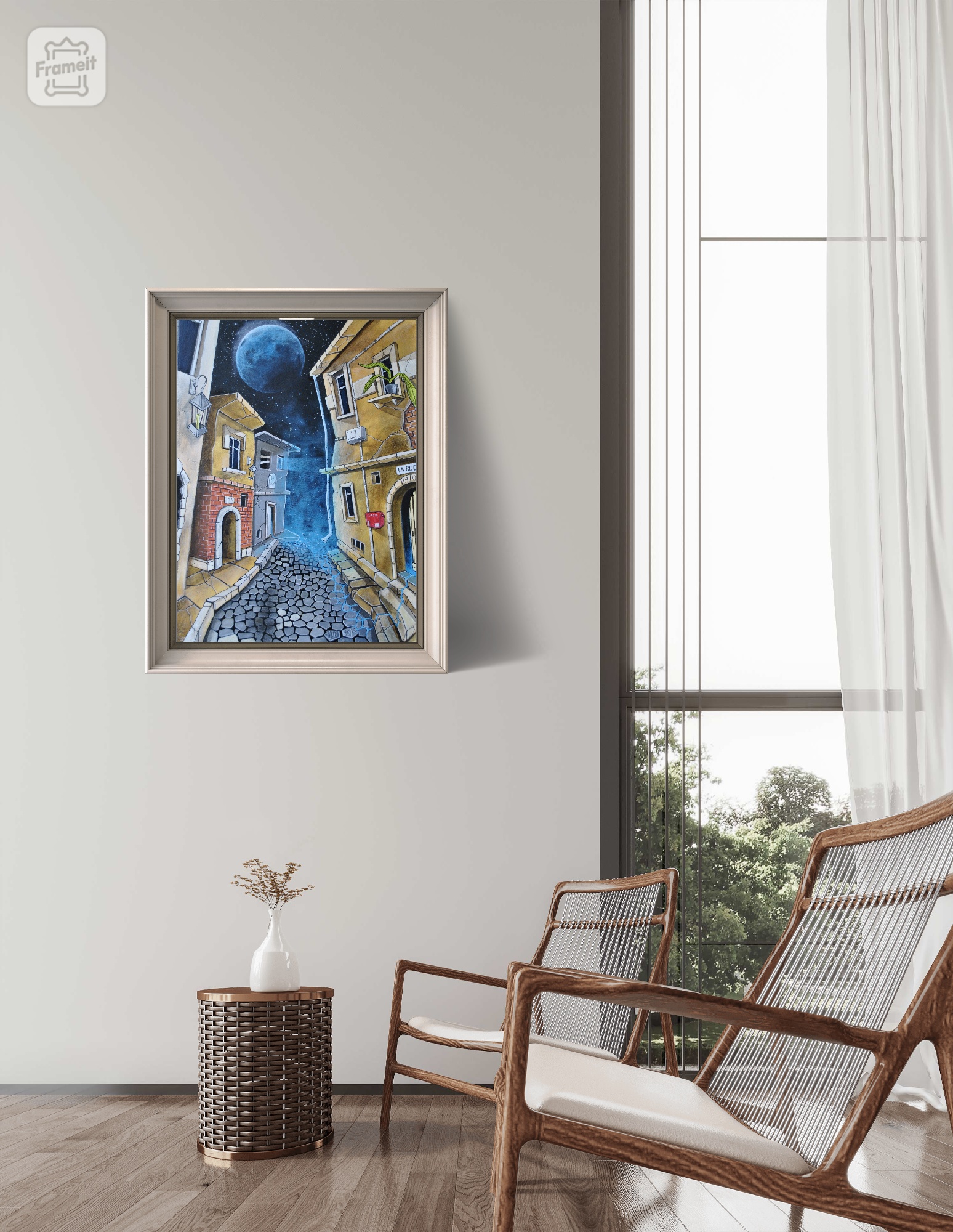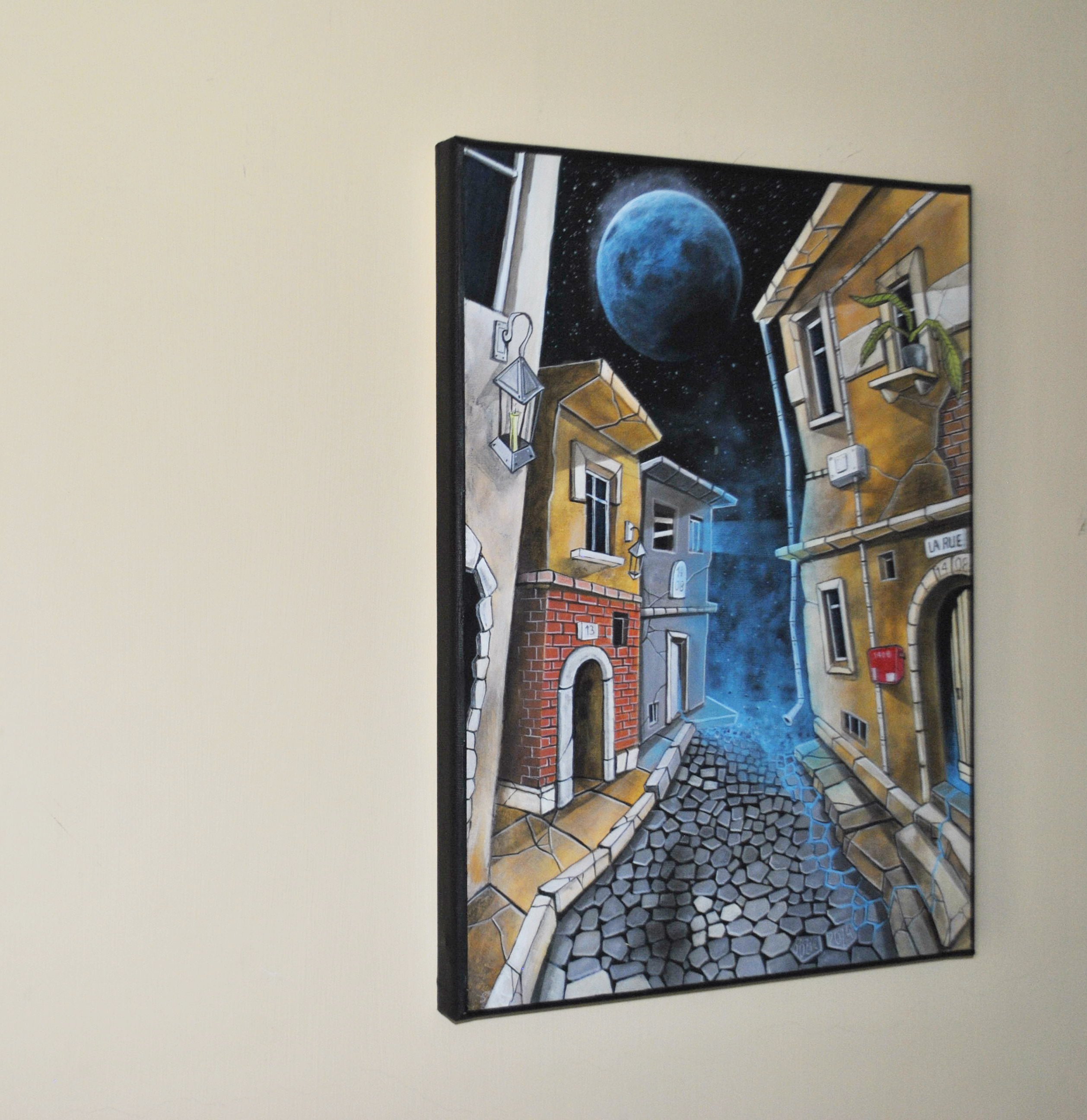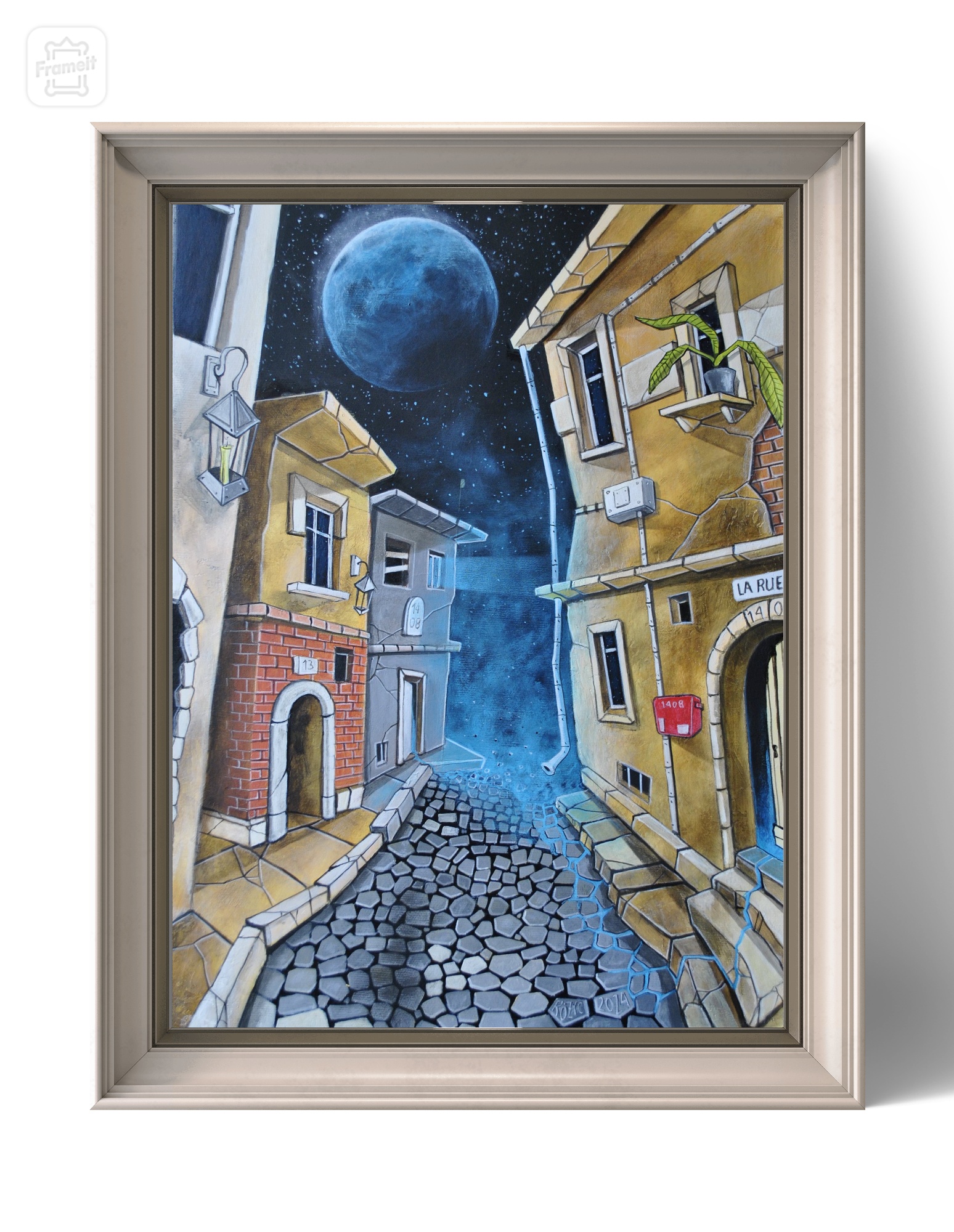 Obraz wykonany na podobraziu bawełnianym, specjalnie gruntowanym, namalowanym w technice akrylowej, zabezpieczony werniksem Winsor/Newton, ma zamalowane na czarno boki dlatego nie wymaga ramowania, posiada zawiesie model ''krokodylek'' więc można od razu zawiesić obraz na ścianie, sygnowany w prawym dolnym rogu, posiada opis na odwrocie. Obraz namalowany jest przeze mnie/Dariusz Franciszek Różyc.
