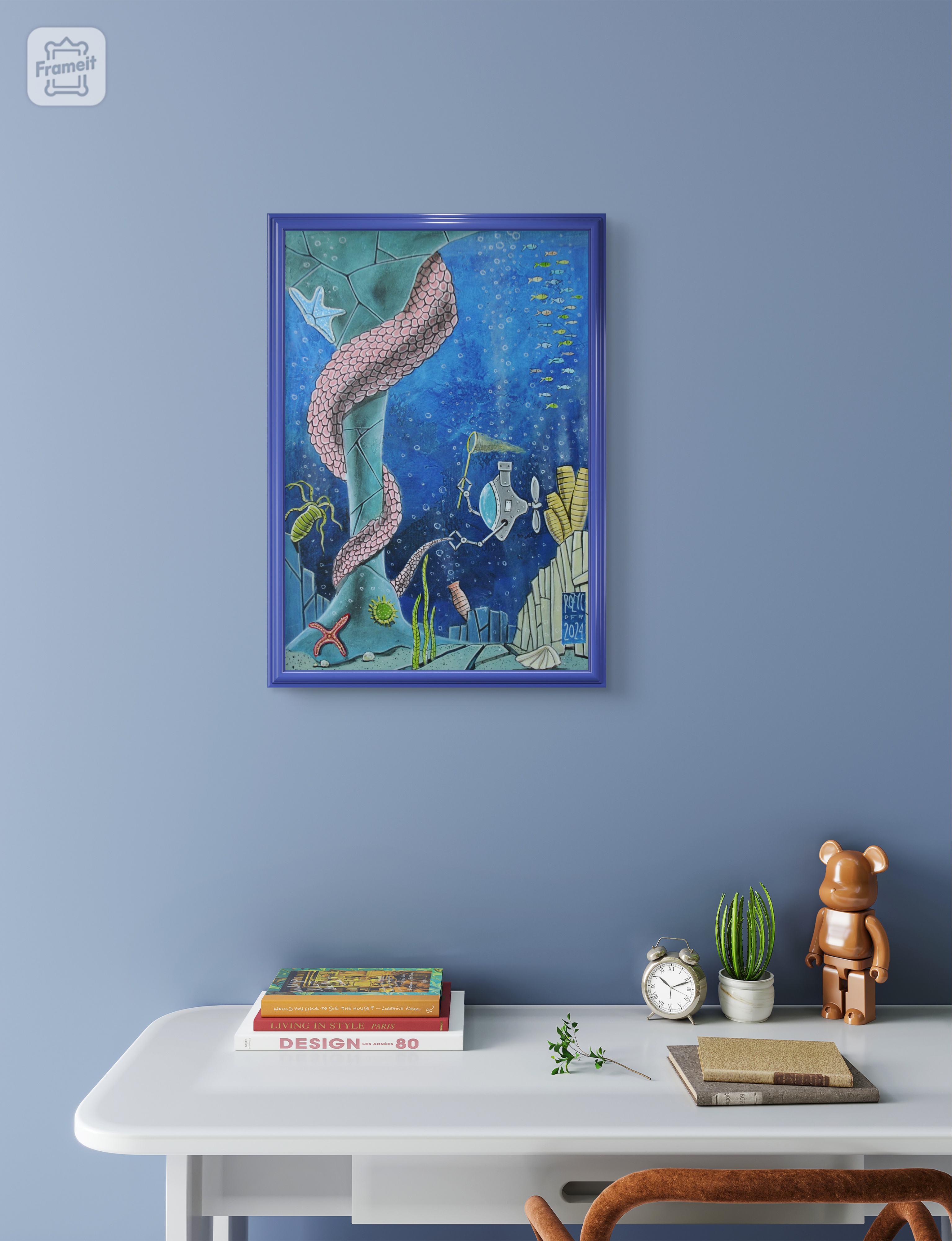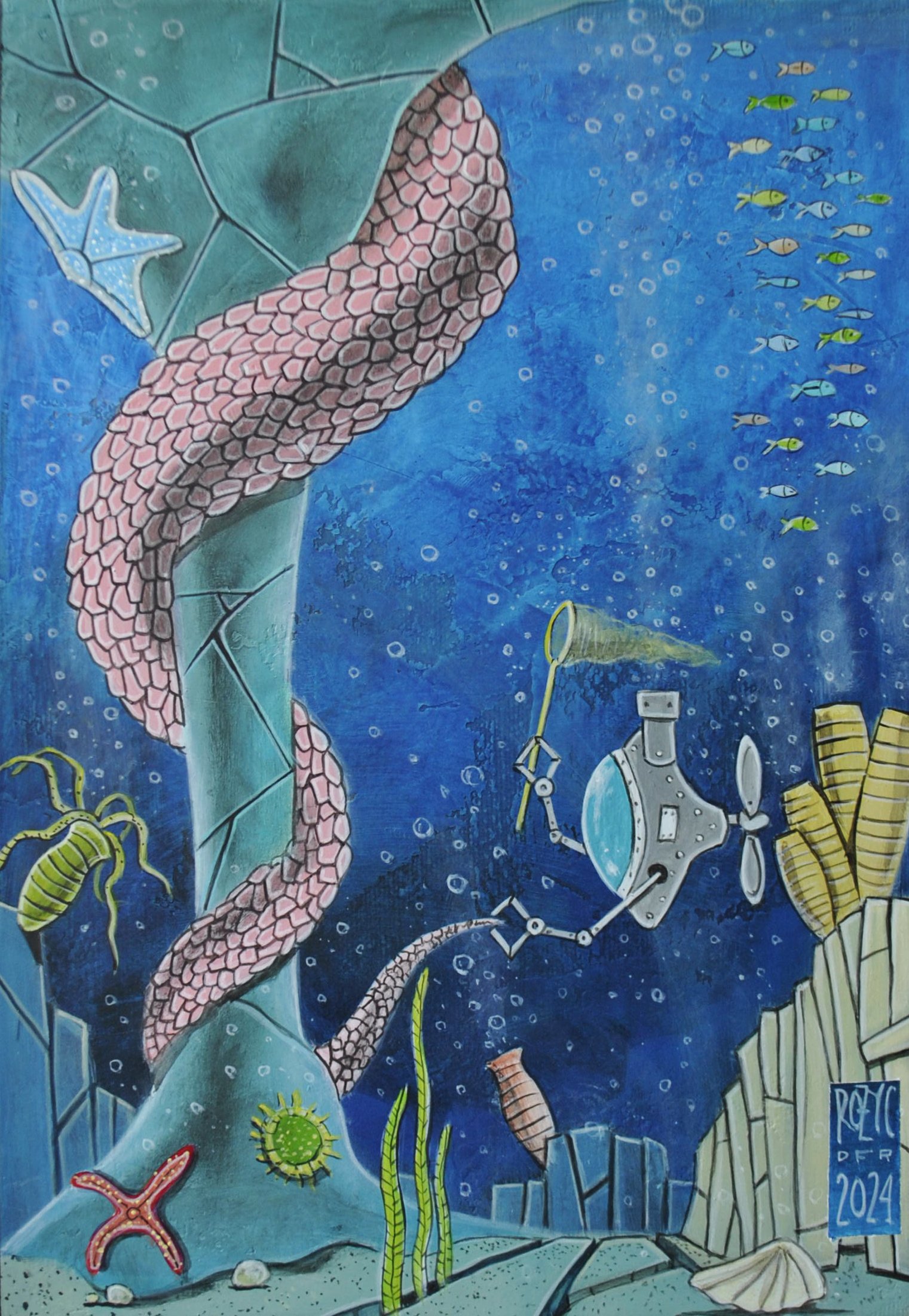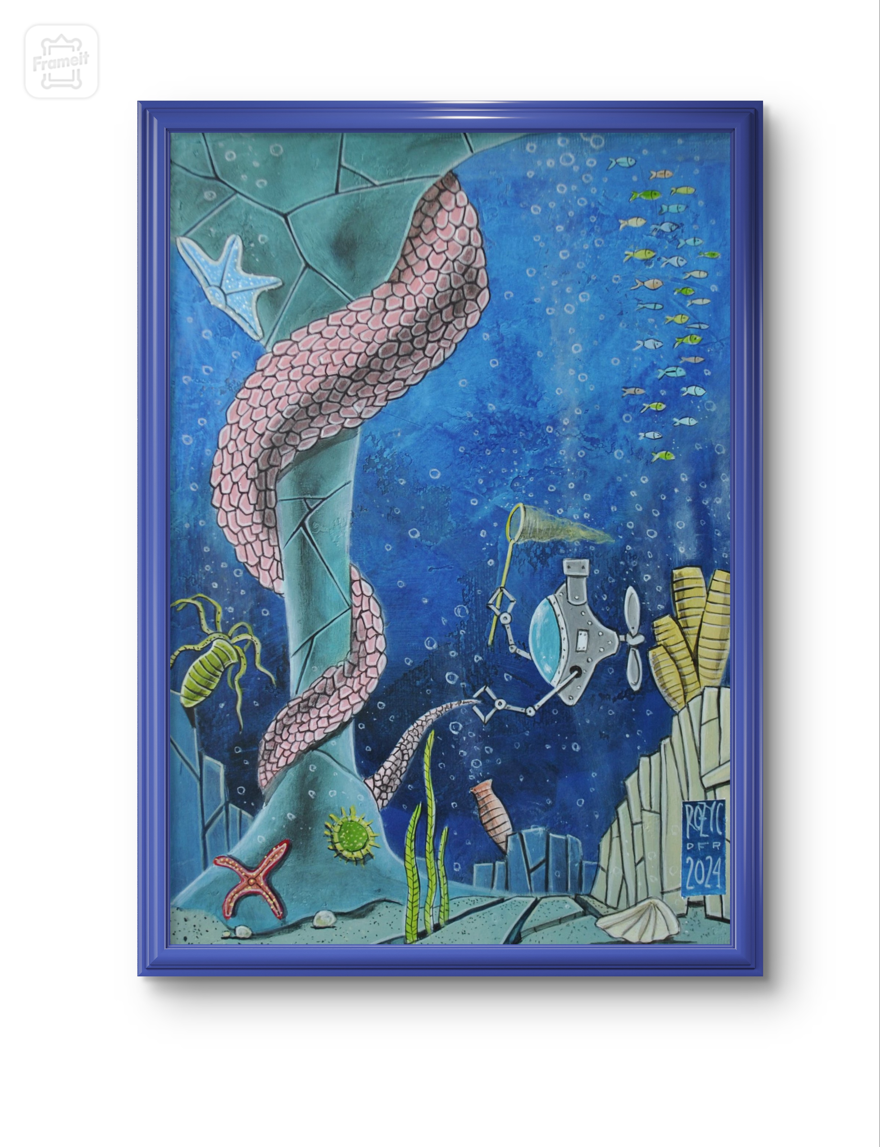 Obraz namalowany w technice akrylowej na płótnie bawełnianym, gruntowanym/wygładzonym, nieoprawiony, boki malowane na czarno, sygnowany/opis na odwrocie, zabezpieczony werniksem Winsor-Newton, posiada zawiesie. Należy do cyklu ''ŁAPACZE POTWORUFF''