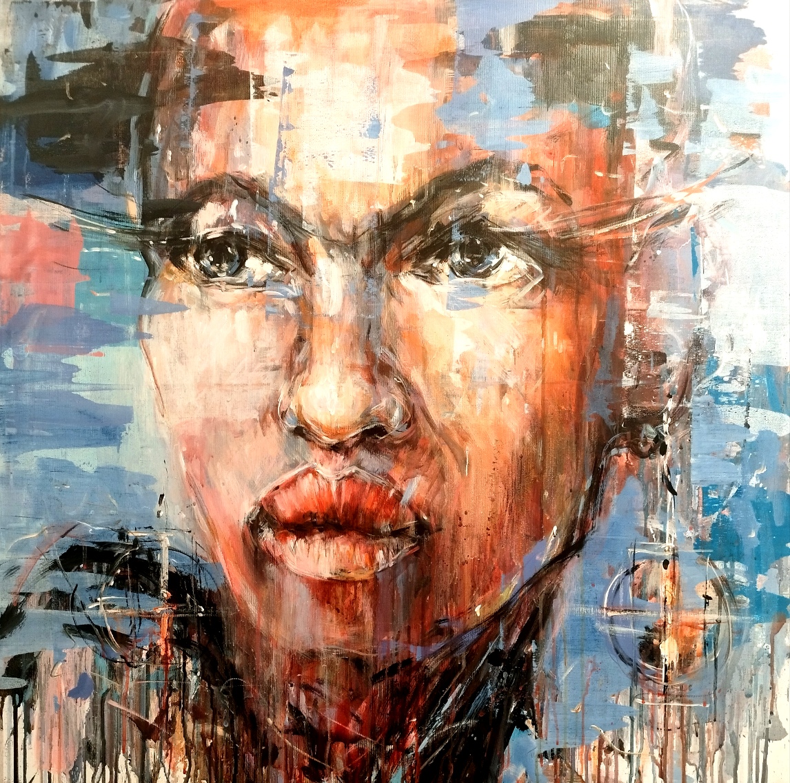 Portret na obrazie jest jak emocjonalny wir. Kolory mieszają się w dynamiczny sposób; ciepłe pomarańcze i chłodne błękity zderzają się, tworząc efektowny kontrast. Twarz wydaje się wychodzić z chaotycznego tła, łącząc w sobie burzę uczuć. Artysta operuje z rozmachem, stosując szybkie, pewne pociągnięcia pędzla, co dodaje dziełu energii. Technika na pierwszy rzut oka przypomina impresjonizm, jednak z elementem abstrakcji, który nadaje mu nowoczesny twist. Spoglądając na portret, można poczuć intensywność emocji w spojrzeniu postaci. Te oczy są jak okna do duszy, pełne tajemnic i głębokich przemyśleń. Zastanawiać się można, co kryje się za tym wzrokiem, jakie historie człowieka, jakie nieopowiedziane przeżycia. Dla mnie to jest fascynujące. Styl artyski jest unikalny - to mix subtelności z chaosem. Obraz emanueje pewnego rodzaju niepokojem, ale też intryguje. Dla mnie to jest, jakby ktoś poczęstował mnie ciastkiem pełnym emocji, a potem powiedział: enjoy. Czasem wydaje mi się, że ten portret mógłby opowiedzieć całą książkę, gdybym tylko potrafił go lepiej zrozumieć. Właściwie... to jest to, co sztuka robi najlepiej - zmusza do myślenia, do snucia domysłów. Ciekawe, co by o nim powiedziało dziecko – może że ten pan na obrazie trochę się złości? Albo, że ma fajne kolory jak w bajce.