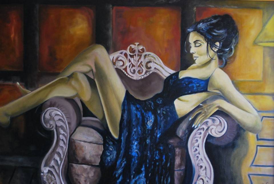 Obraz namalowany w 2011 roku, styczeń-marzec. W pierwszej wersji osoba przedstawiona na obrazie patrzyła prosto na widza, w ostatecznej przedstawia kobietę w chwilowym zamyśleniu, a może krótkim śnie.