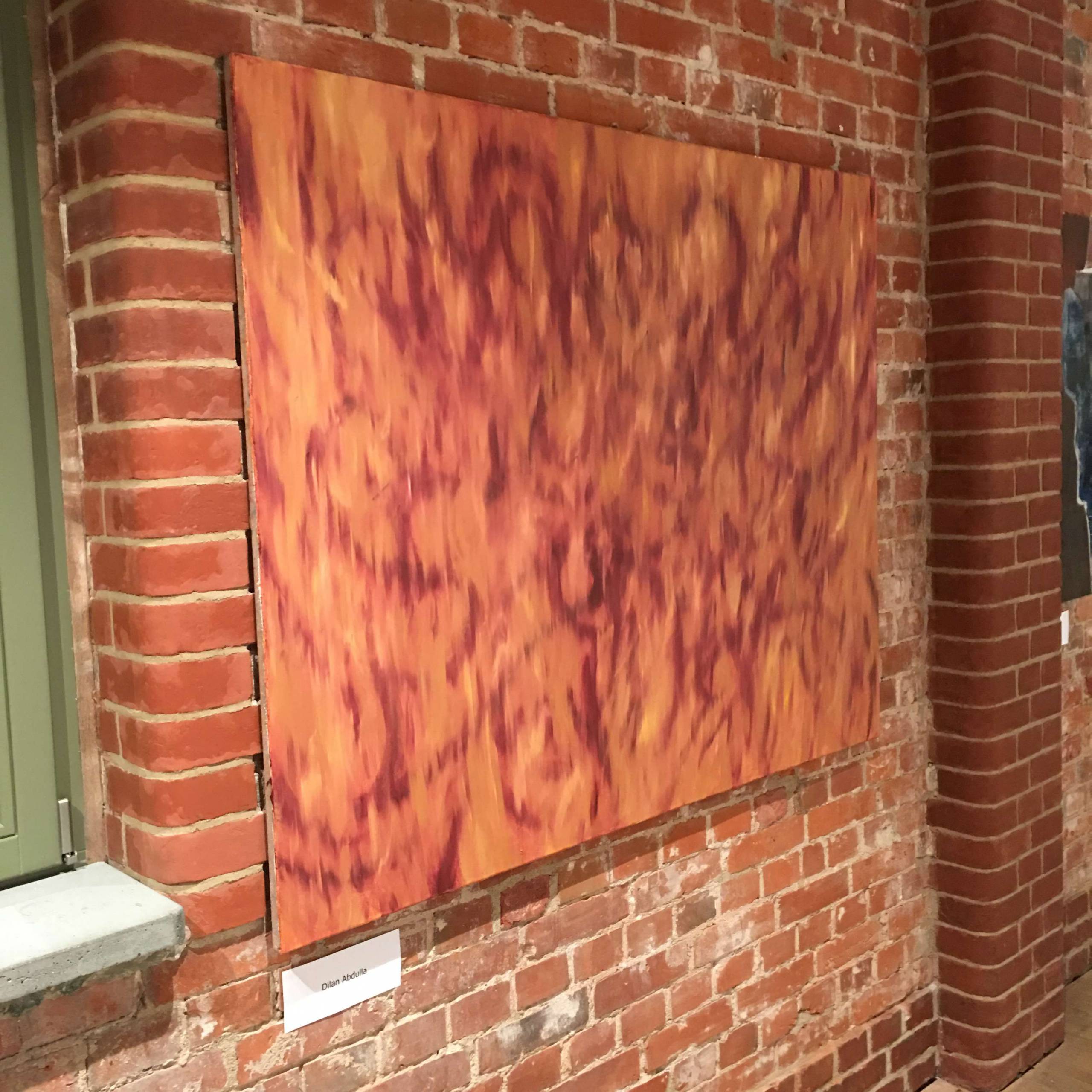 Na obrazie dominują ciepłe odcienie pomarańczu i czerwieni, które splatają się w falujące wzory, tworząc dynamiczną i żywą kompozycję. Te barwy przywołują na myśl jesienne liście wirujące na wietrze lub ogniste płomienie tańczące w kominku. Patrząc na ten obraz, czuję jakbym wszedł do innego świata, w którym czas płynie wolniej. Artysta zastosował technikę szybkich pociągnięć pędzla, nadając dziełu rytmiczny i nieco chaotyczny charakter, co sprawia, że całość jest pełna energii i ruchu. Można powiedzieć, że obraz ma w sobie coś z abstrakcyjnego tańca, gdzie każdy kolor i kształt odgrywa swoją rolę w tej kolorowej symfonii. Moje serce bije szybciej na widok tej ekscytującej gry świateł i cieni. Wygląda jak dżungle w słońcu, powiedziałby mały chłopiec. To dzieło pobudza wyobraźnię i skłania do refleksji nad ulotnością chwili. To prawdziwy kalejdoskop emocji. Obraz jest, jednym słowem, mesmerizing.
