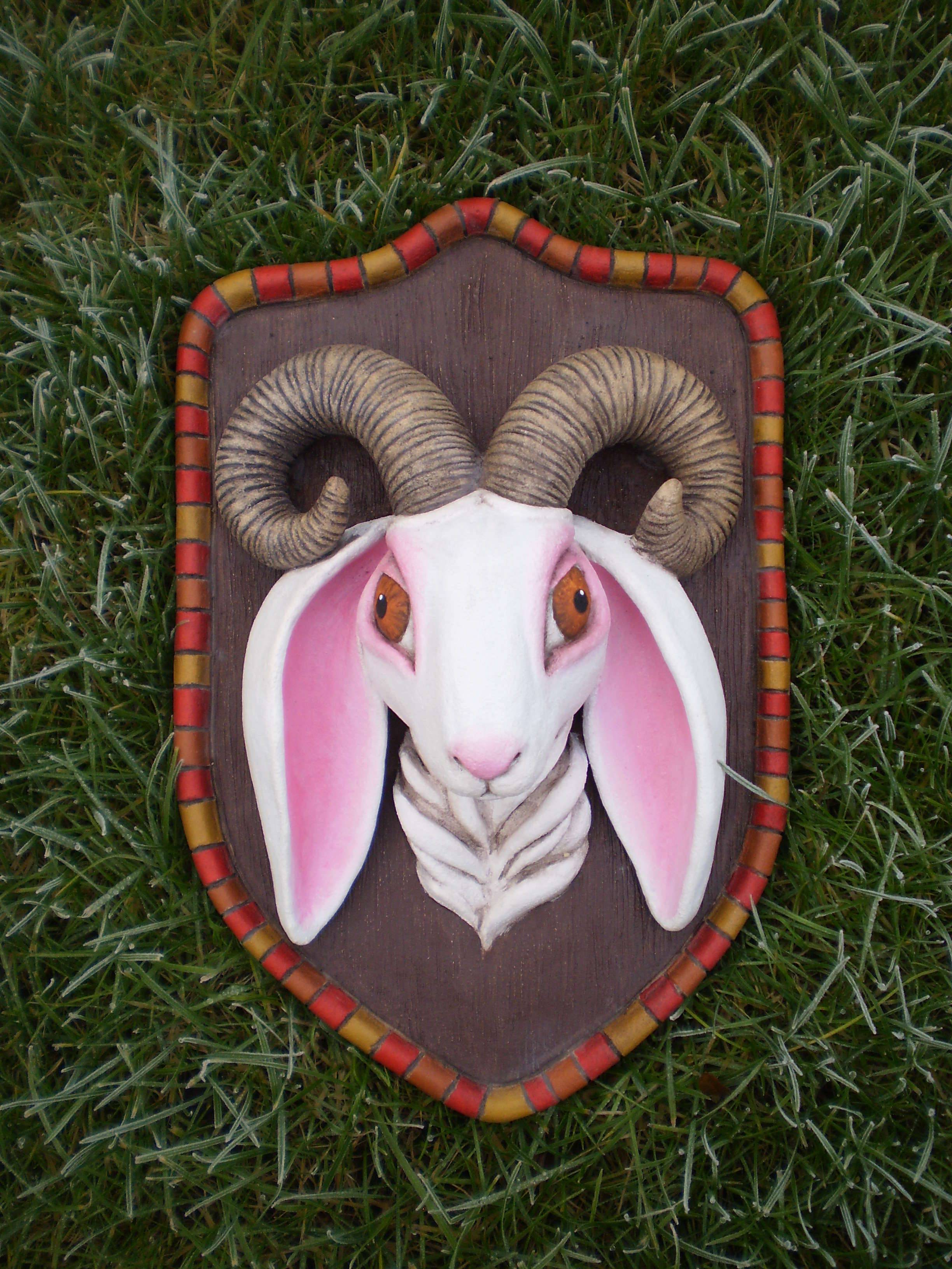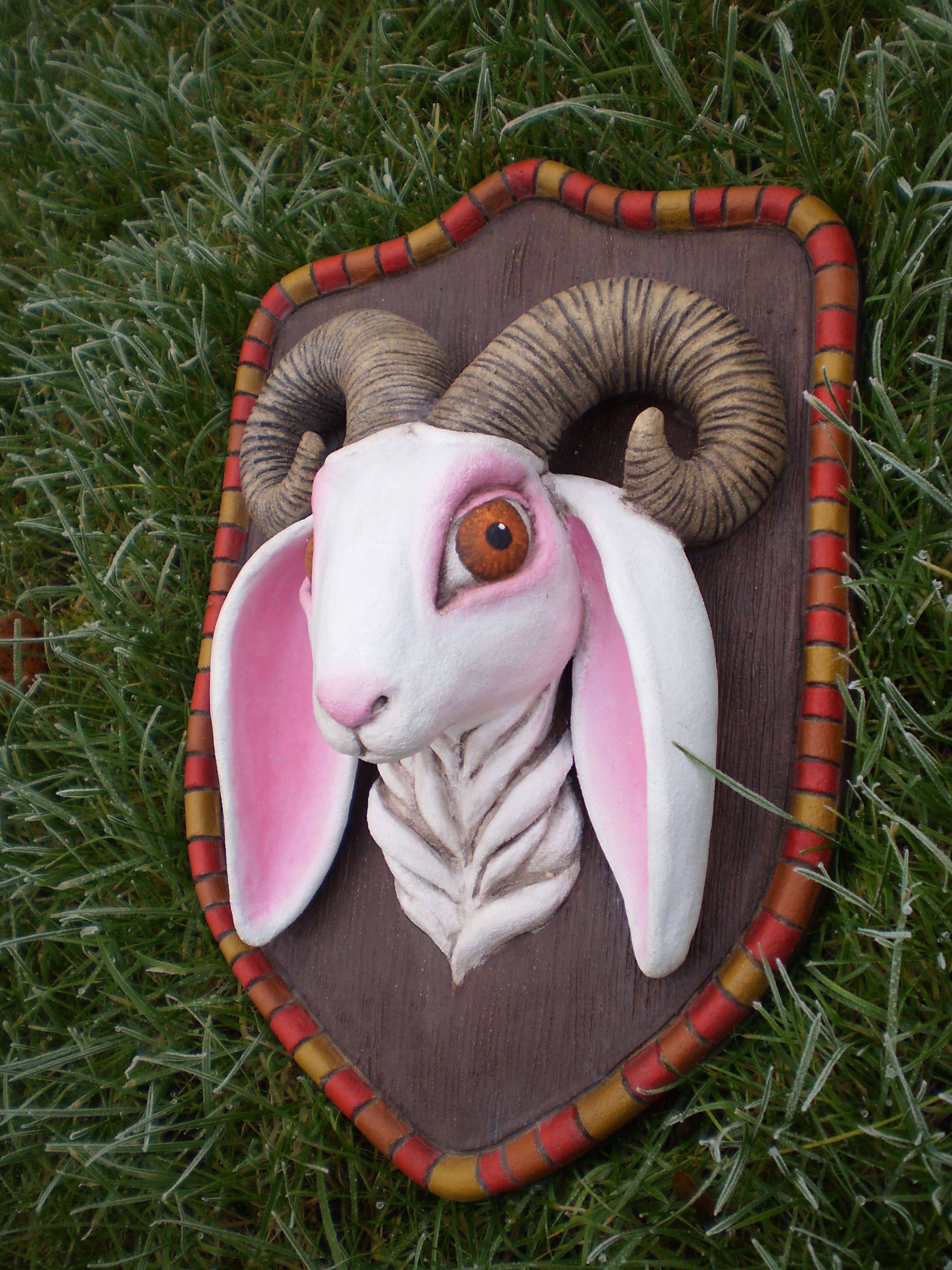 Płaskorzeźba z gliny szamotowej, do zawieszenia, malowana farbami akrylowymi .
