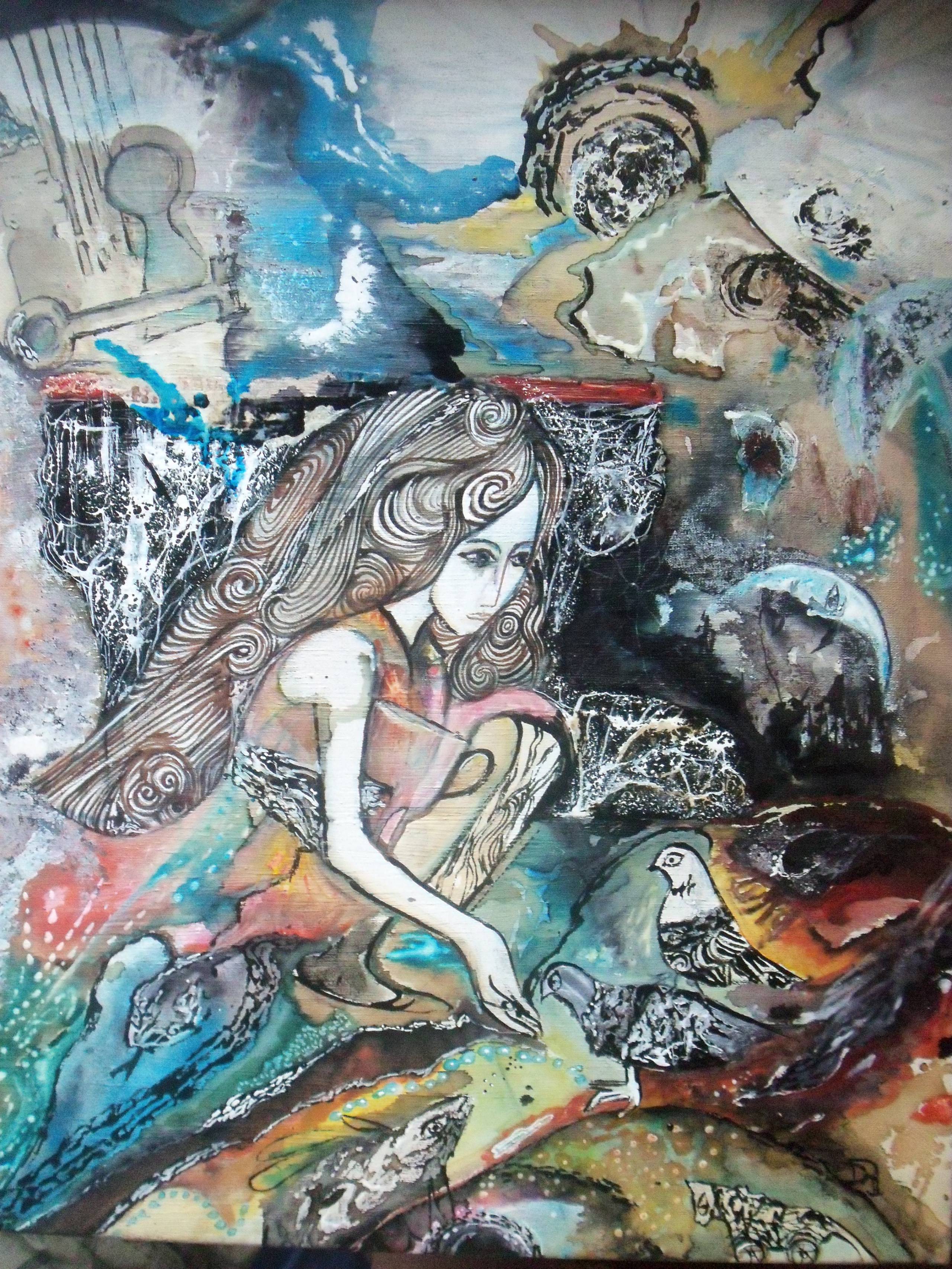 własne techniki mieszane.farby olejne,wodne,akrylowe i tusze