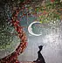 Obraz porywa swoją magiczną atmosferą nocy, gdzie ciemna sylwetka kota siedzącego pod krzywoliniowym drzewem wciąga wzrok. Barwy rozmywają się, układając w mozaikę zieleni z czerwienią, tworząc tło dla księżyca w kształcie rogala. Całość emanuje spokojem i tajemniczością, jakby dawało poczucie bycia w oddalonym, baśniowym "world". Techniką przypomina impresjonizm, gdzie każdy pociągnięcie pędzla składa się na obrazy w naszej wyobraźni. Kot patrzy w górę, co buduje napięcie i rodzi pytanie: o czym myśli? Mały ja by powiedział, że kot szuka przyjaciela w gwiazdach! Odbiorca doświadcza uczucia zadumy i harmonii. Kolory są ciepłe, tło szeleści jak liście w wietrze. Czujesz, jakby obraz zapraszał cię do swojego magicznego zakątka pod drzewem. Czas płynie inaczej, zatrzymuje się na chwilę, łapiąc emocje niczym senna mgła. To jak podróż, którą pragniesz odbyć w spokojny wieczór, snując refleksje o nieprzemijającej tajemnicy natury i jej związkach z nocą i snem.